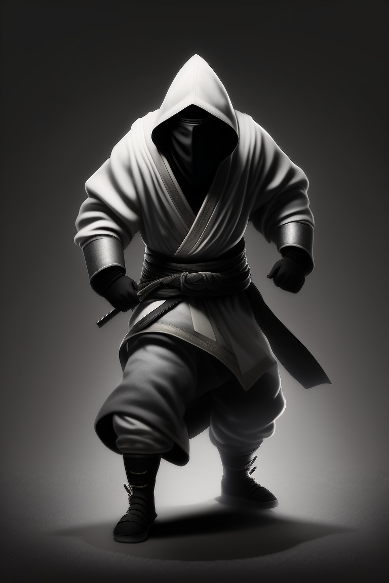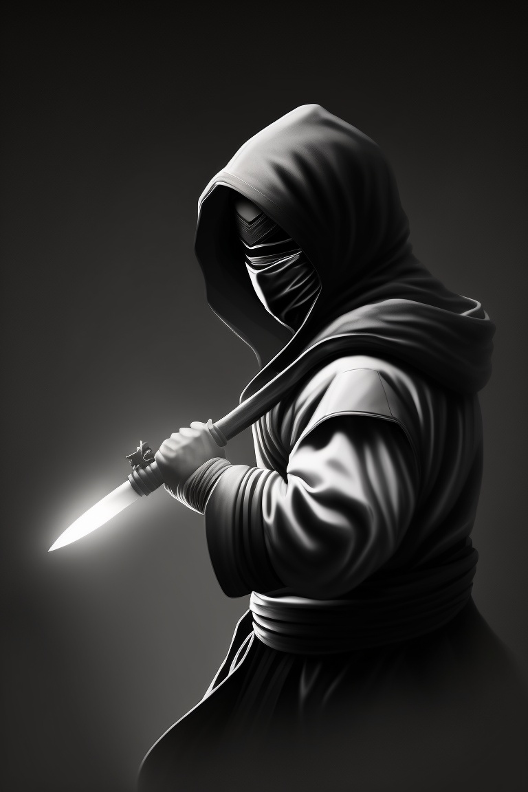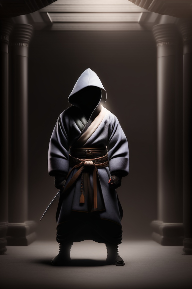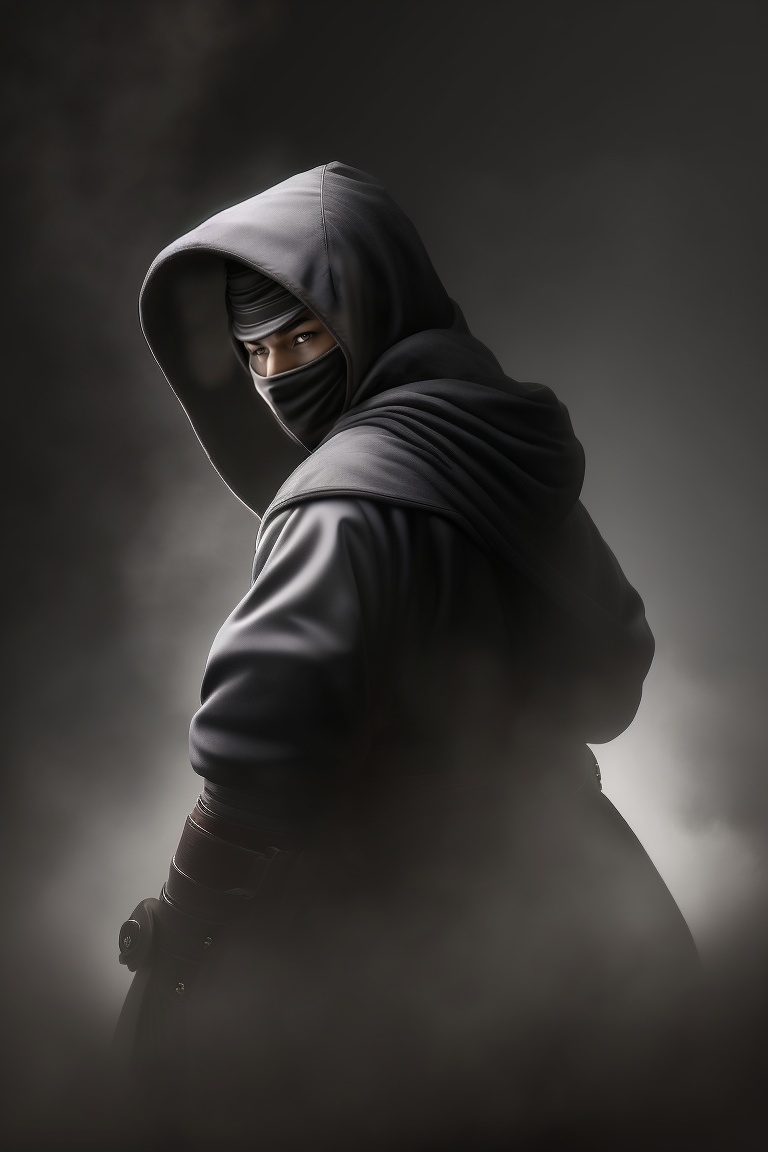 Realistic ninja in fighting stance hiding in shadows