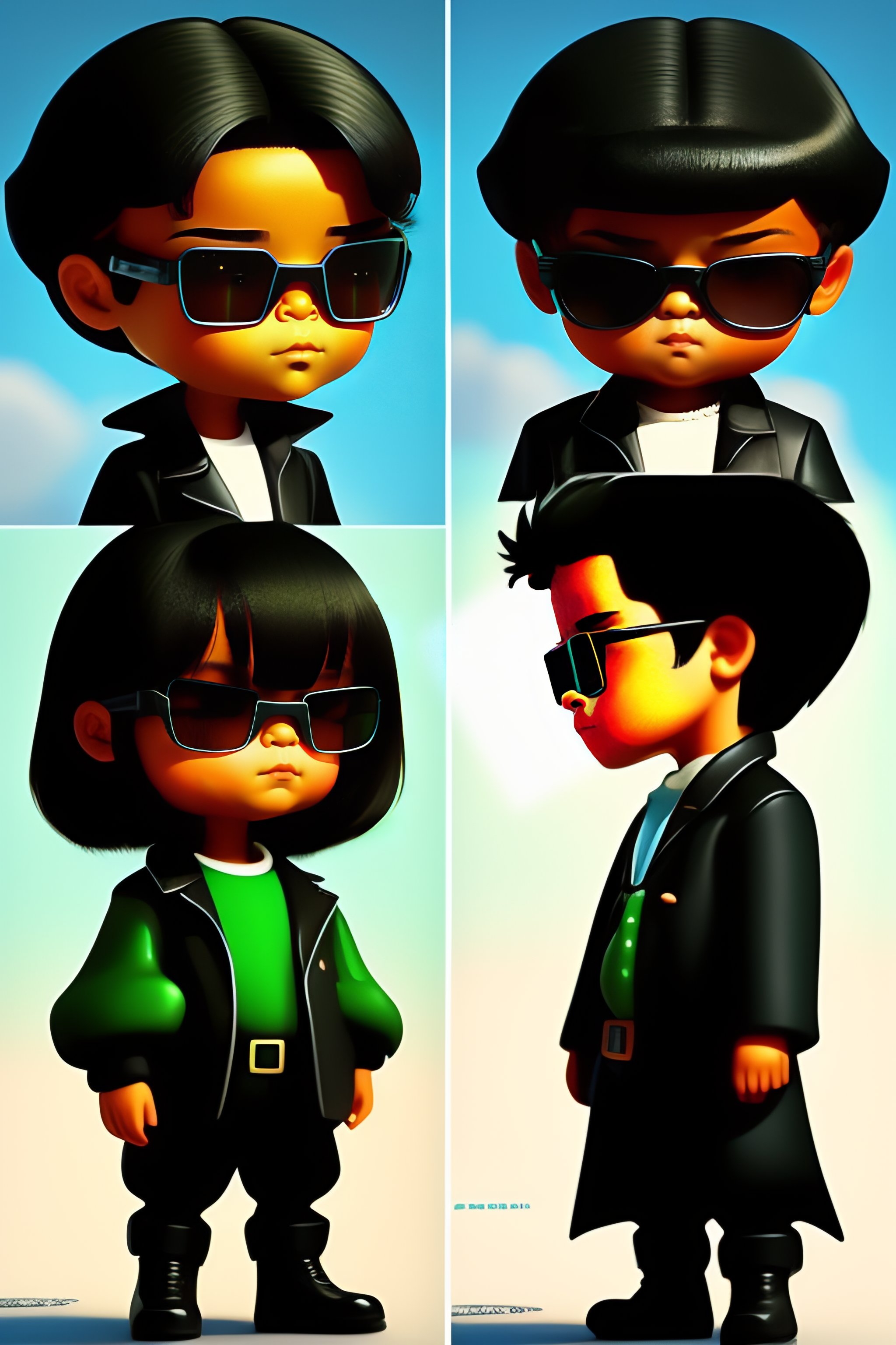Children's cartoonish version of neo in the matrix