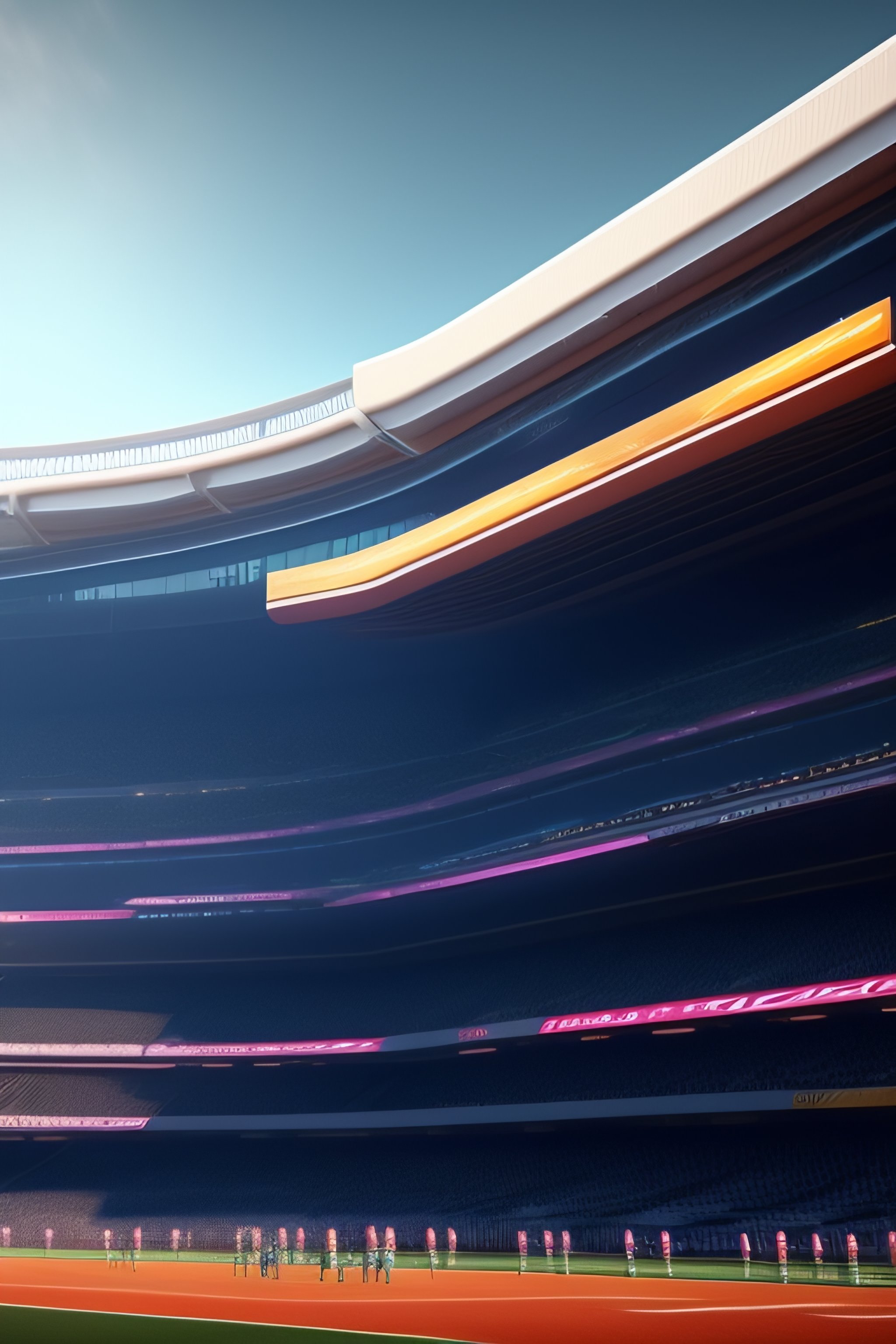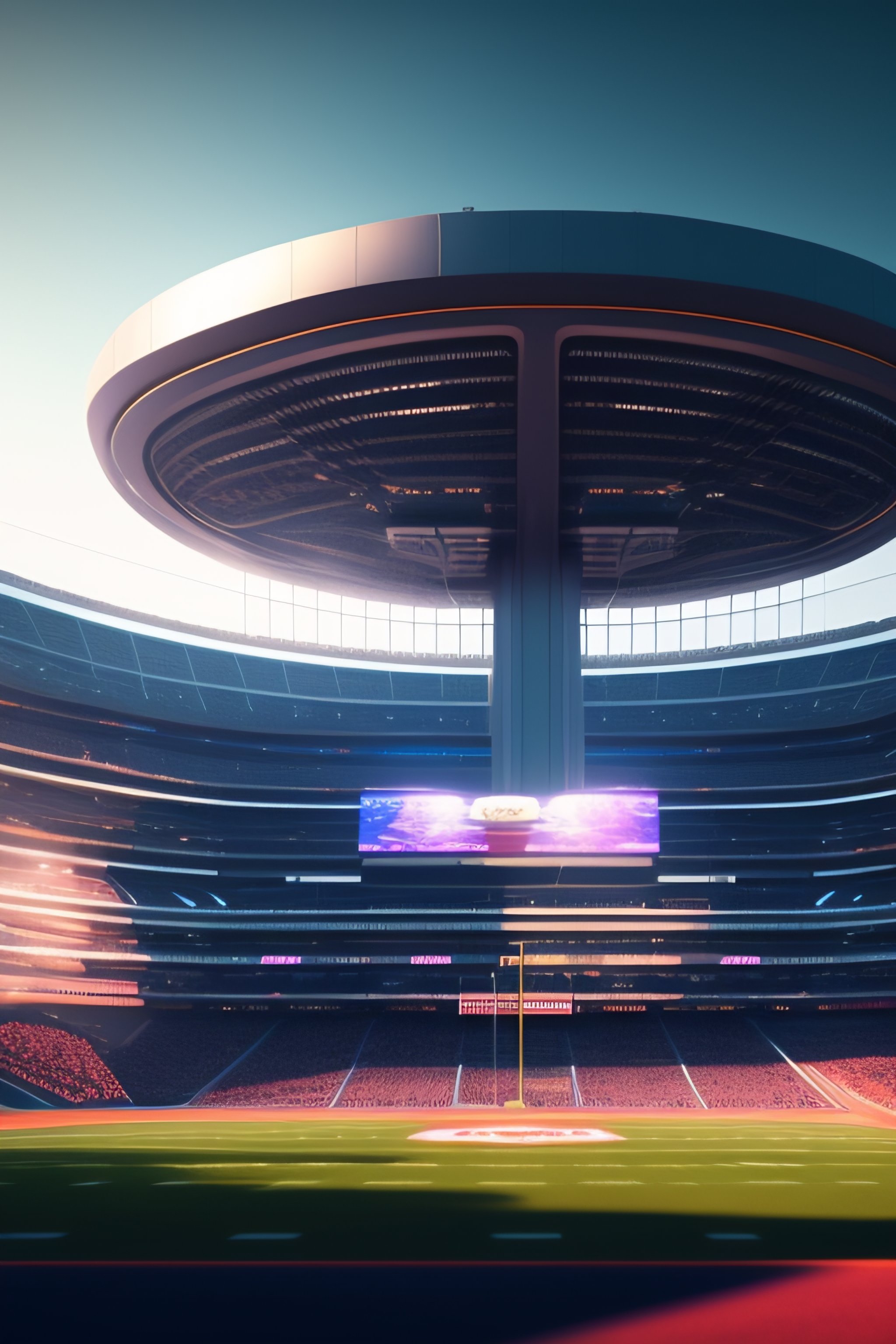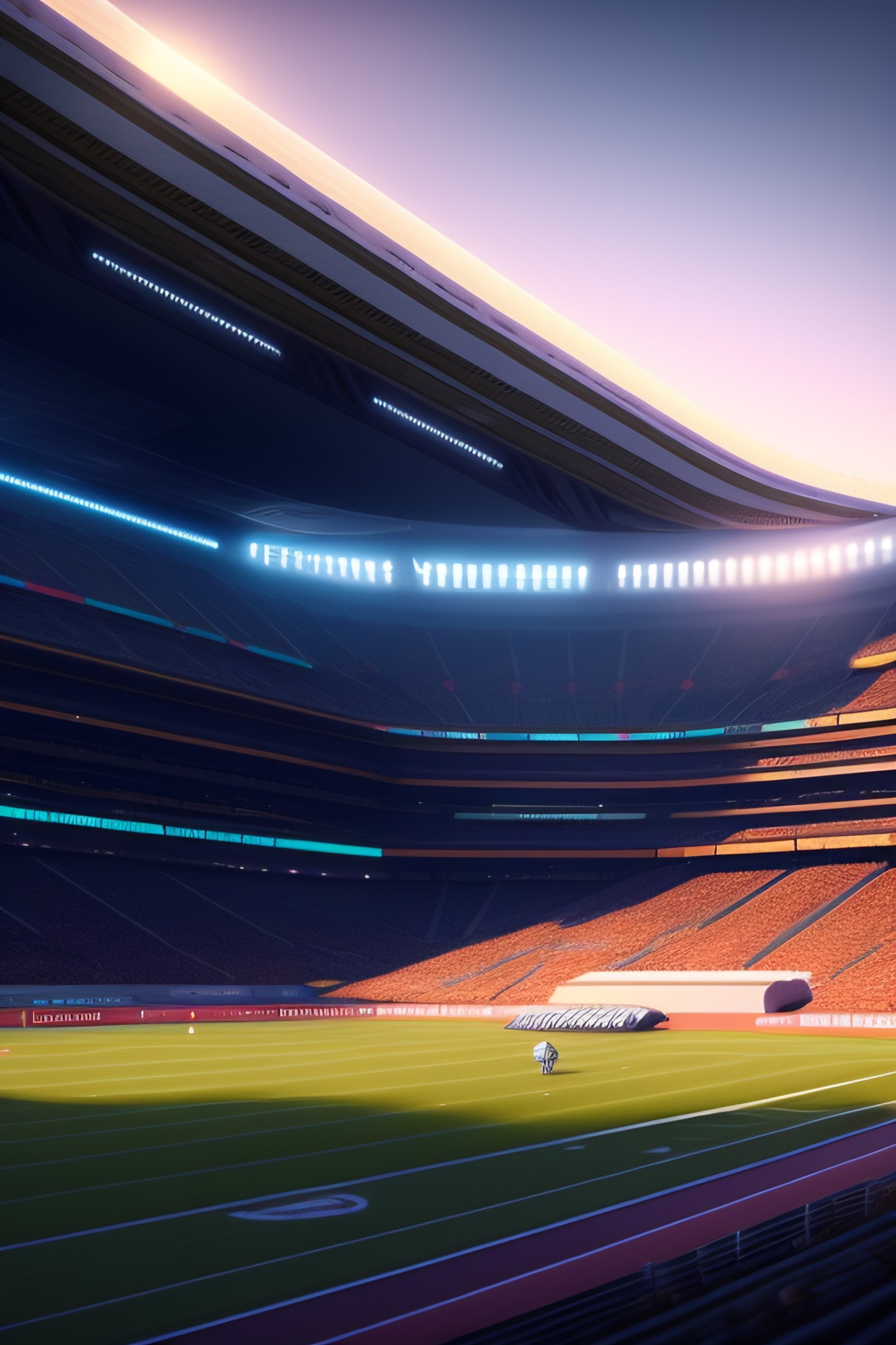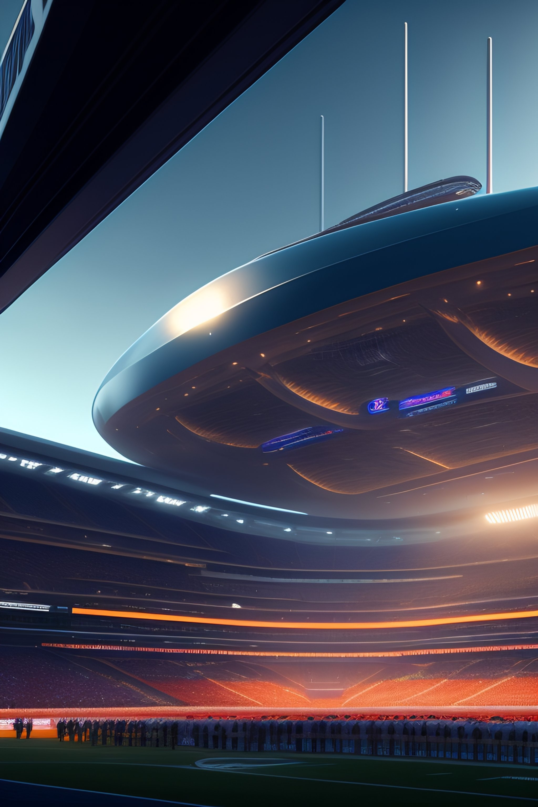 A futuristic stadium with a giant artstation mecha, the stadium has a full crowd, unreal engine, hyper realism, realistic shading, cinematic composition, realistic render, octane render, wide shot