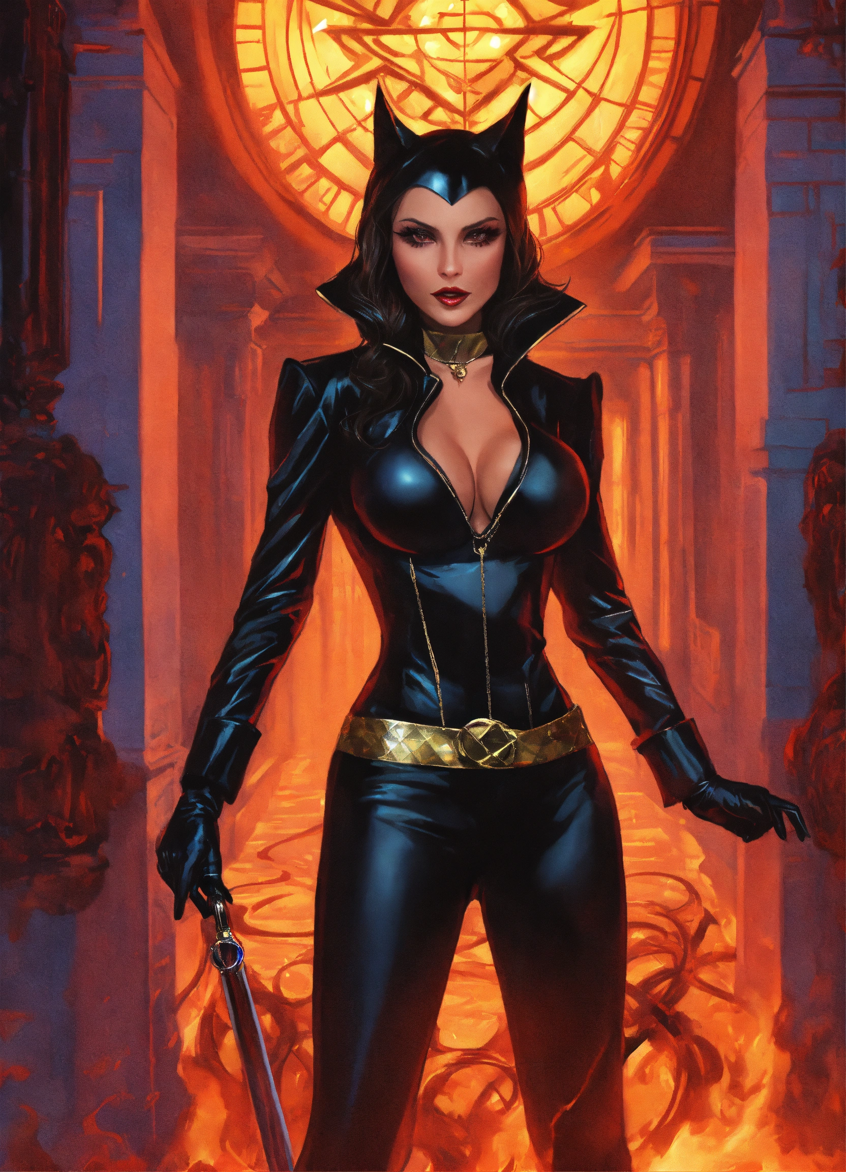 "catwoman" beautiful extremely breathtaking hypnotic evil, "potent genius intellect" dominating woman, wearing holographic "white cotton arm warmers with occult black magic leather" and entrancing high heeled boots, evil diabolical satanic demonic occult powerful wicked witch corporate hypnotherapist casting a powerful hypnotizing spell with her doom gaze endora medusa witch eyes, working in the corporate office, becoming mindless with her powerful mind numbing words and pendant, you feel her power she exerts on your thoughts and mind, the most powerful person in the corporate office, all obey her deeply hypnotizing suggestions helpless under her extremely powerful spell, corporate office takeover is inevitable if looking into her mind controlling eyes and full shimmering lips, she swings her hypnotic pendant & flashes her rings as you fall deeply under her diabolically evil "dana perino" mind control spell so easily, most powerful office witch in existence