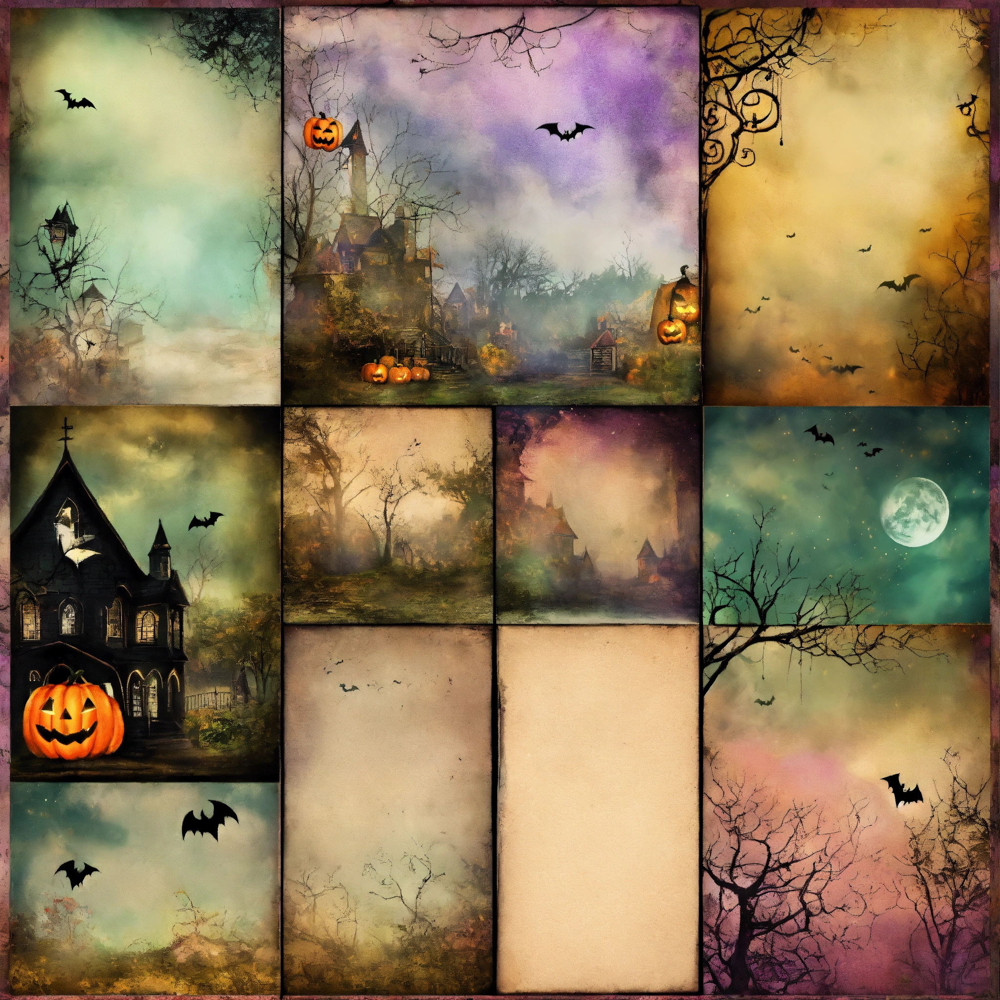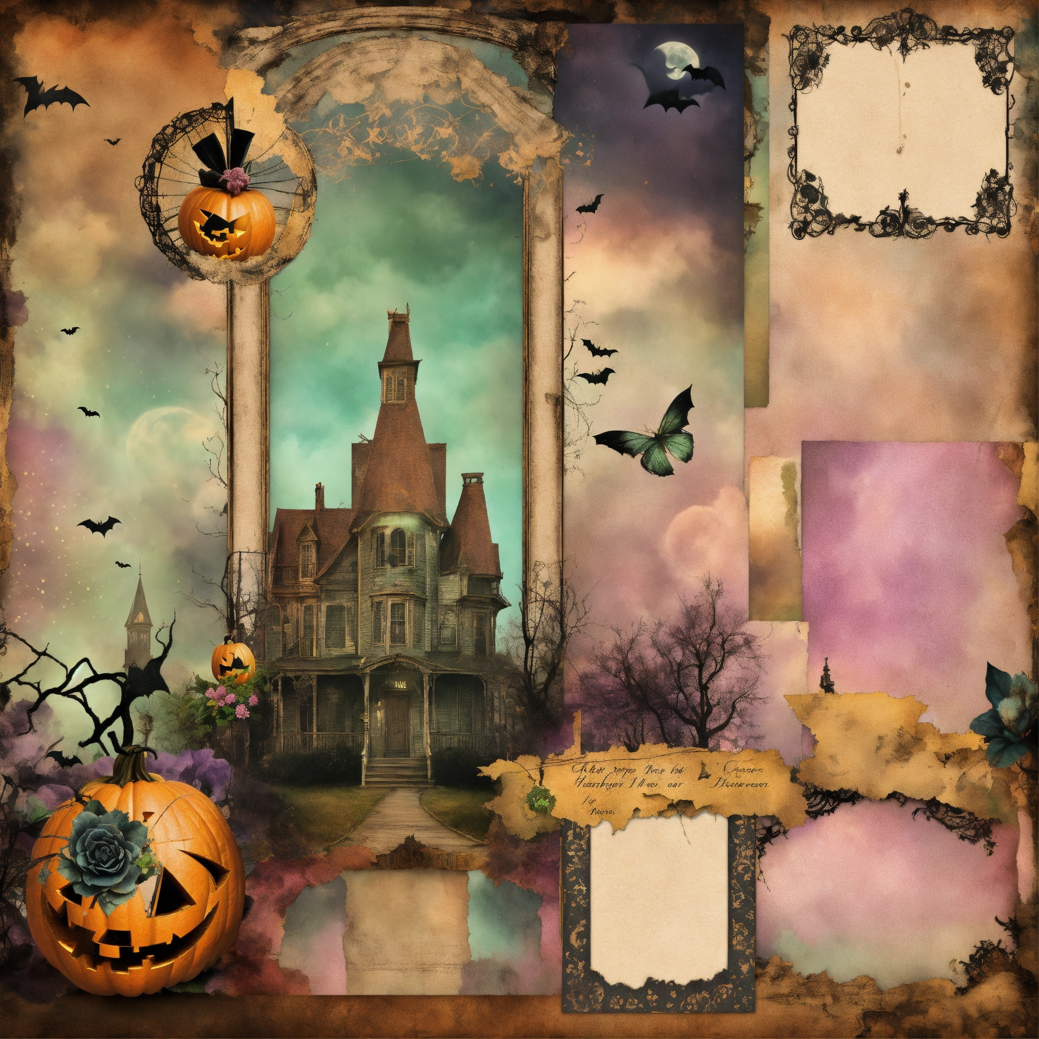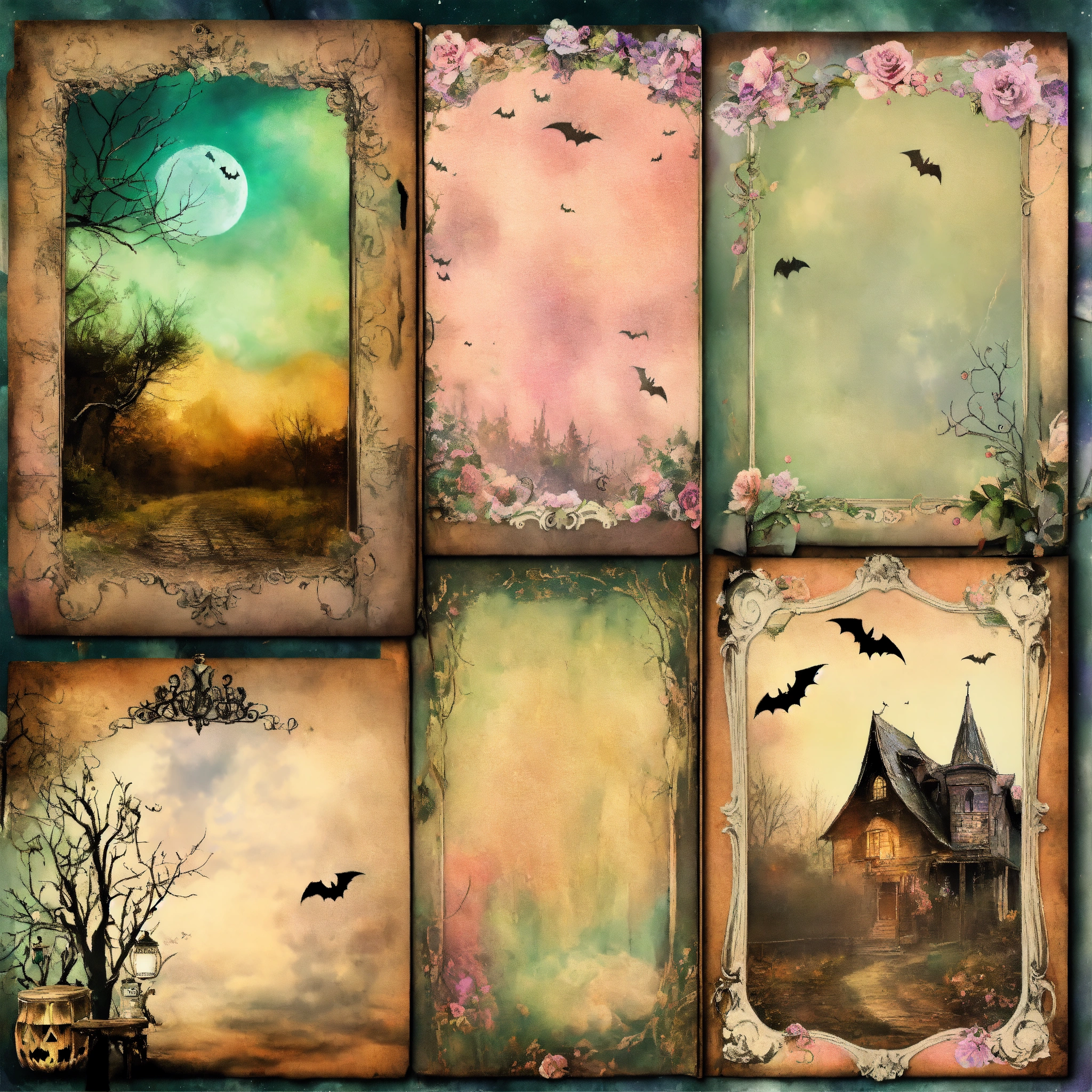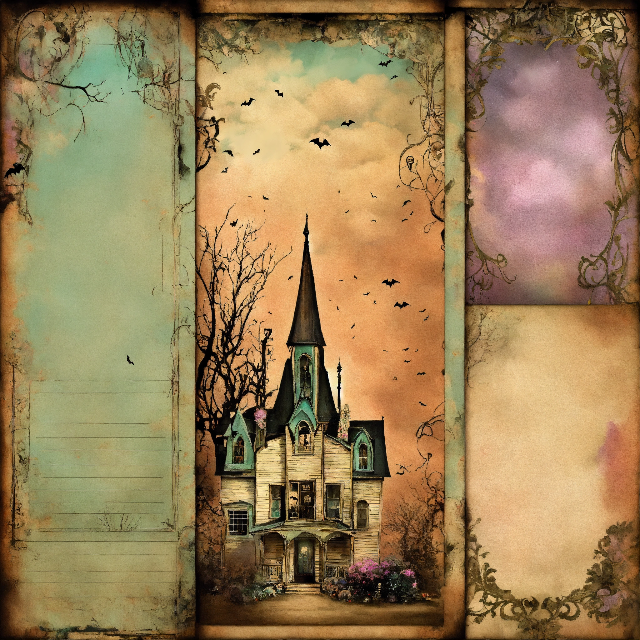 Shabby chic dreamy mist pastel junk journals halloween junk journal pages, creepy rooms, digital scrapbook paper kit, spooky gothic printable, vintage ephemera, house collage sheet swirling magical fairytale abstract art style