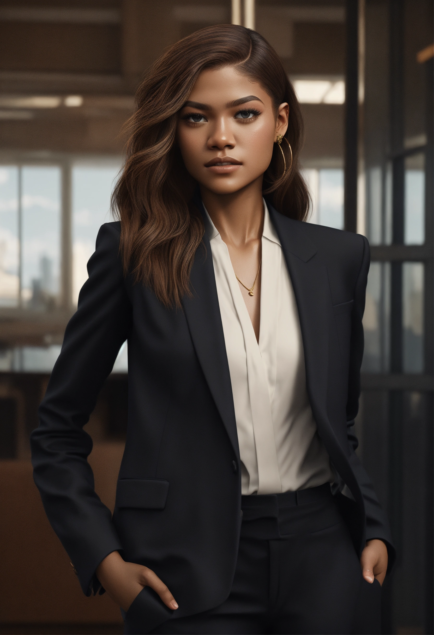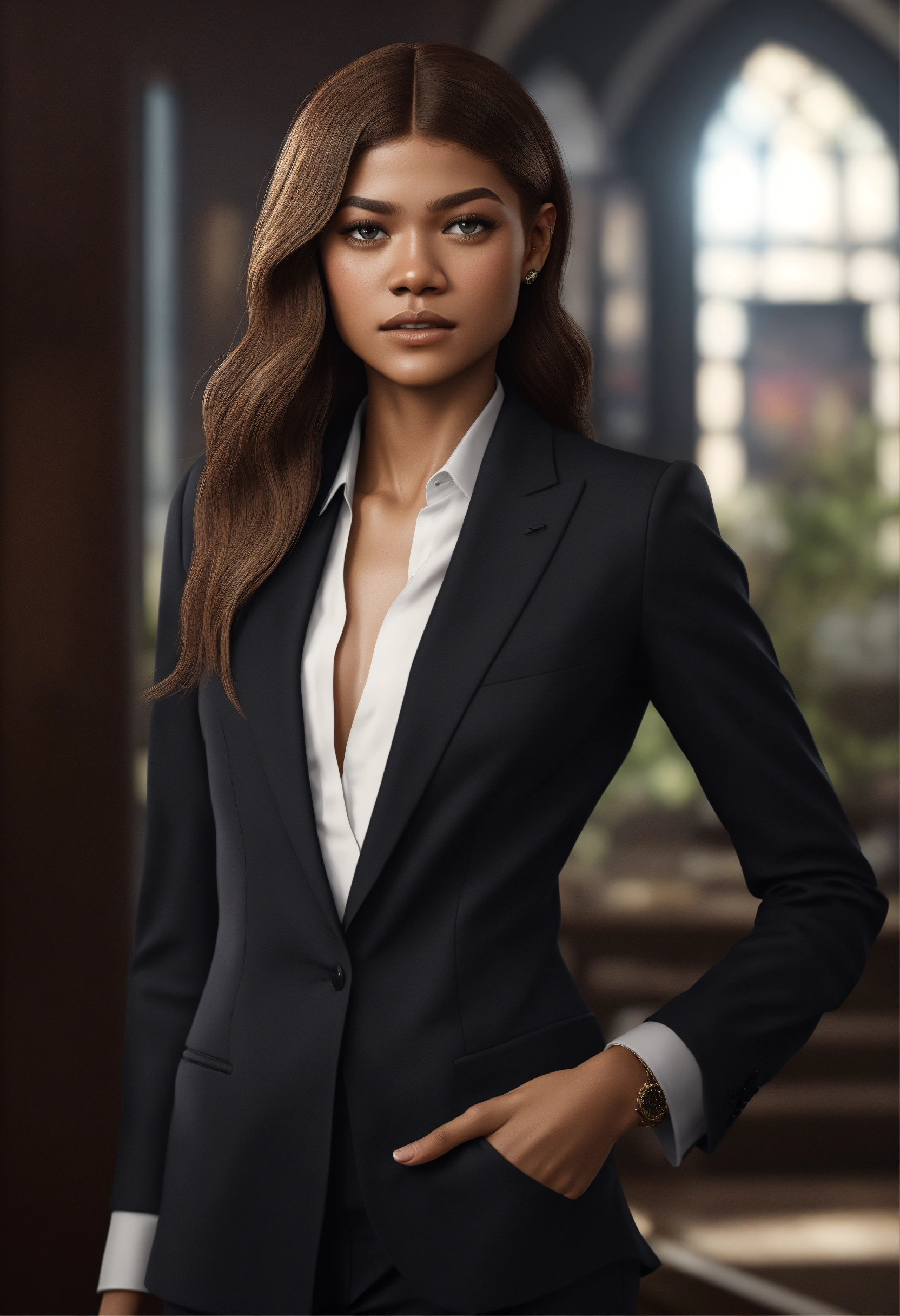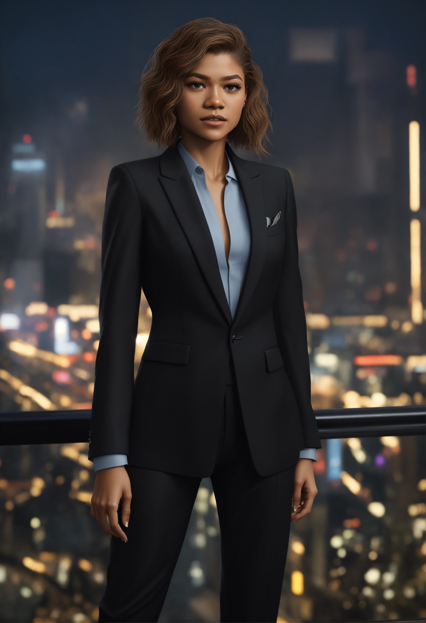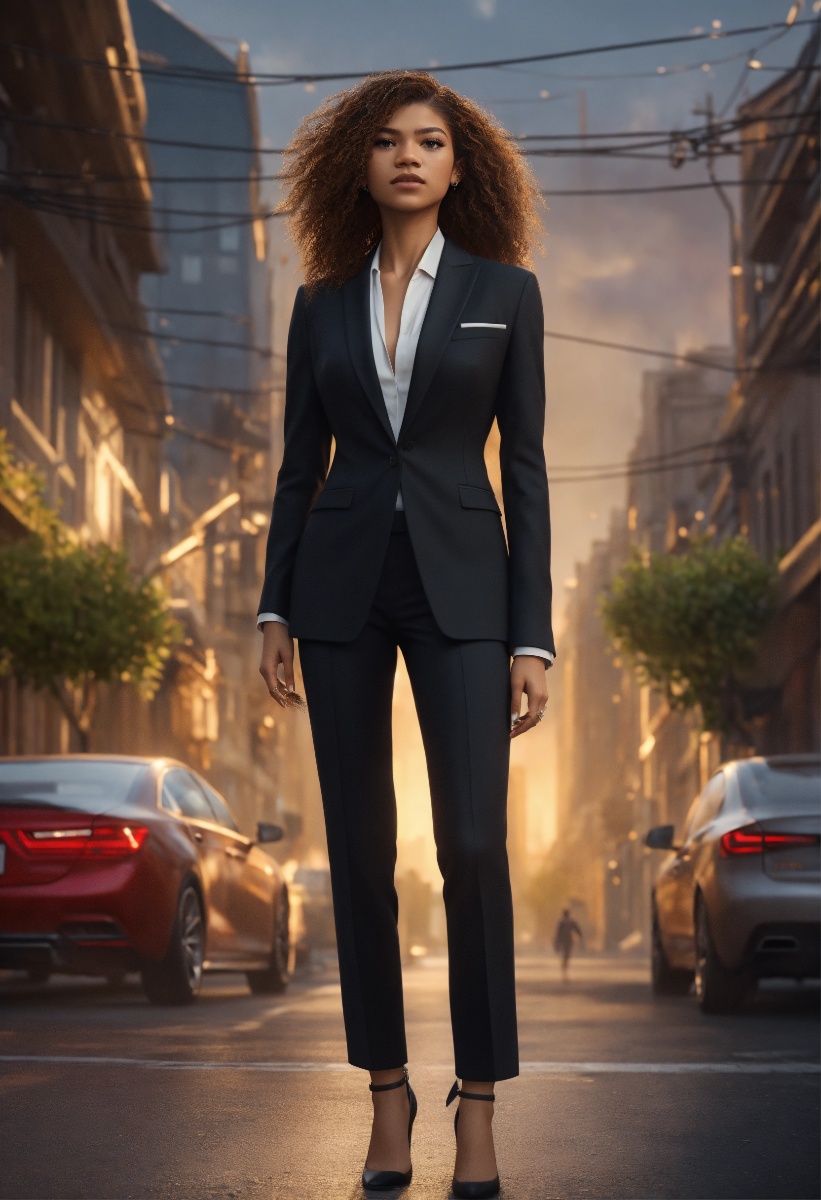 Full body portrait, zendaya, straight hair, black business suit, 8k resolution concept art by greg rutkowski, hyperdetailed, intricately detailed, unreal engine, hyperrealism, depth of field, photorealism, digital art, photorealistic