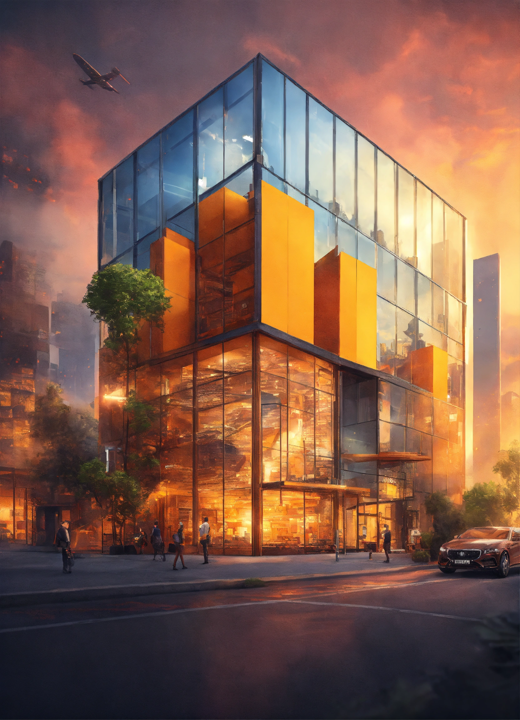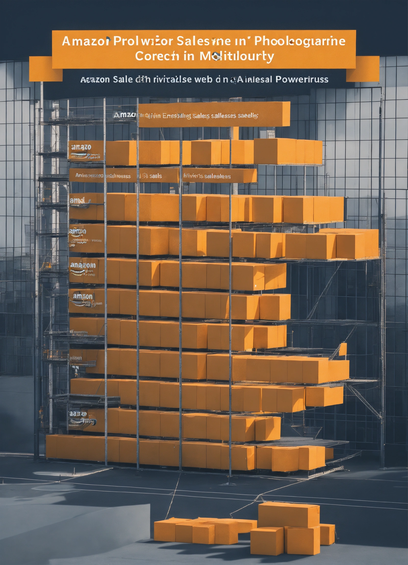 Create an image that symbolizes amazon's progress and dominance in the web-based sales industry. depict amazon's exploration from being an established powerhouse in the web-based sales industry, highlighting the use of a/b statistics as a driving force behind its success.
