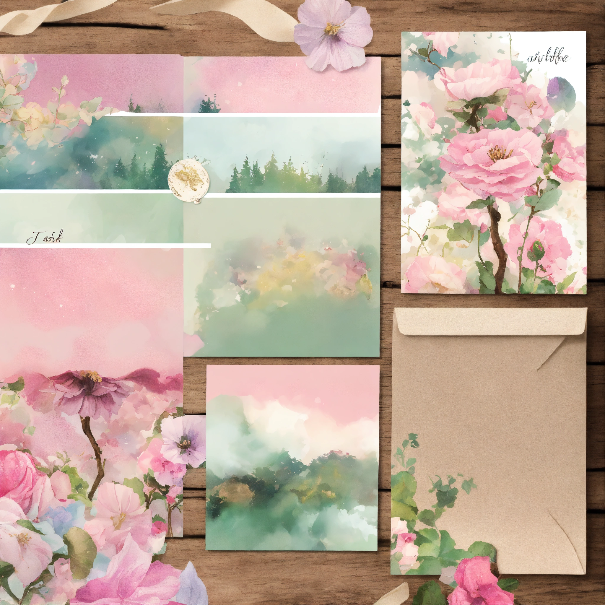 Shabby chic dreamy mist pastel junk journals address labels stickers to write on hollyhock wood tree printable labels stationery, digital swirling magical fairytale abstract art style