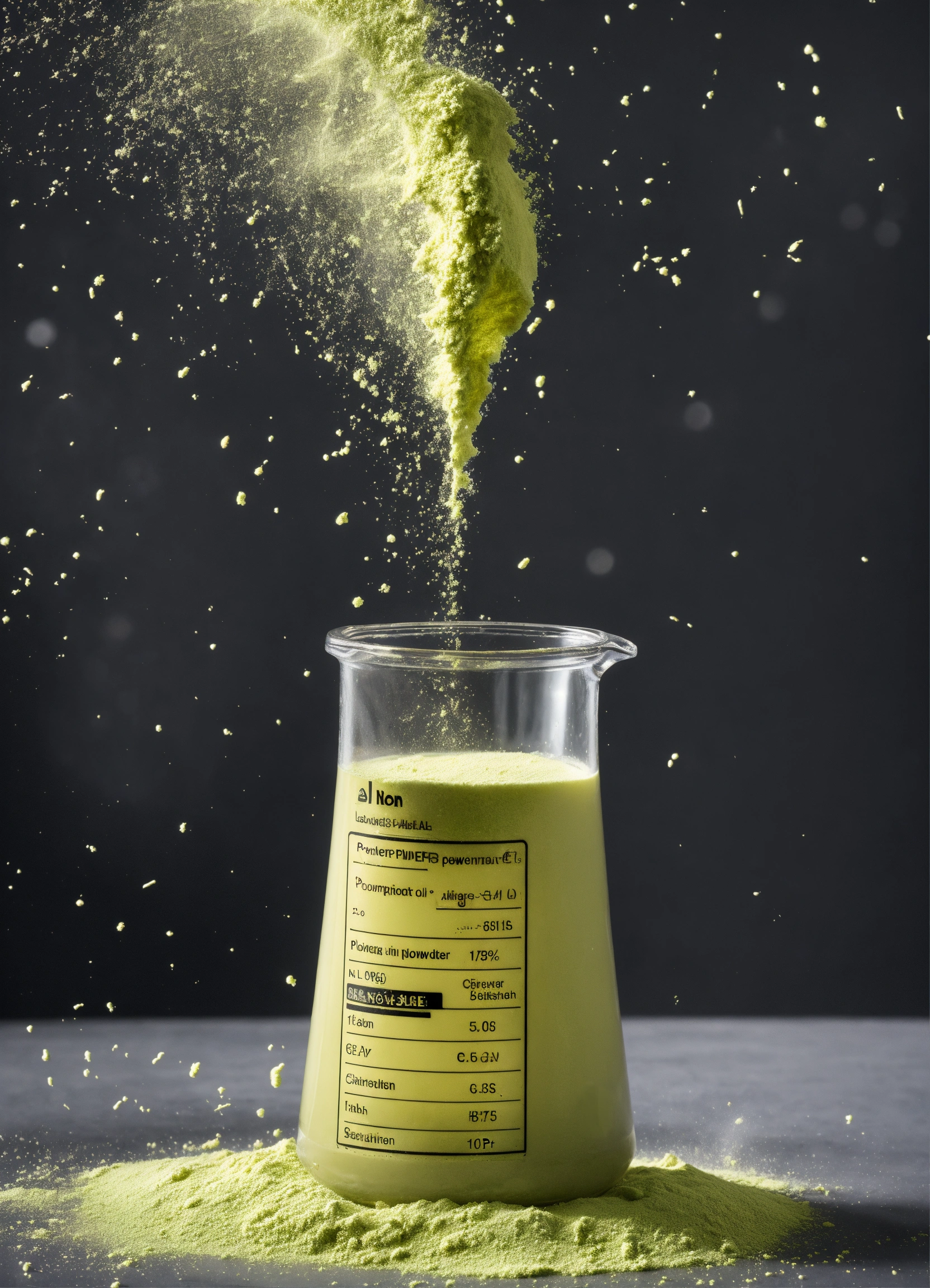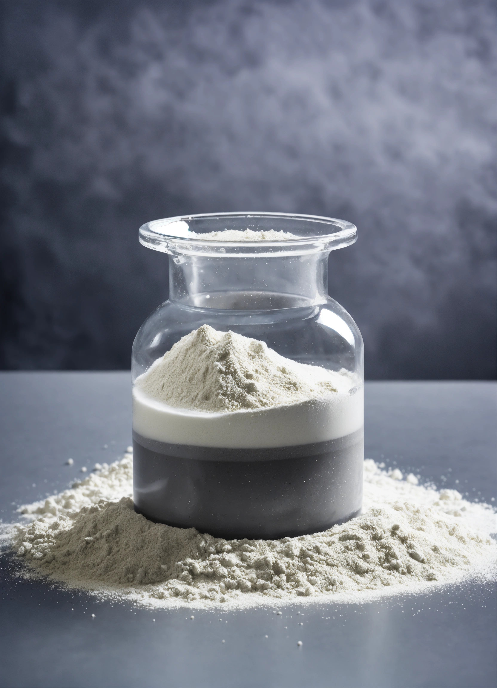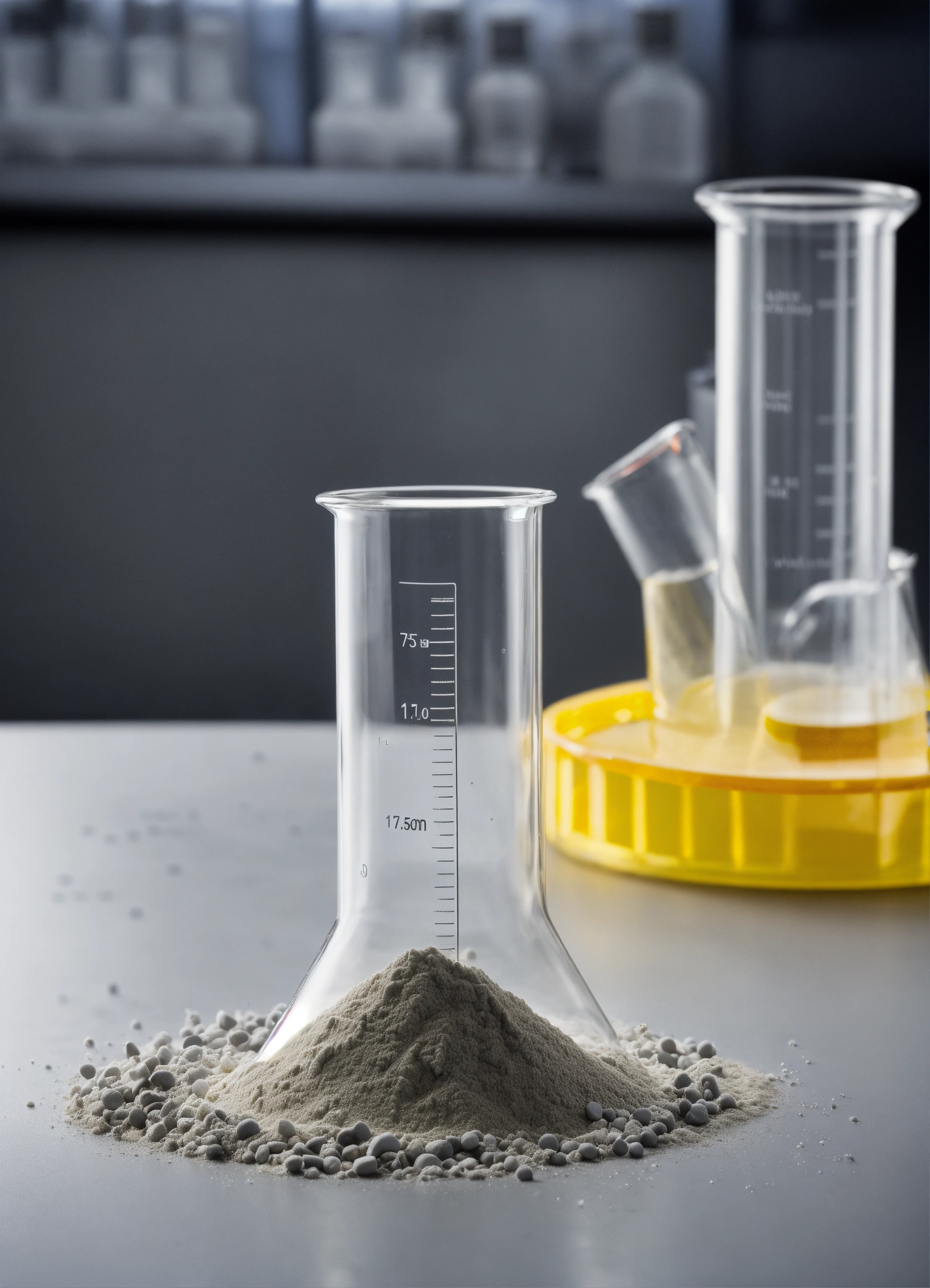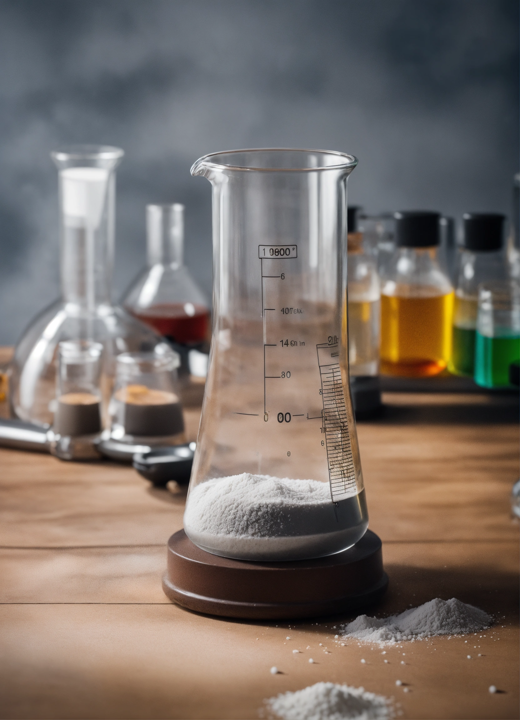 Powder in a laboratory beaker in a laboratory environment