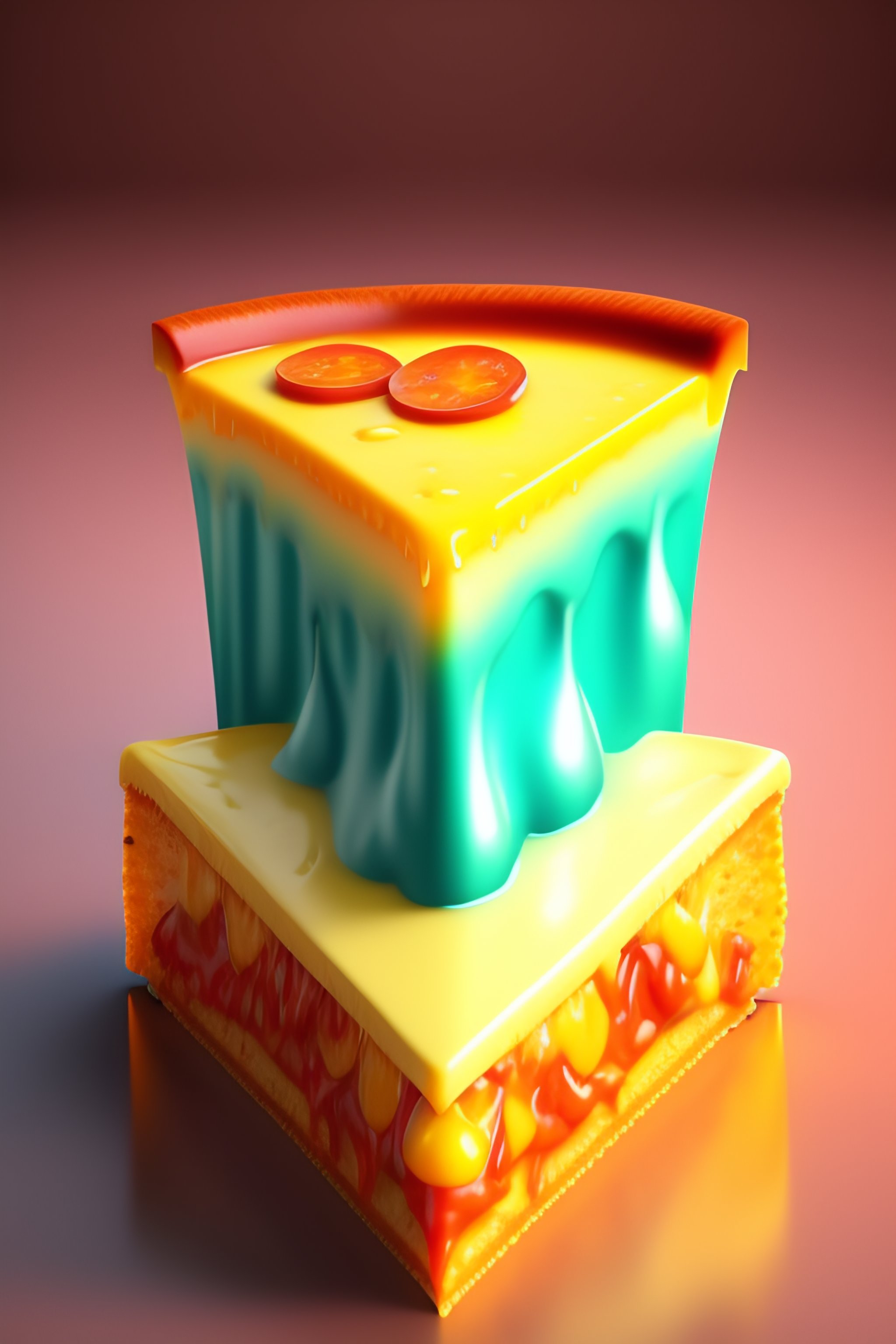 3d cartoon style slice of super cheesy pizza, dripping with cheese, made in blender, 3d cartoon model, smooth shading