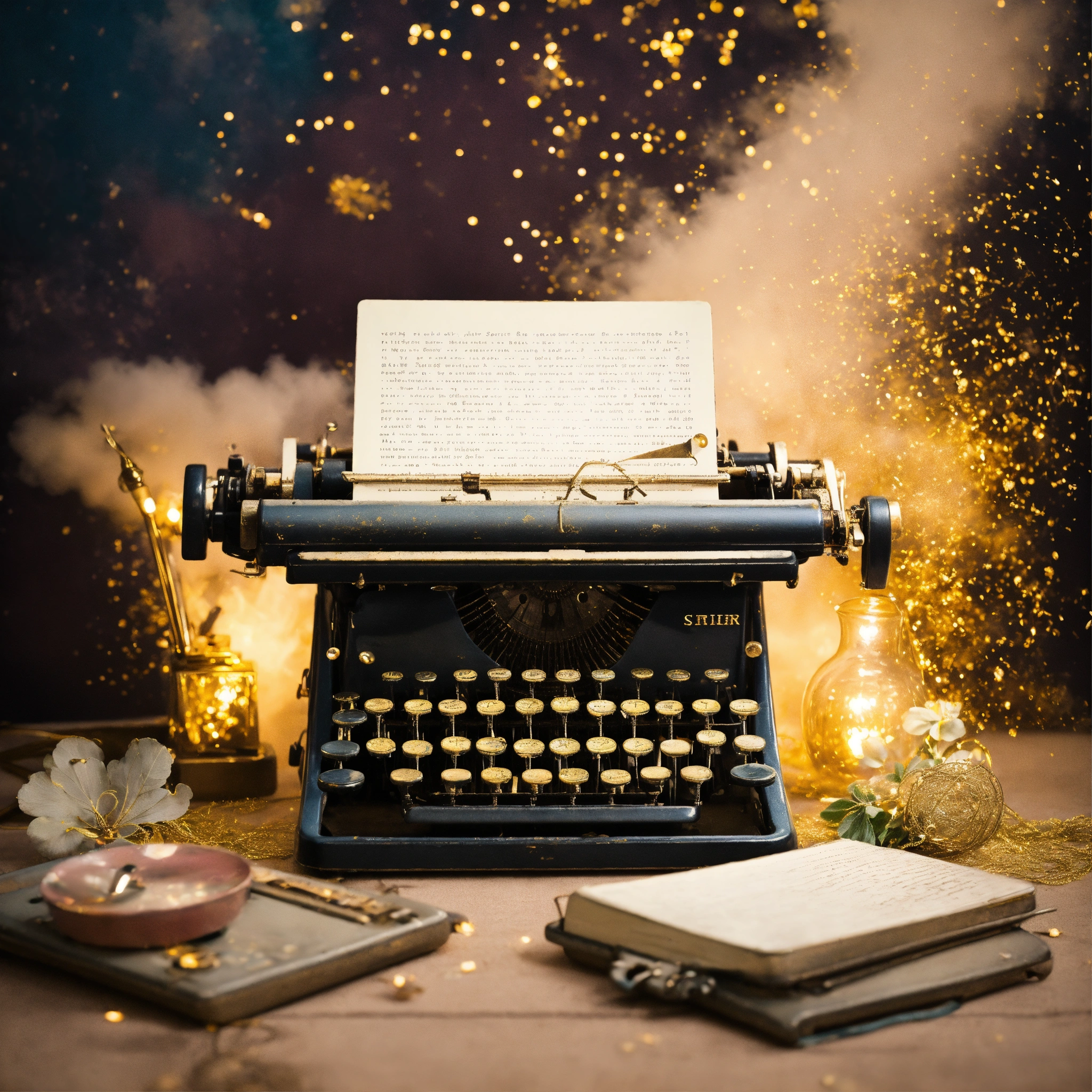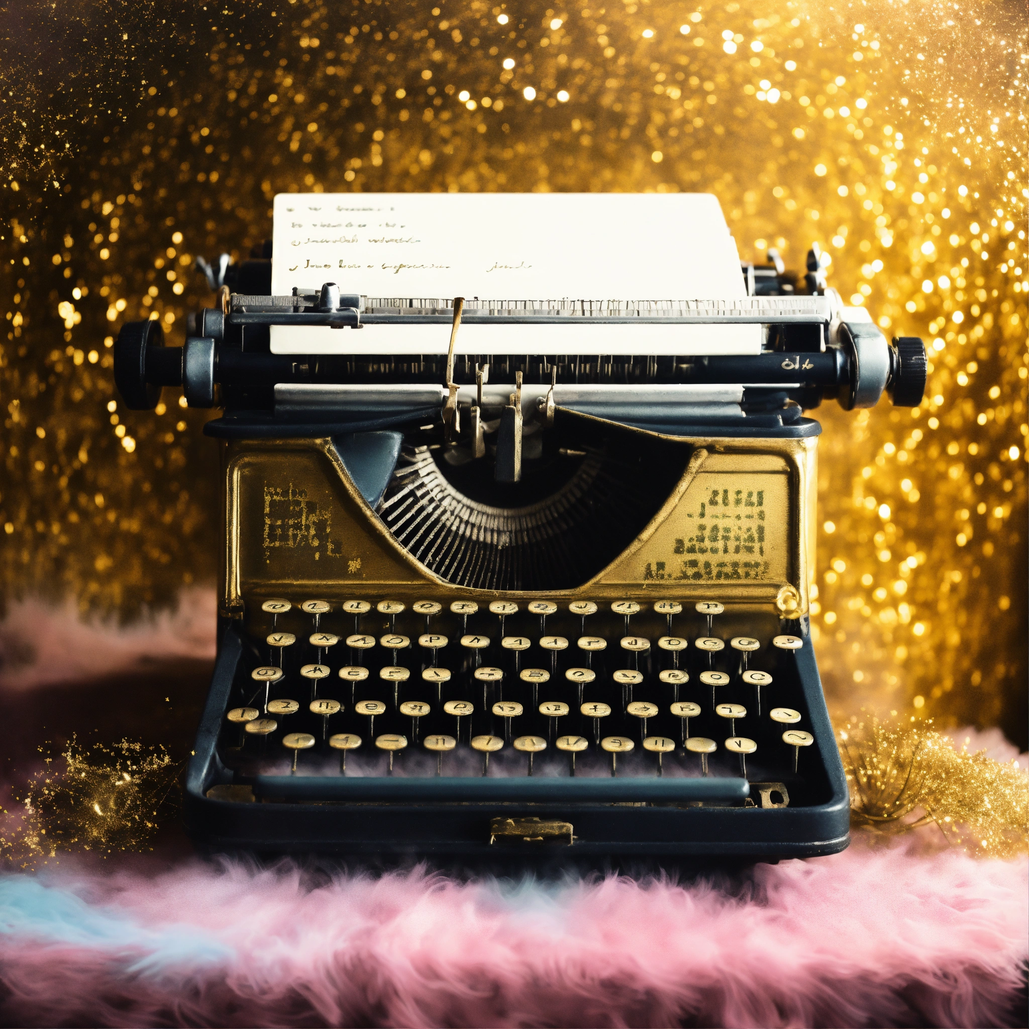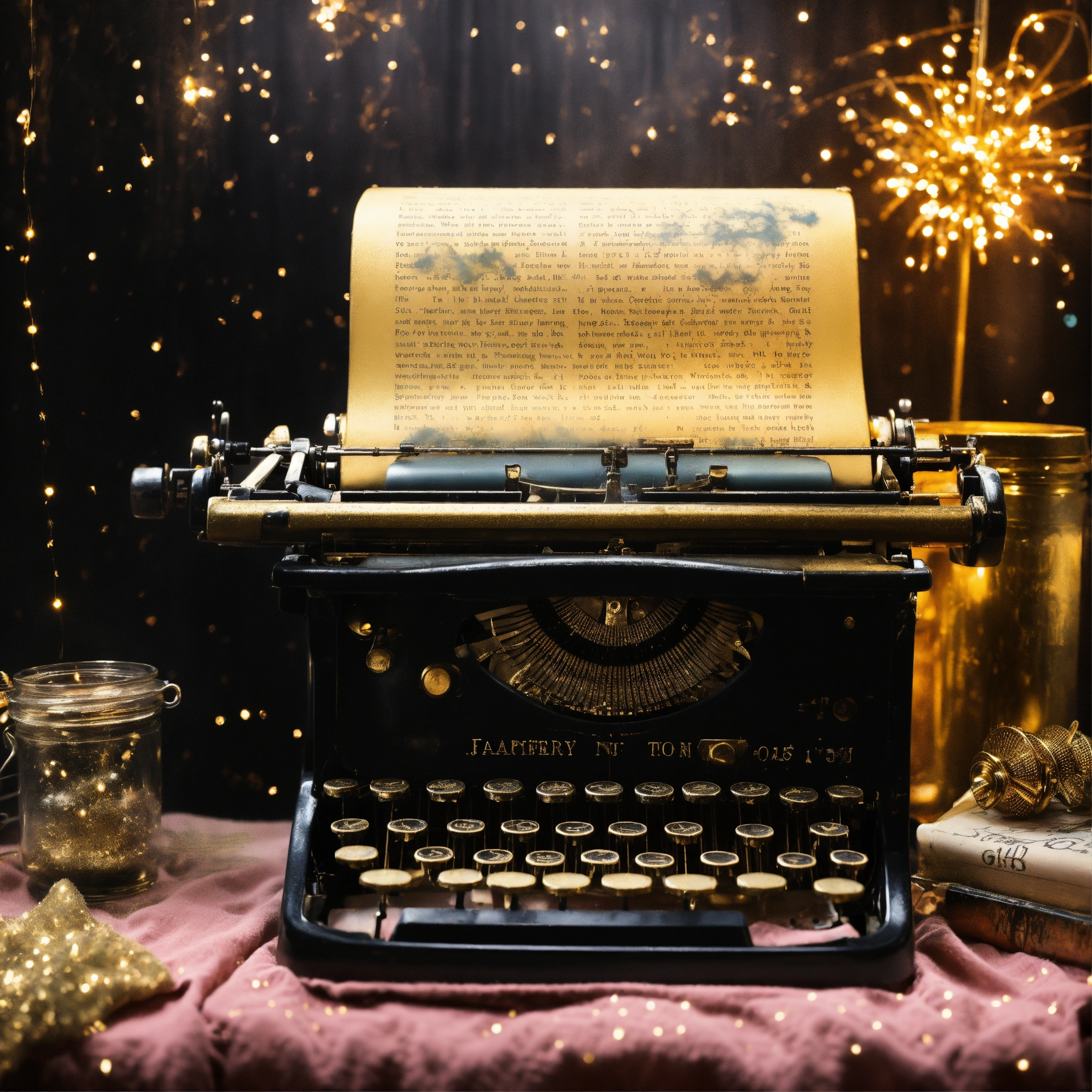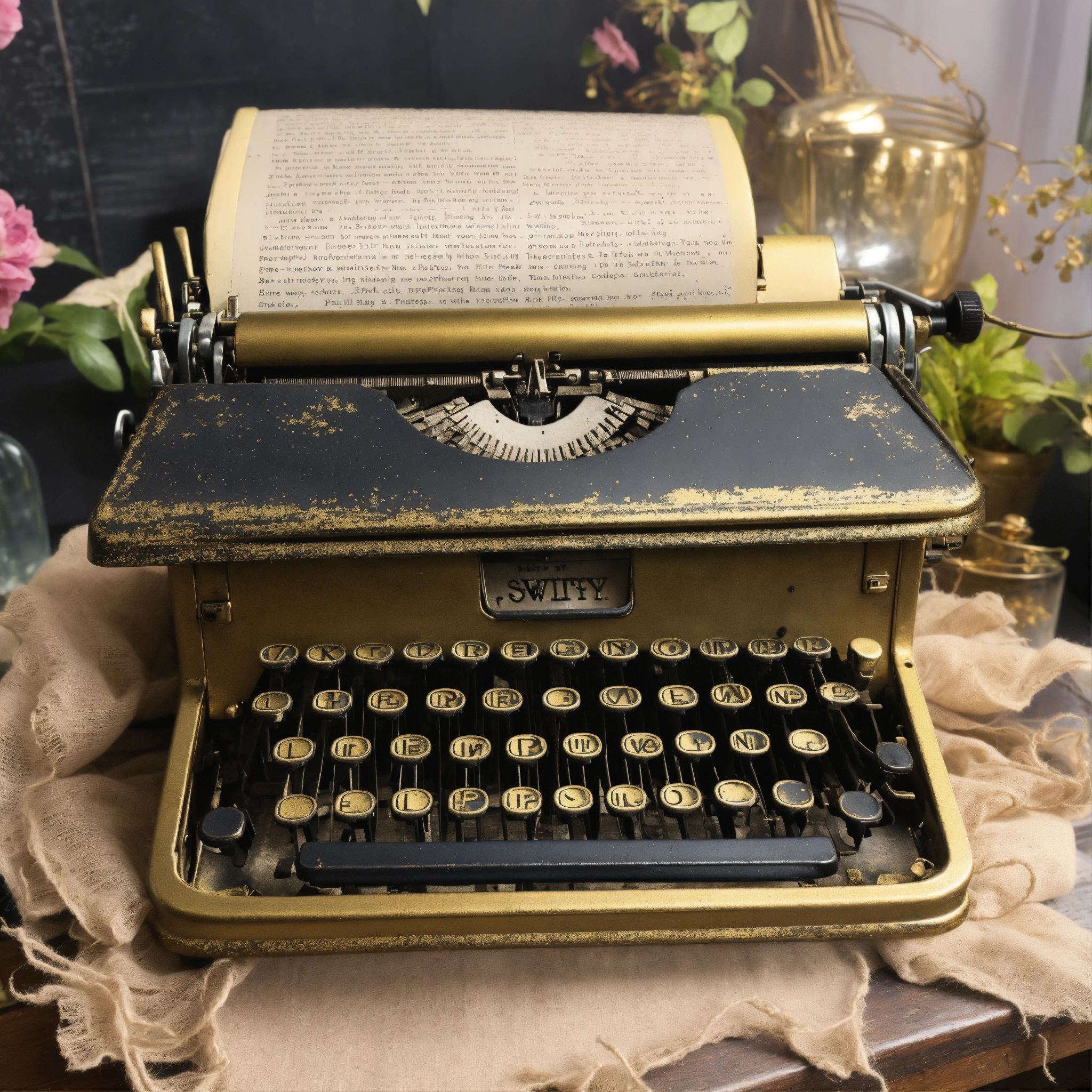 Shabby chic dreamy mist pastel junk journals vintage retro old age typewriter black and gold sparkeling swirling magical fairytale abstract art style
