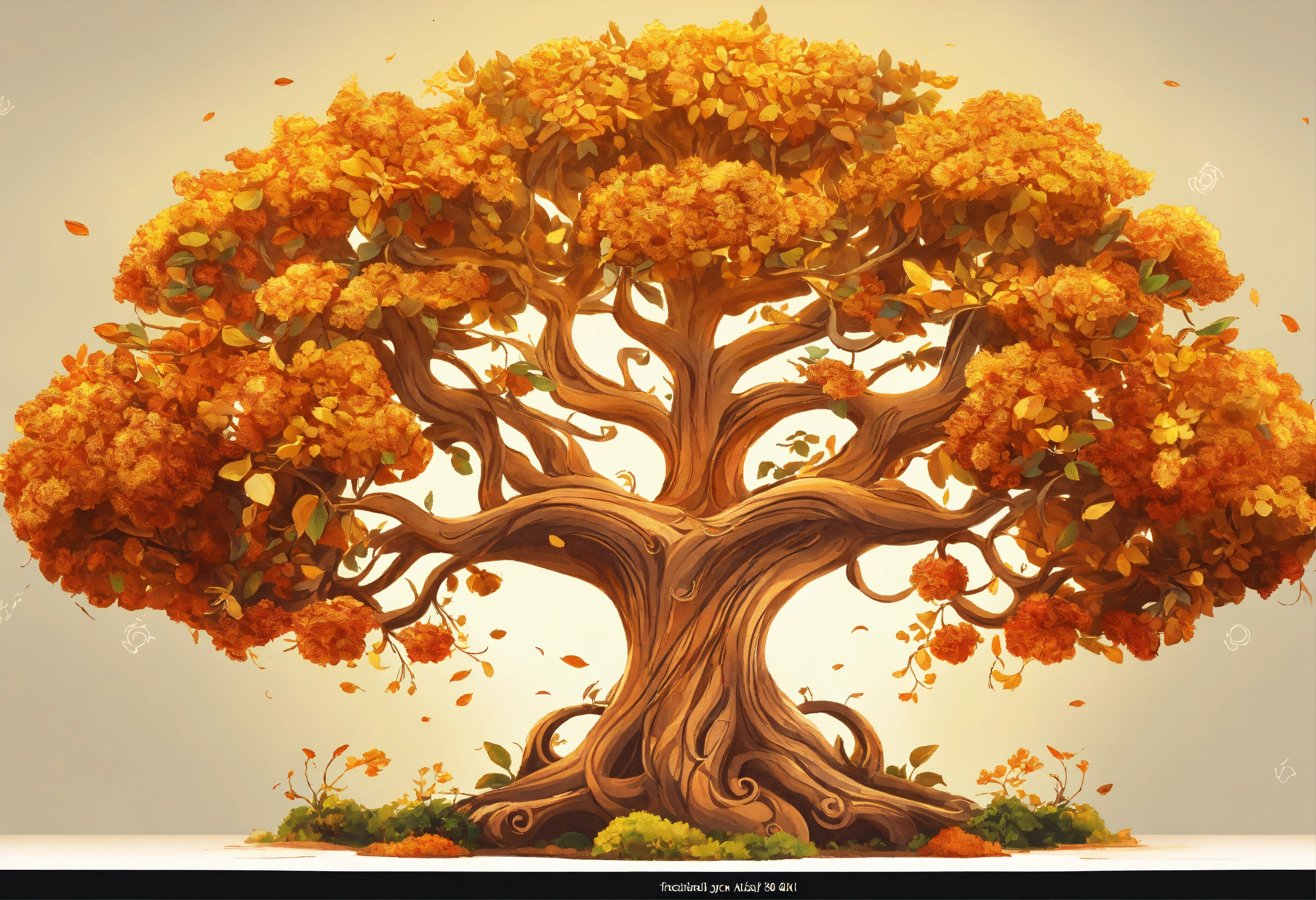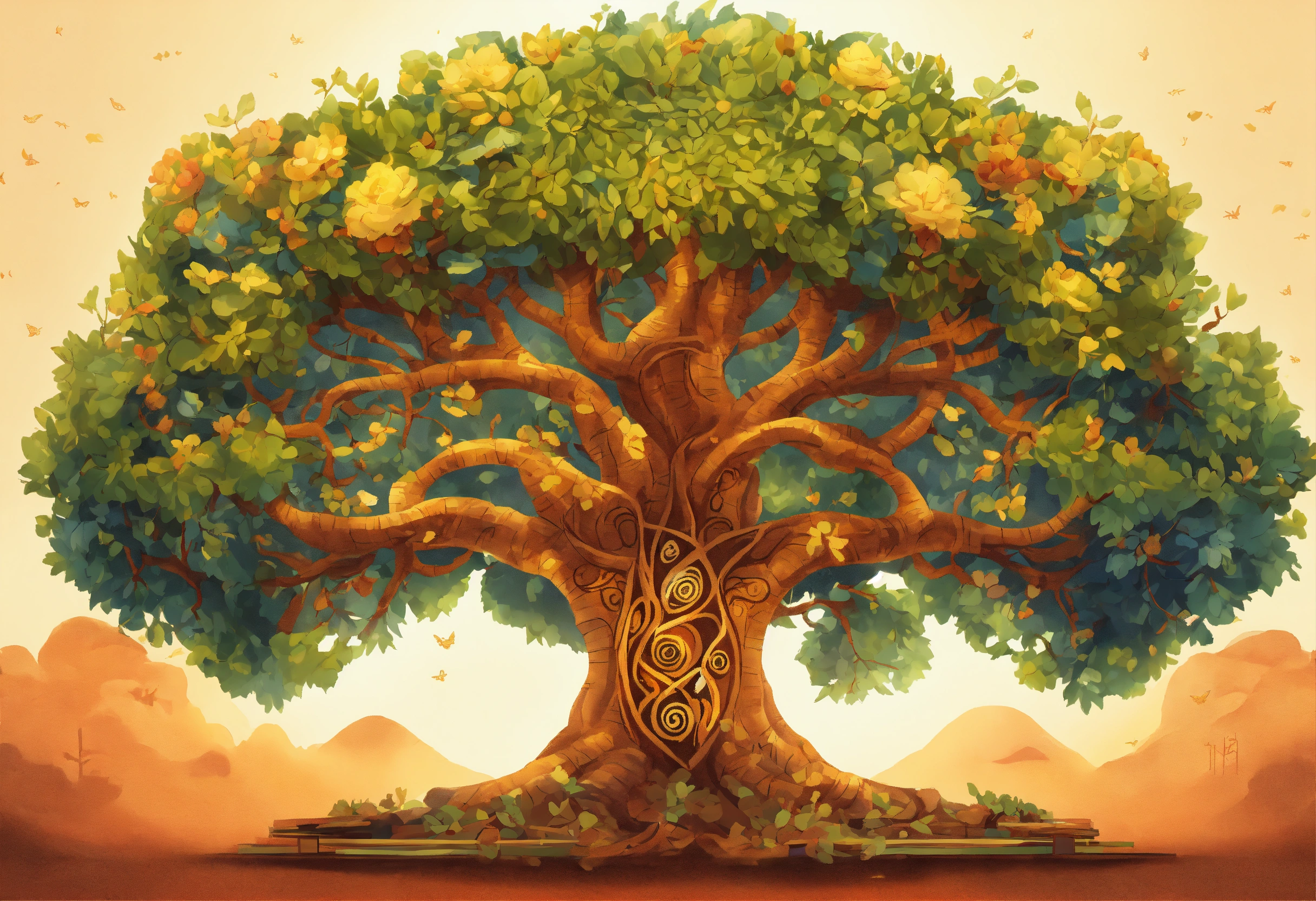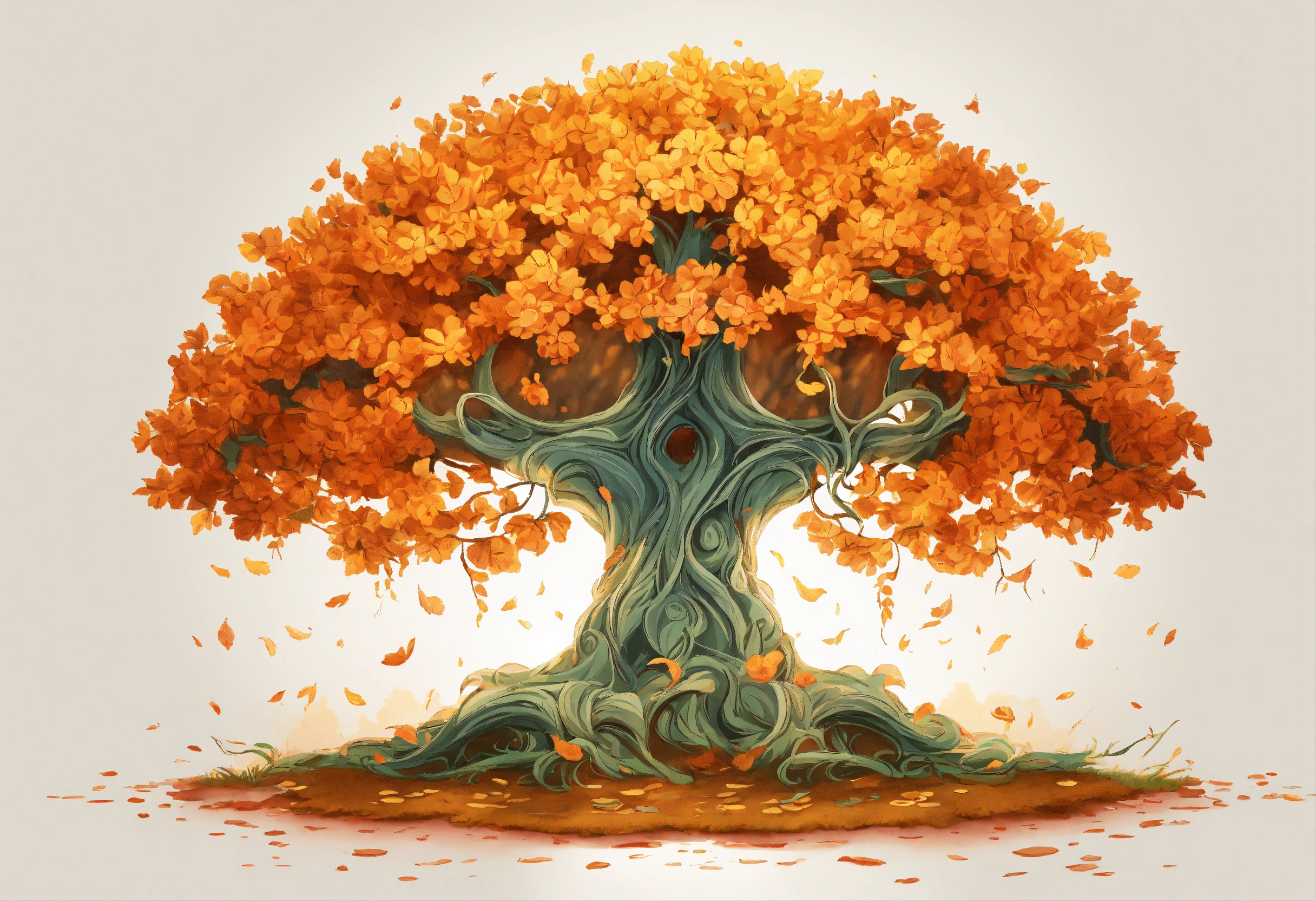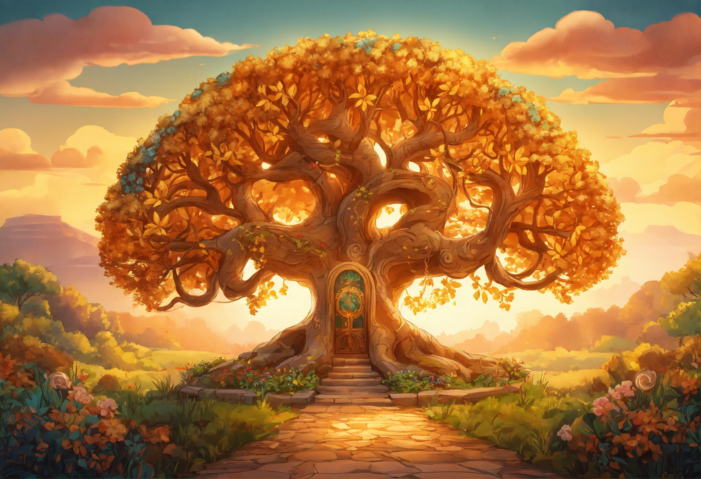 Vector image, beautiful cartoon style tree of life on a white background, warm light, intricate and detailed, 8k, ultra-detailed, sharp focus
