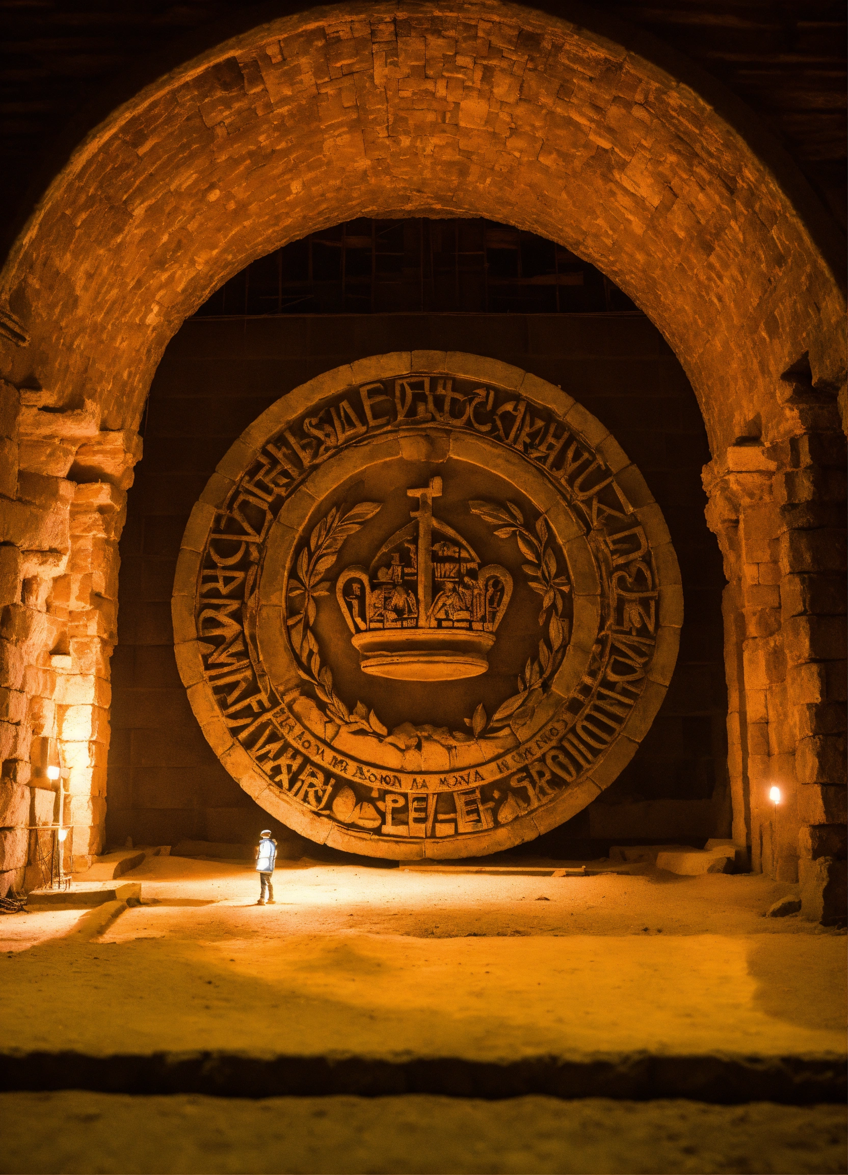 El logotipo del real arco de la masonería instalado en una piedra dovela de construcción