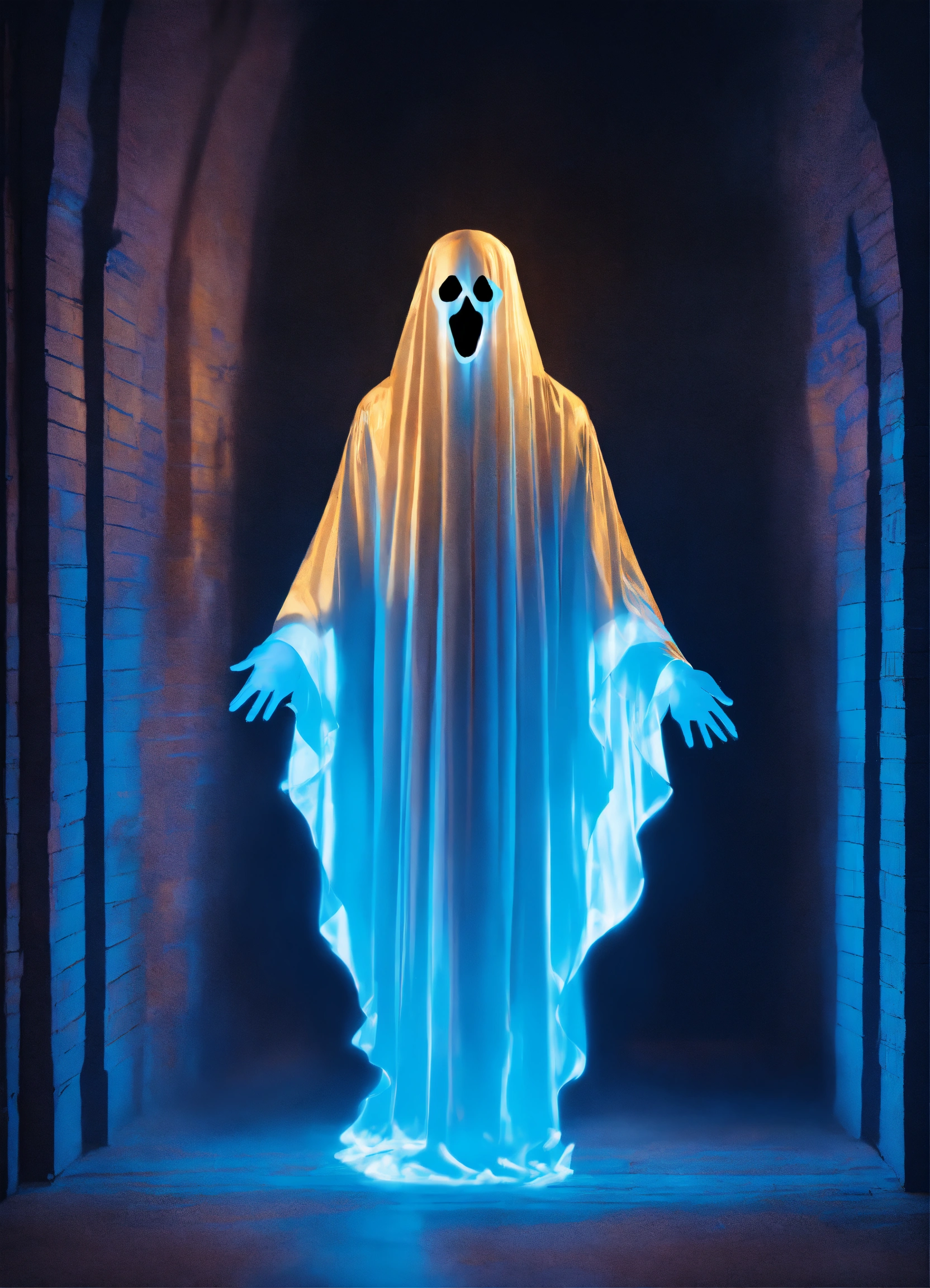 Illusion holographic ghost glowing blue