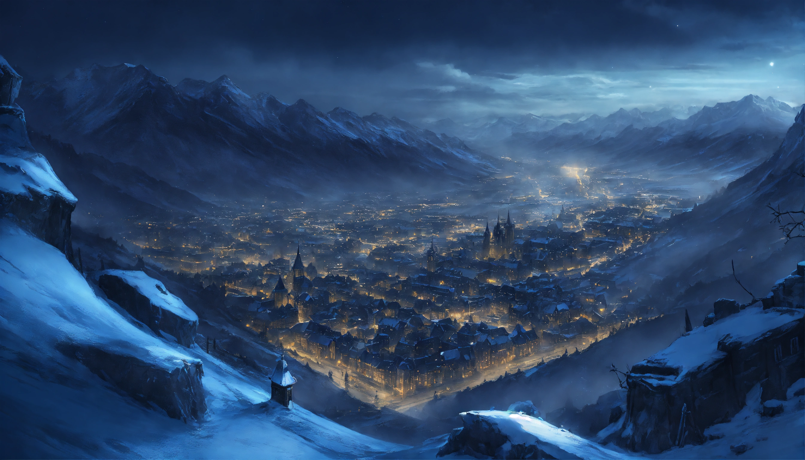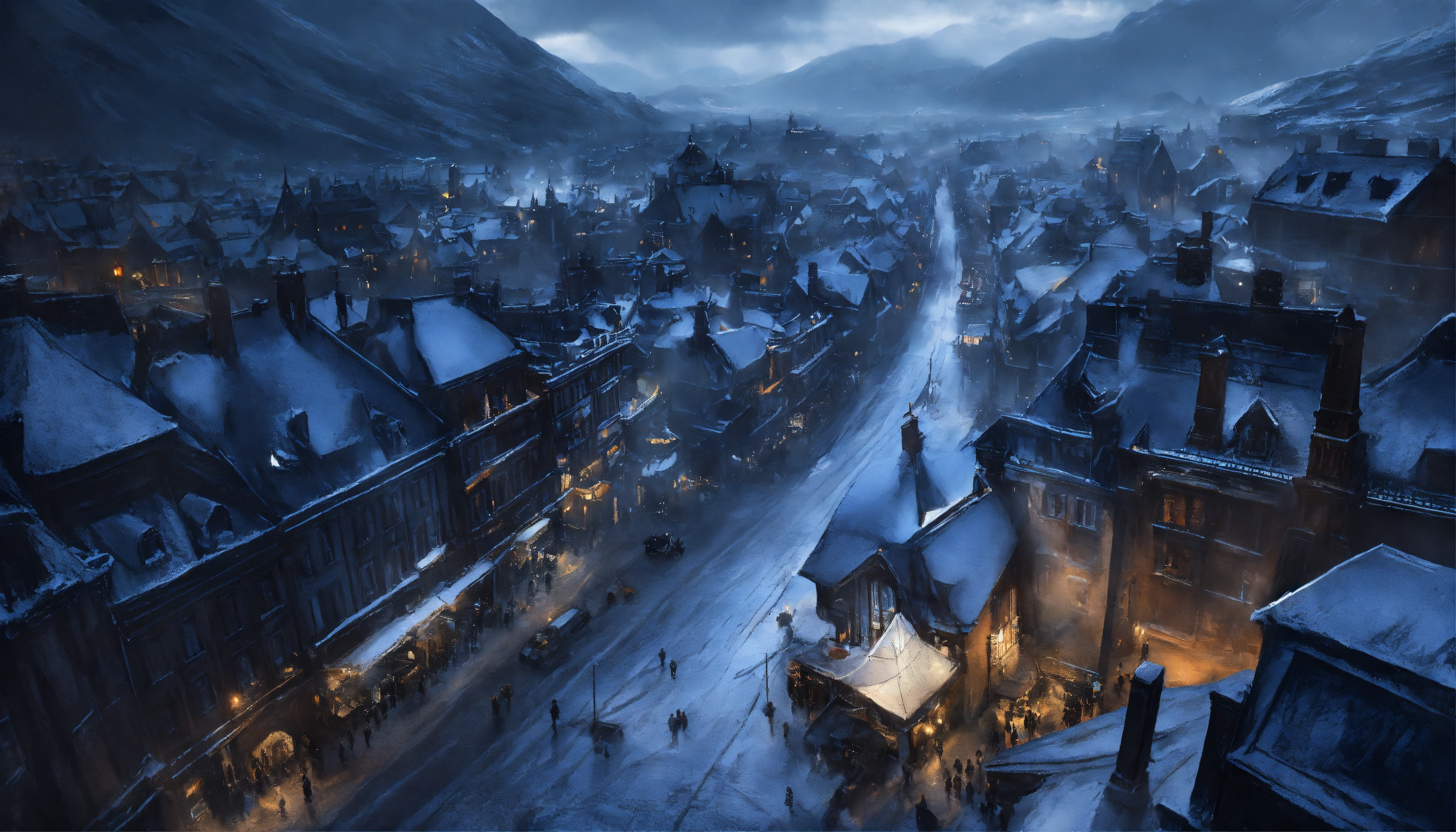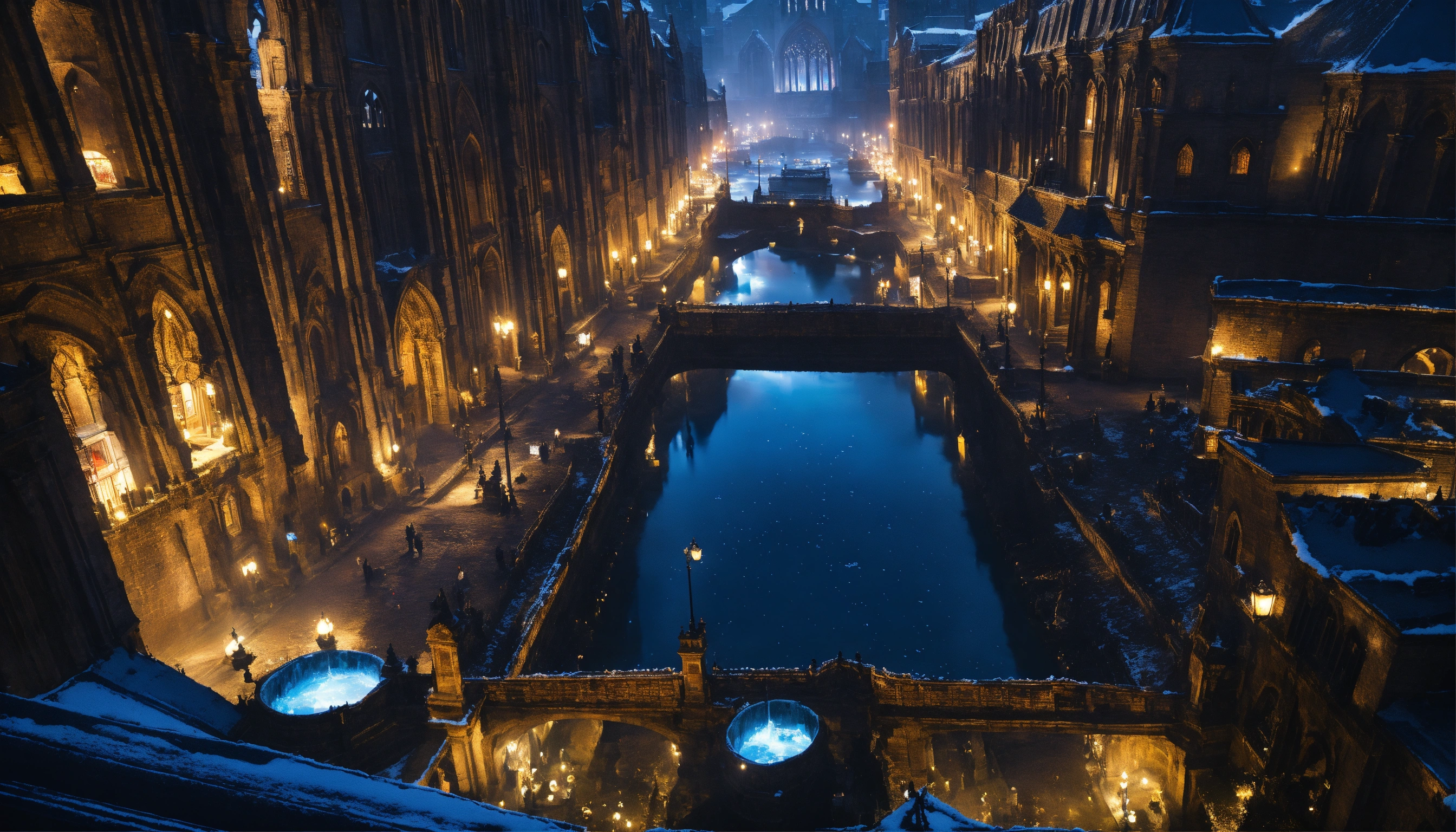 Looking down on a dark gothic city