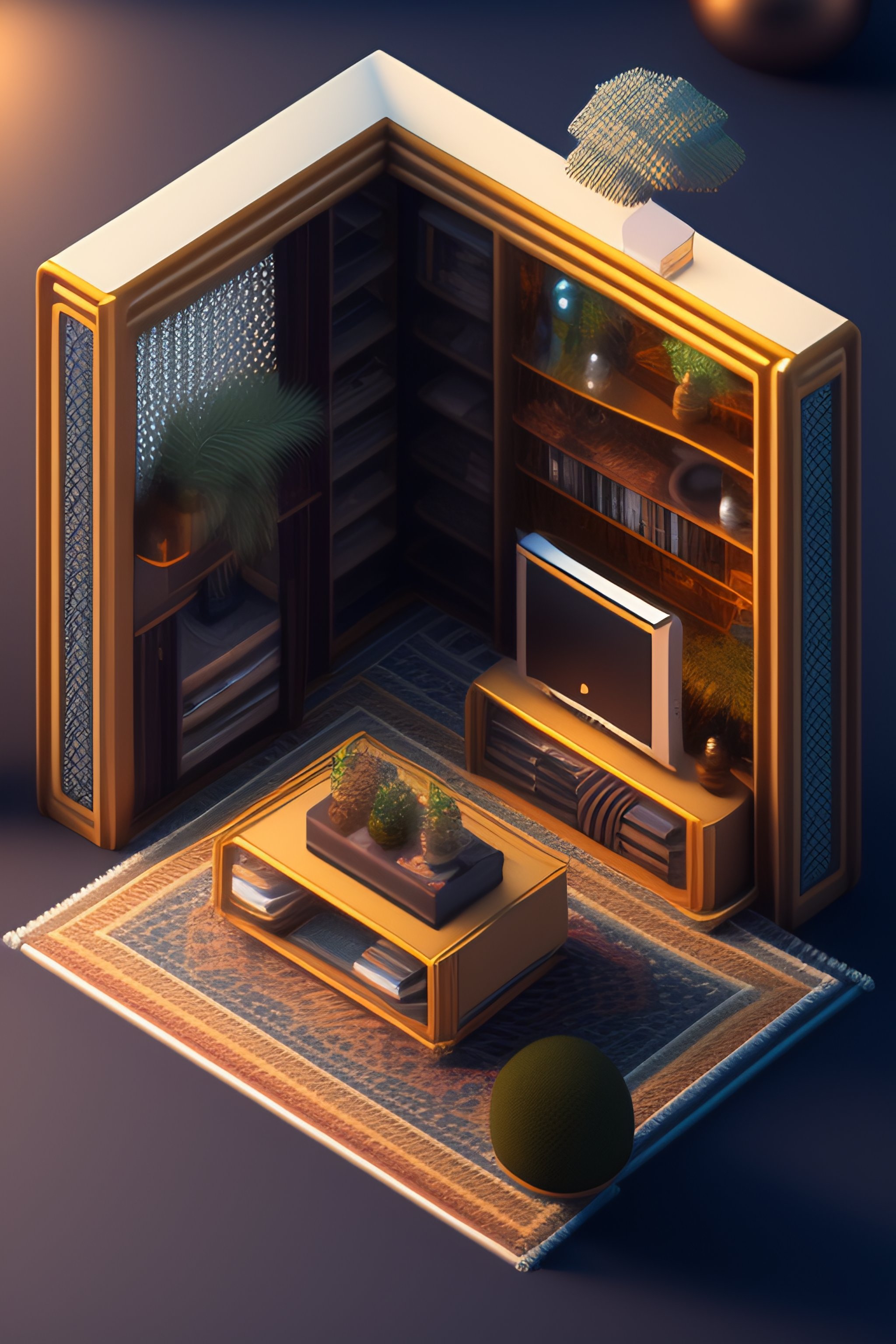 Detailed isometric living room, pixel art, unreal engine voxel render, video games, very cozy, nostalgia, boy in room in front of tv, c4d render, alexander mcqueen high fashion haute couture, esher, pearl earring, art nouveau fashion embroidered, steampunk, intricate details, mesh wire, mandelbrot fractal, anatomical, facial muscles, cable wires, microchip, elegant, hyper realistic, ultra detailed, octane render, salvador dali style, volumetric lighting, 8k post-production