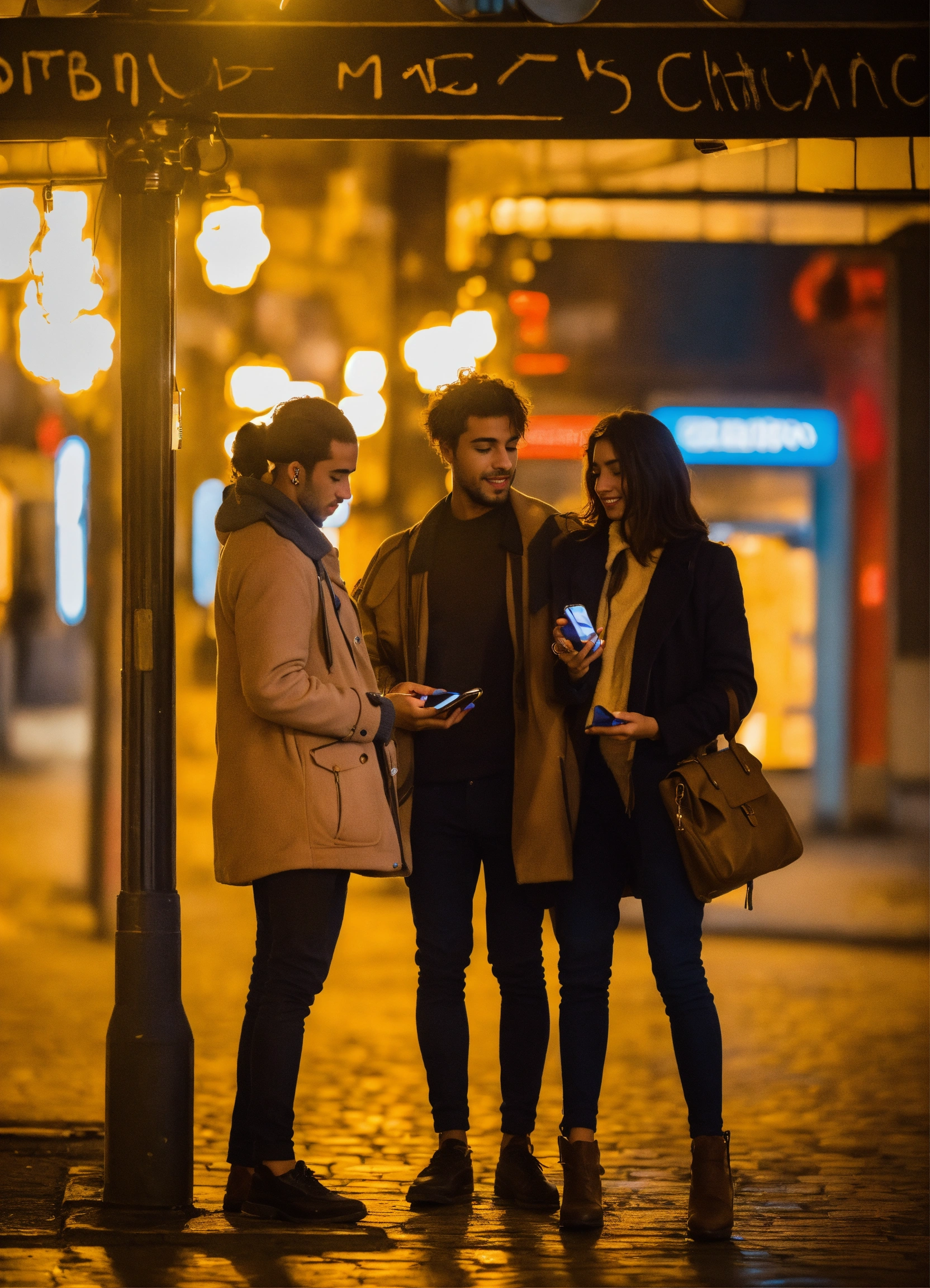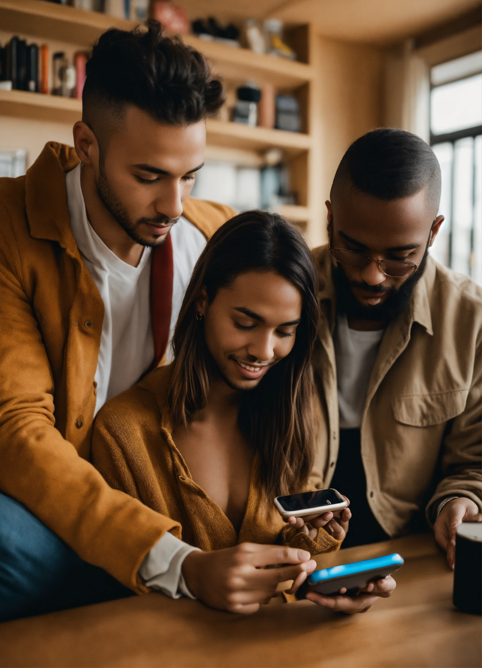 Deux hommes et une femme et chacun tenant dans sa main un smartphone