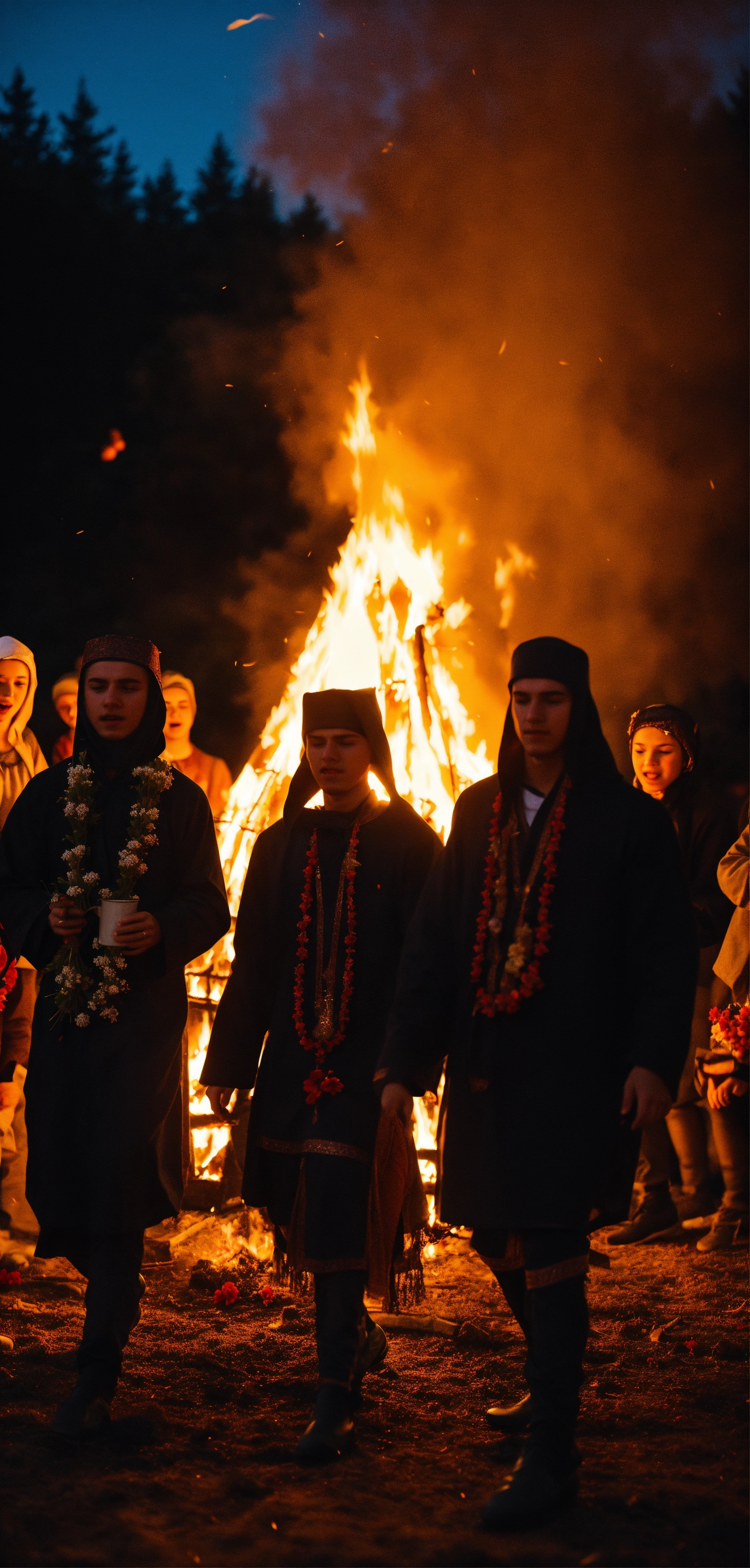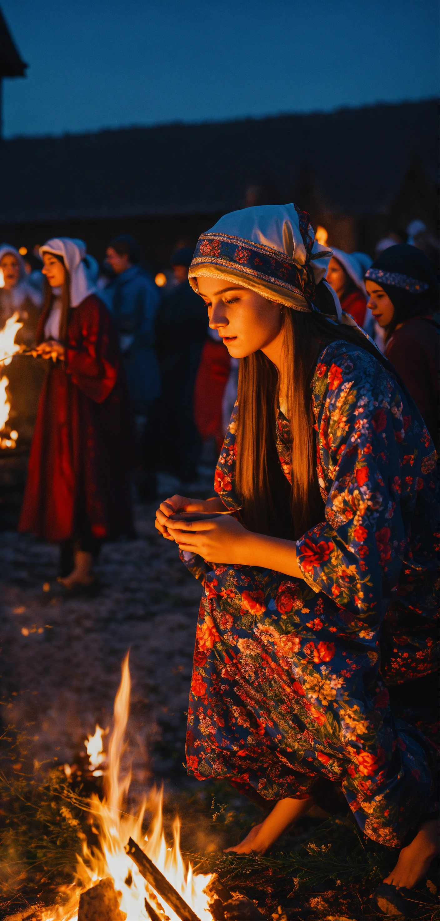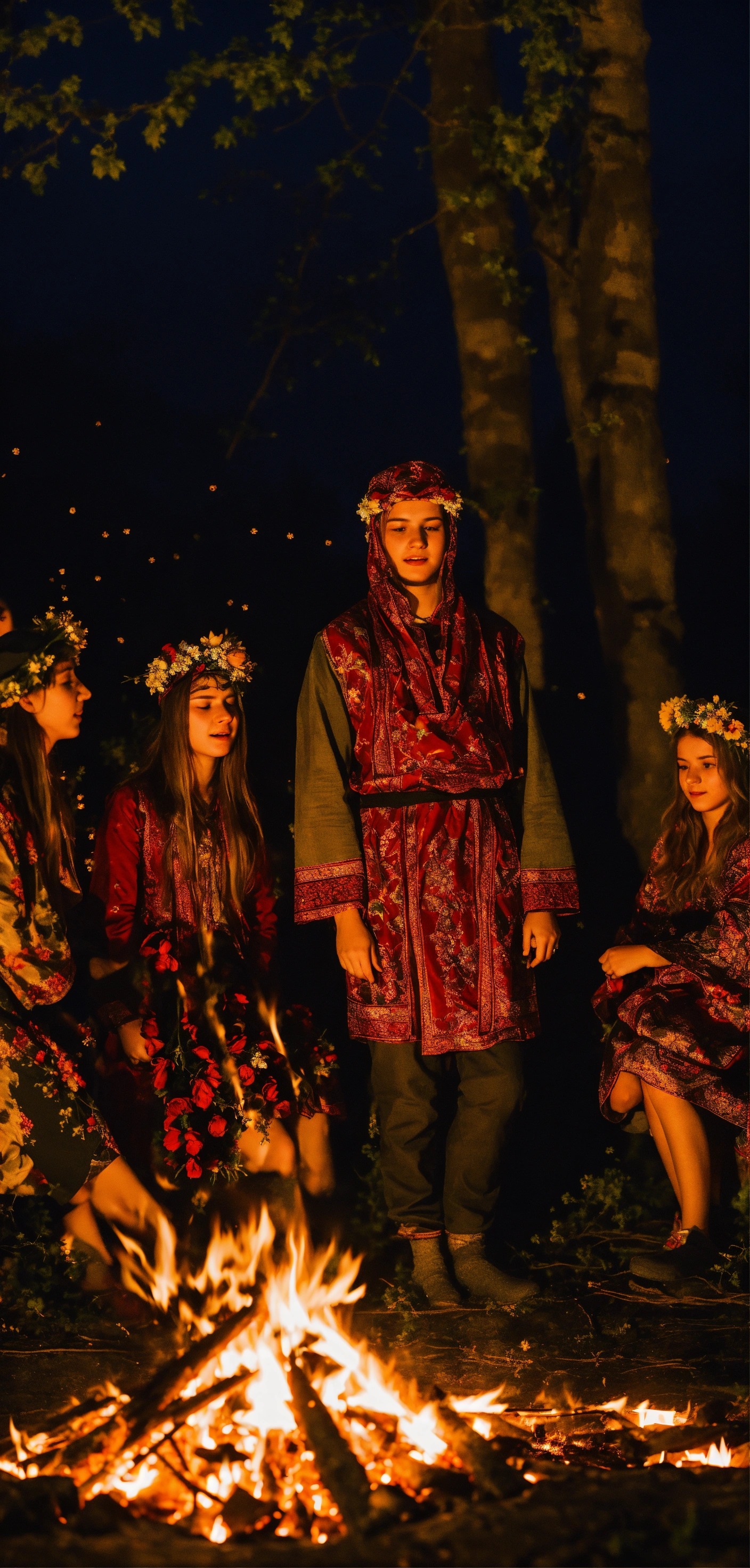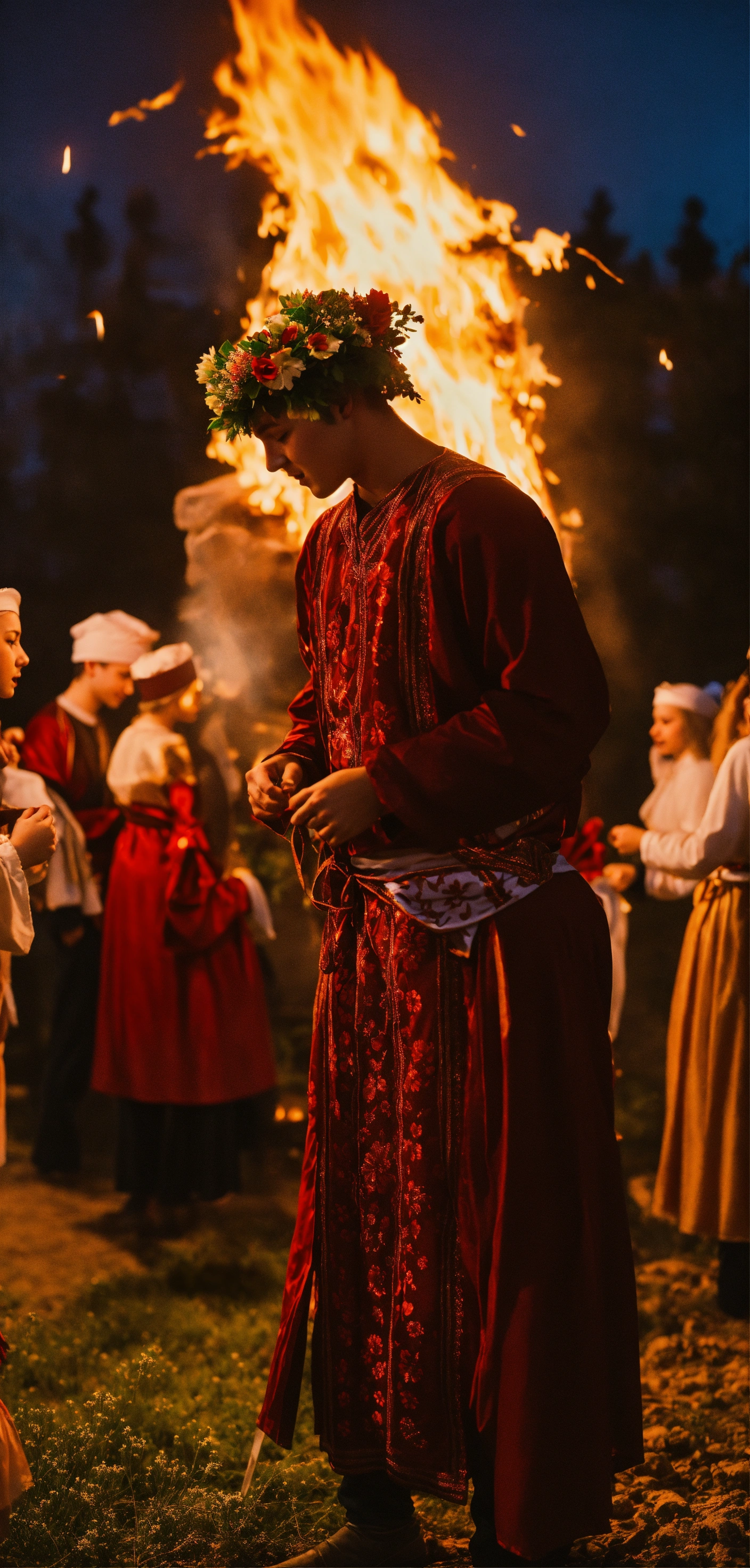 At night many slavic young people celebrate the holy day and dance around the fire 🔥, all dressed in clothes and underliners on their heads of flowers
