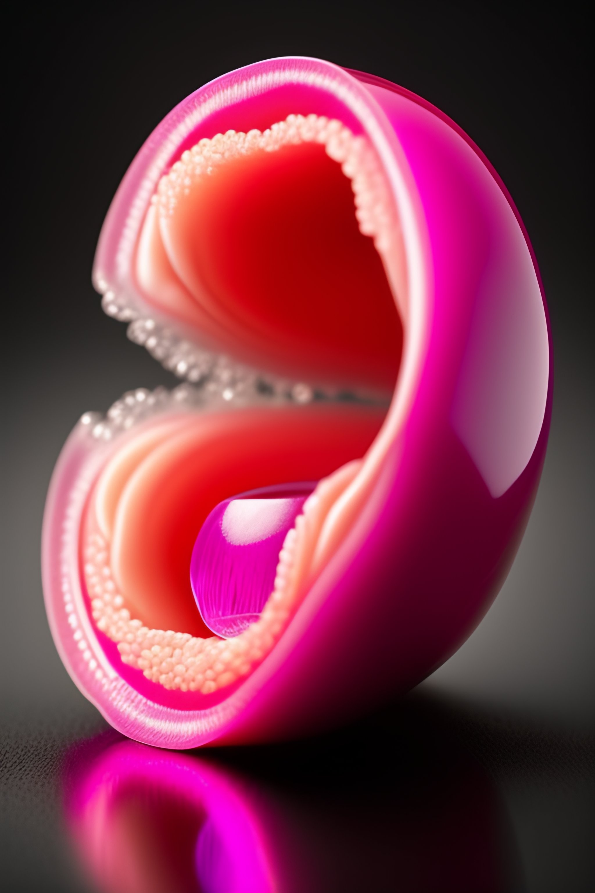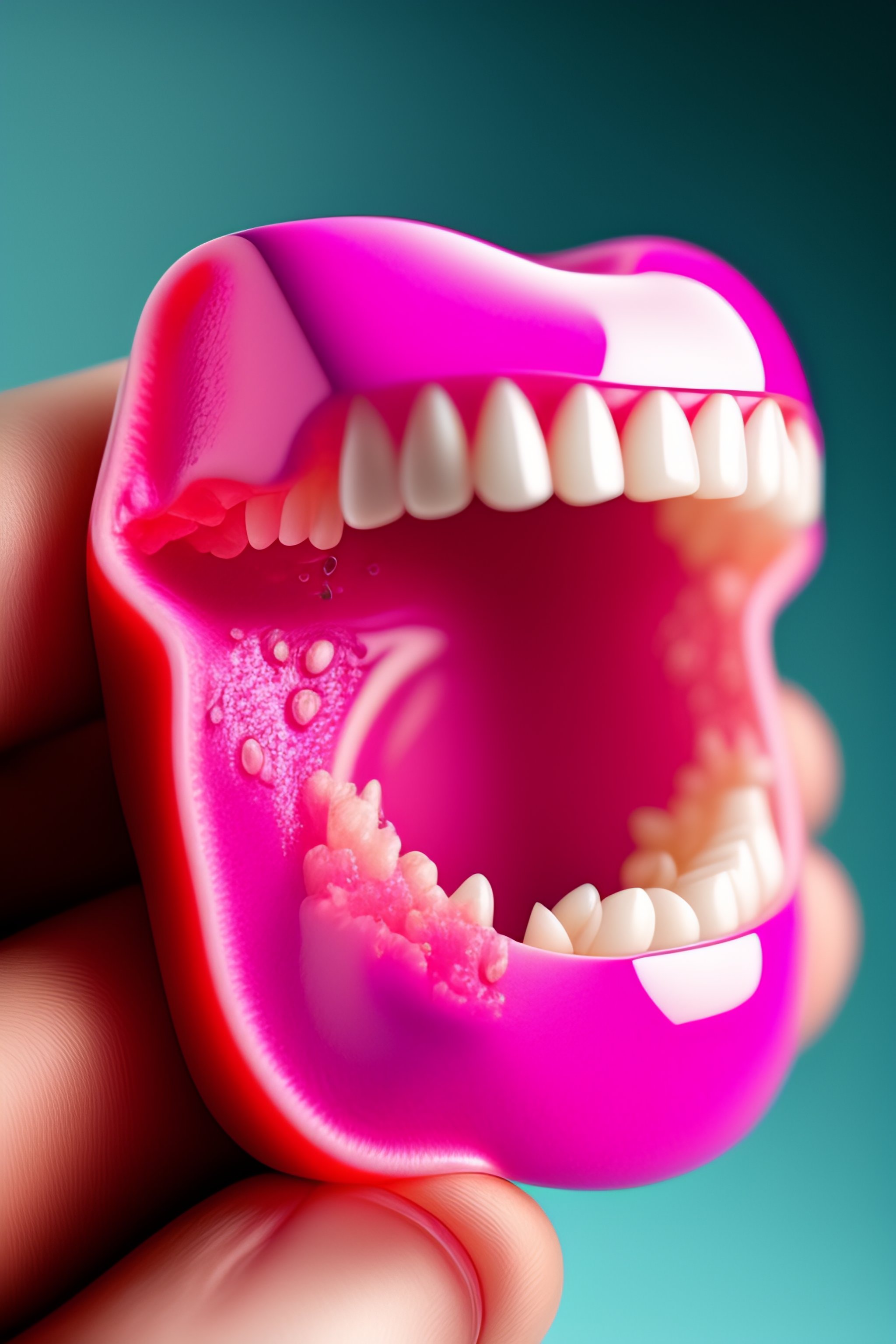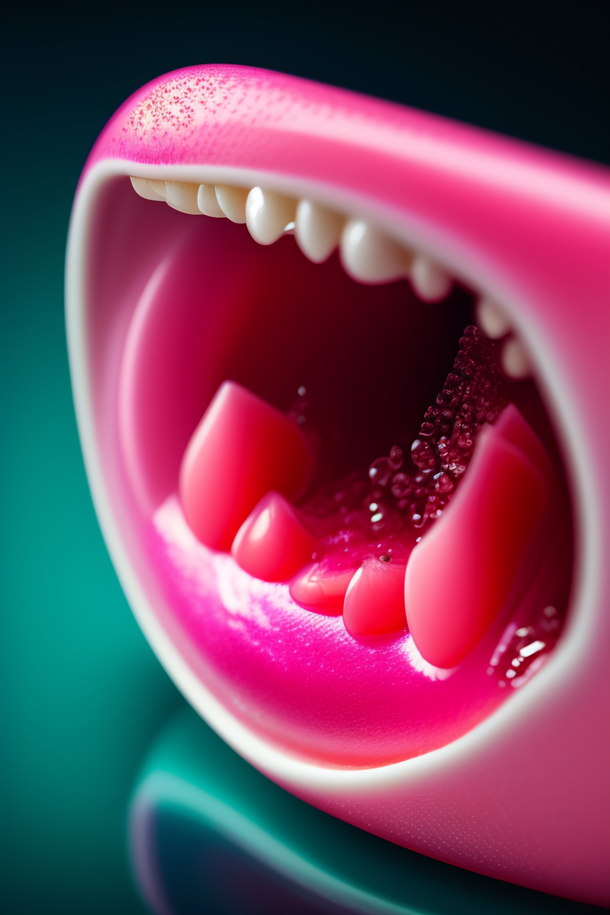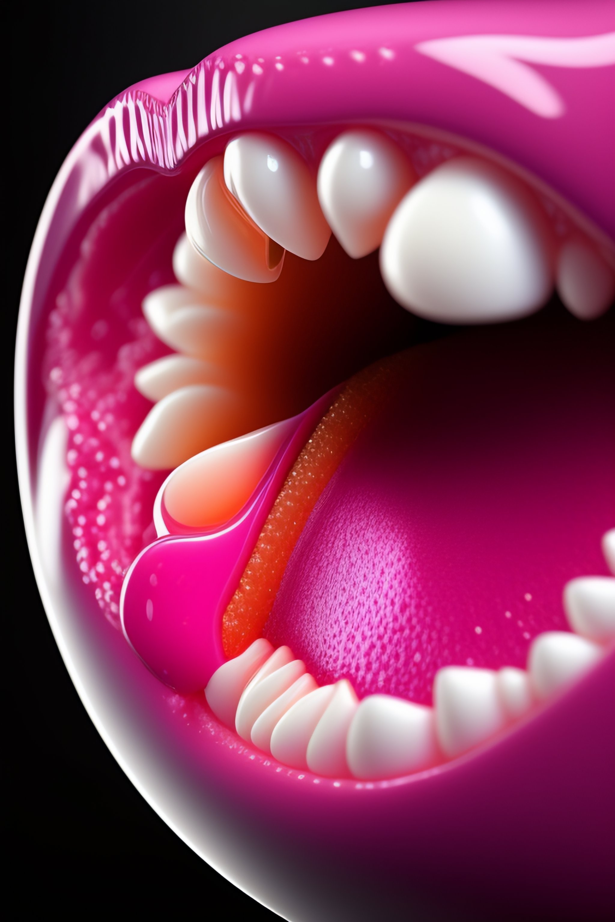 Hyperrealistic pink tissue bloody gums slippery glistening