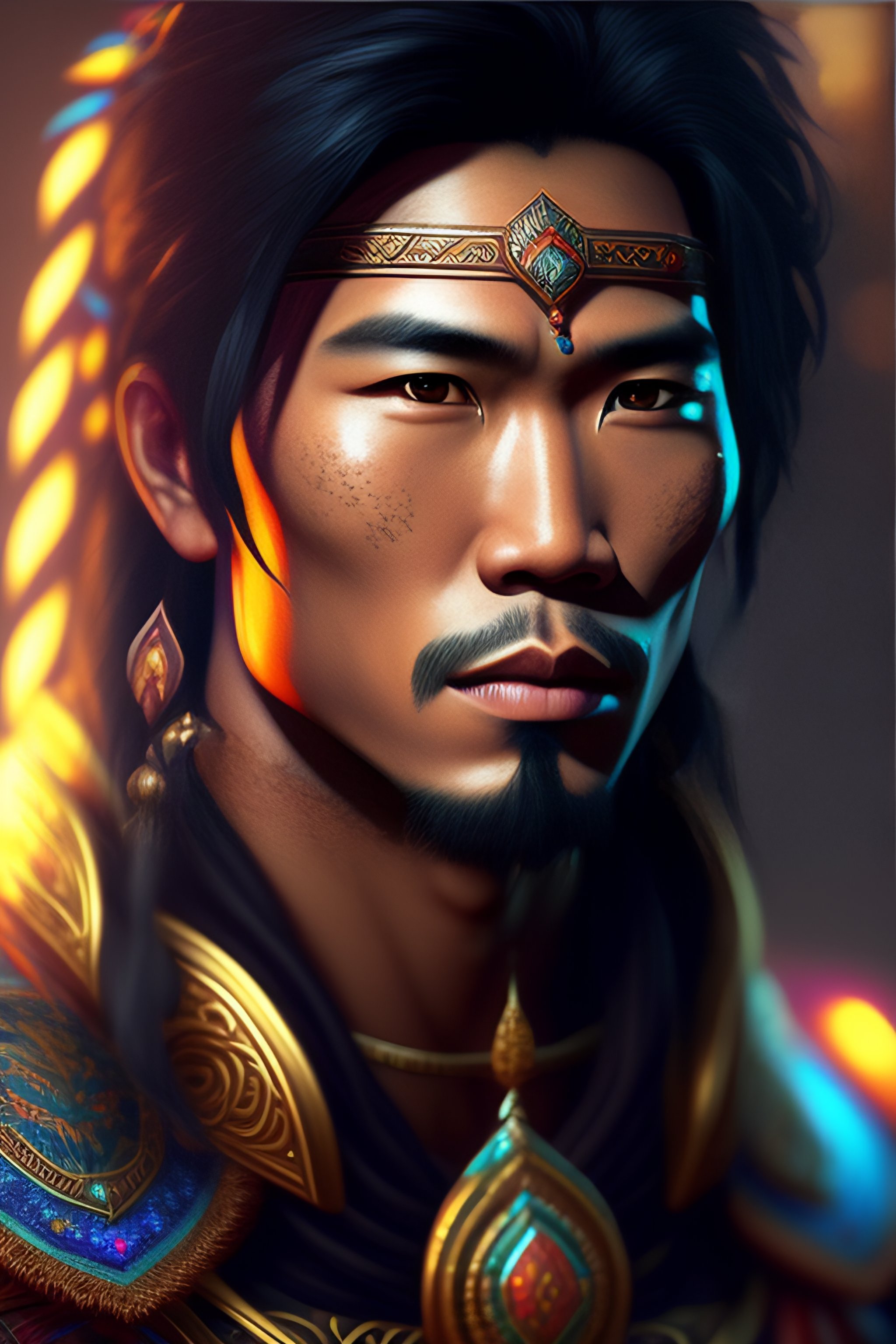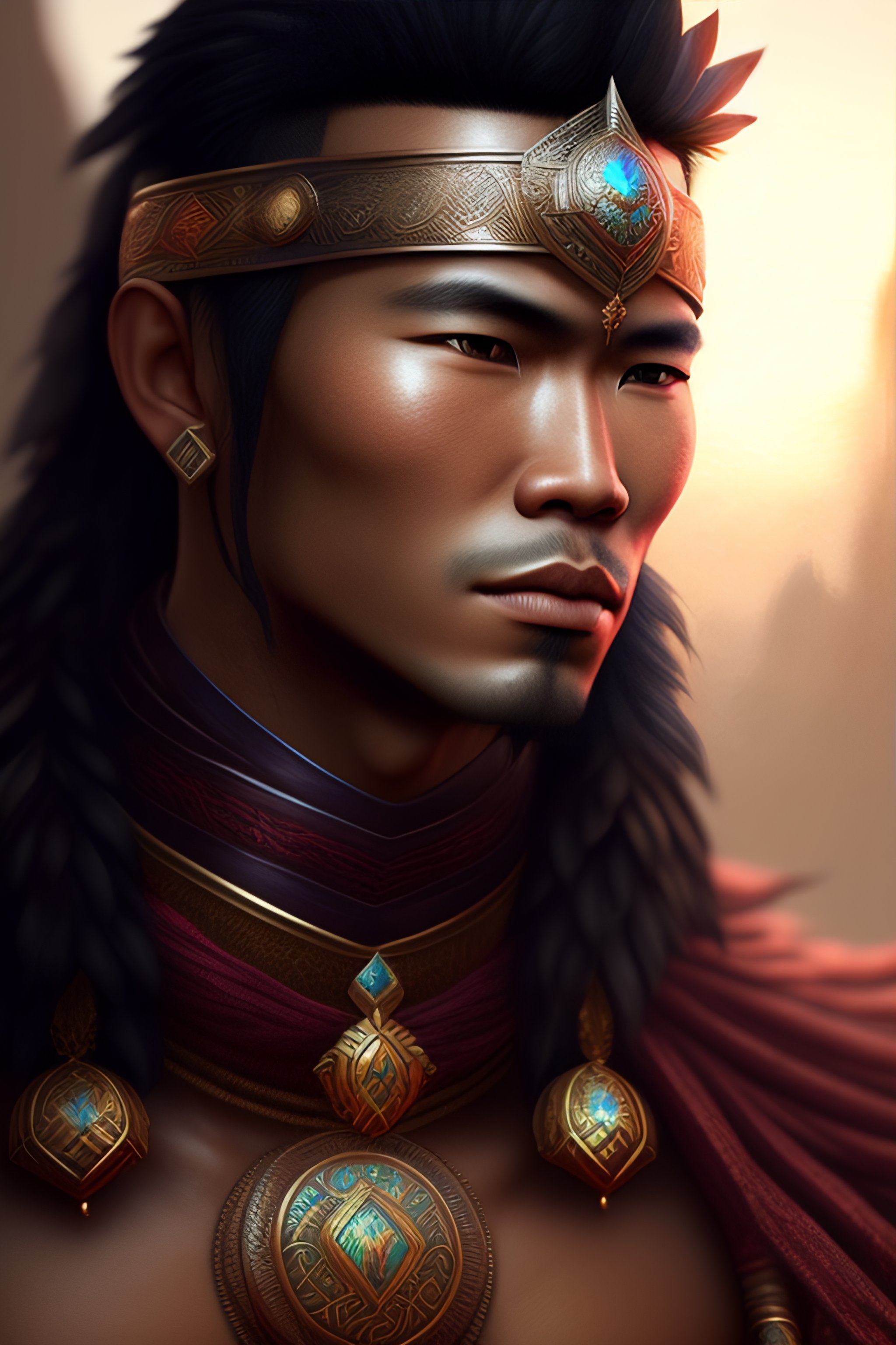 Filipino men, tribe warrior, give inspiration, glow up eyes, epic, fantasy, intricate, hyper detailed, artstation, concept art, smooth, sharp focus, ray tracing, vibrant, photorealistic