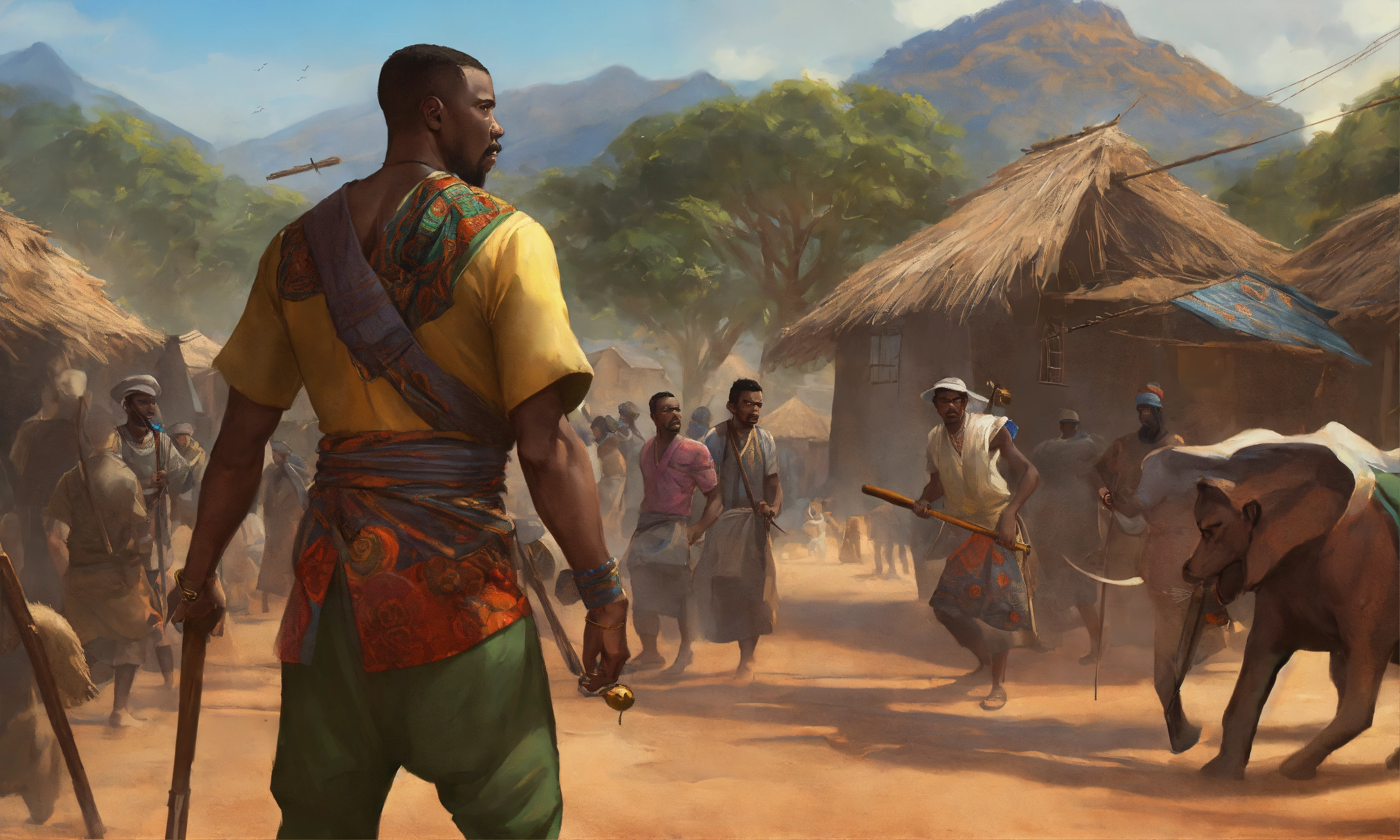 100 angry african villager ready to defend their village against thieves, at nights, highly detailed, smooth, pixar style by tristan eaton stanley artgerm and tom bagshaw, 8k