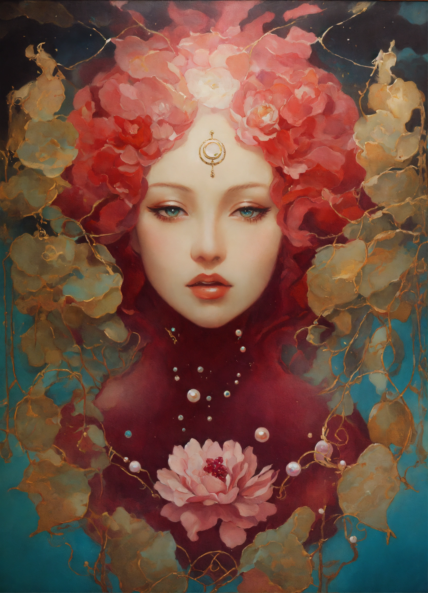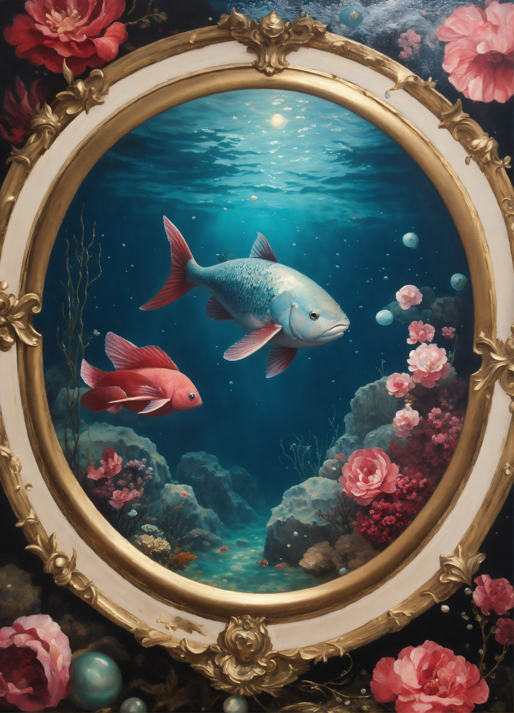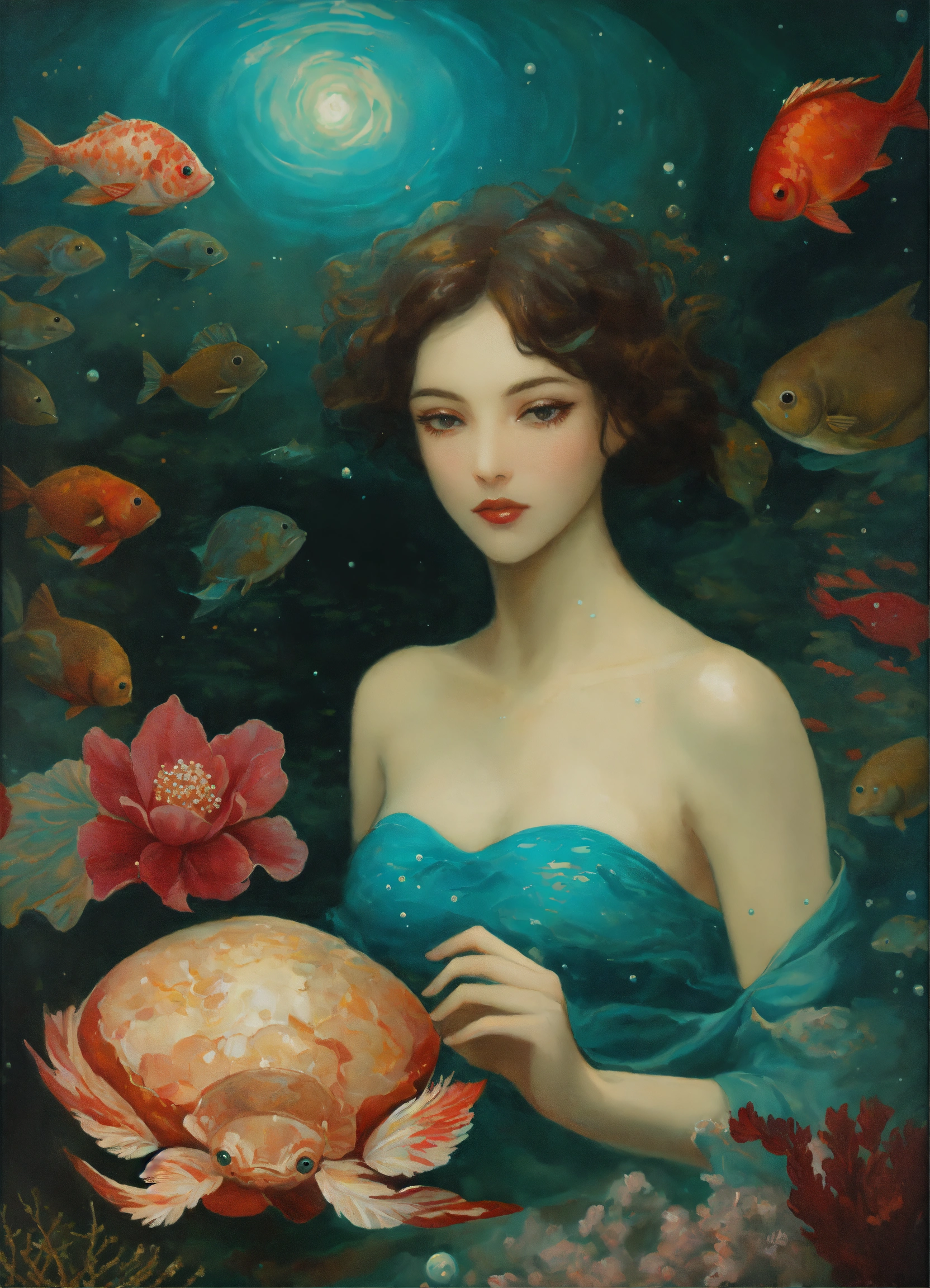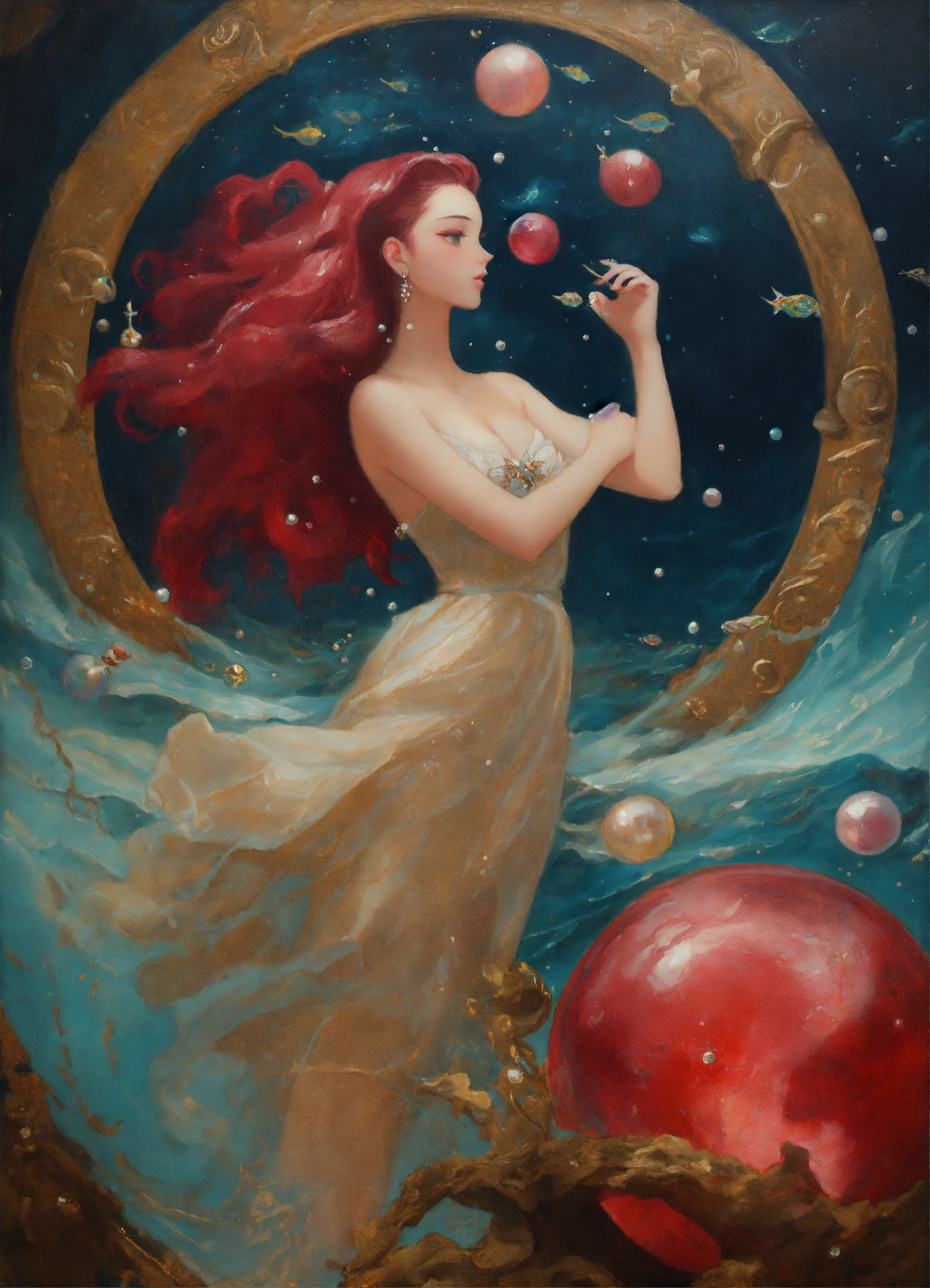 Cancer zodiac sign aquatic abyss aesthetic vintage oil painting ruby and pearl