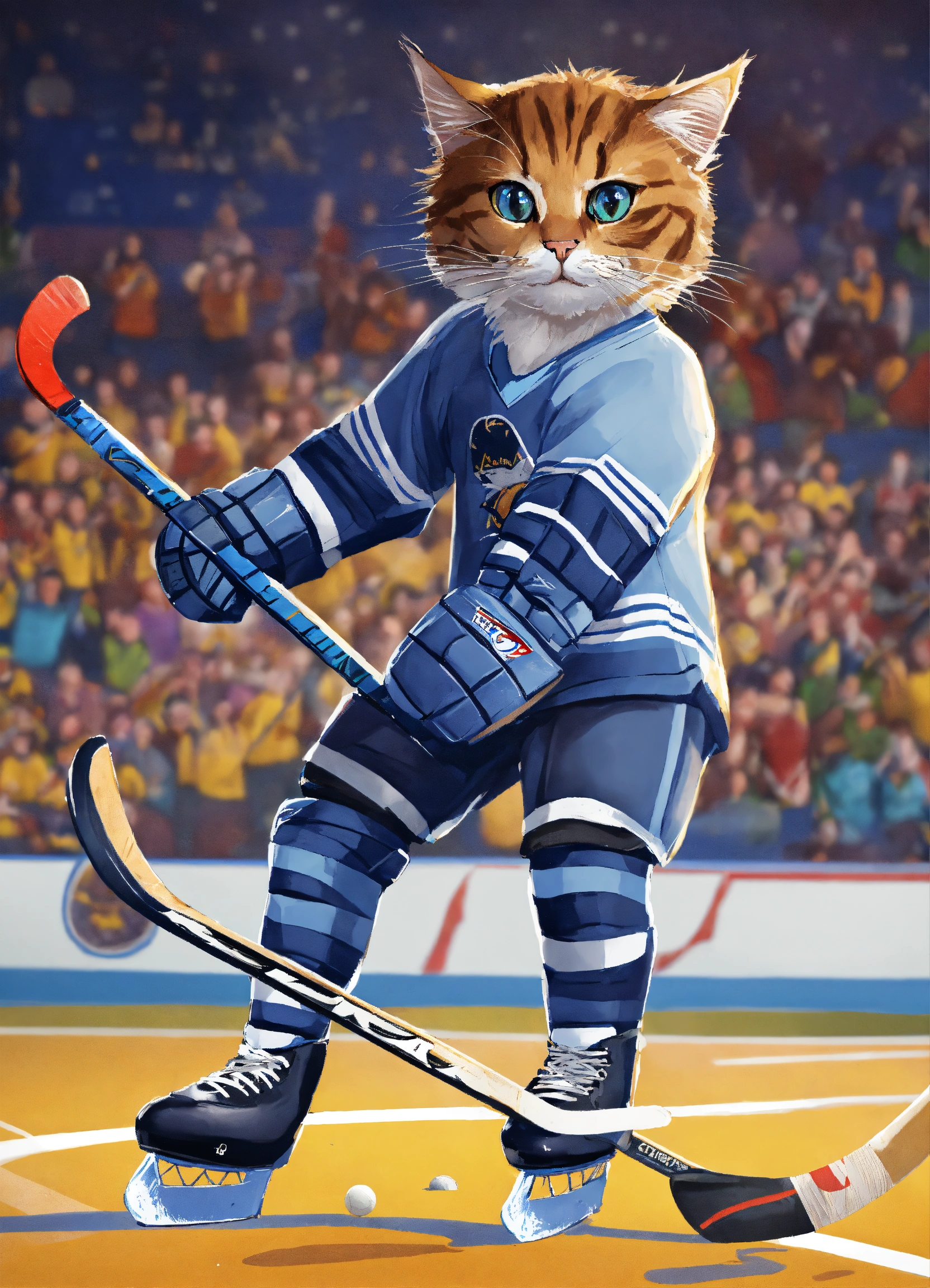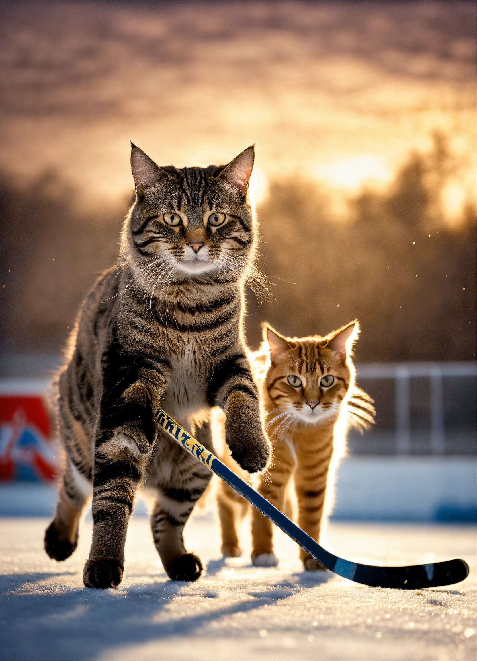 Cats playing hockey