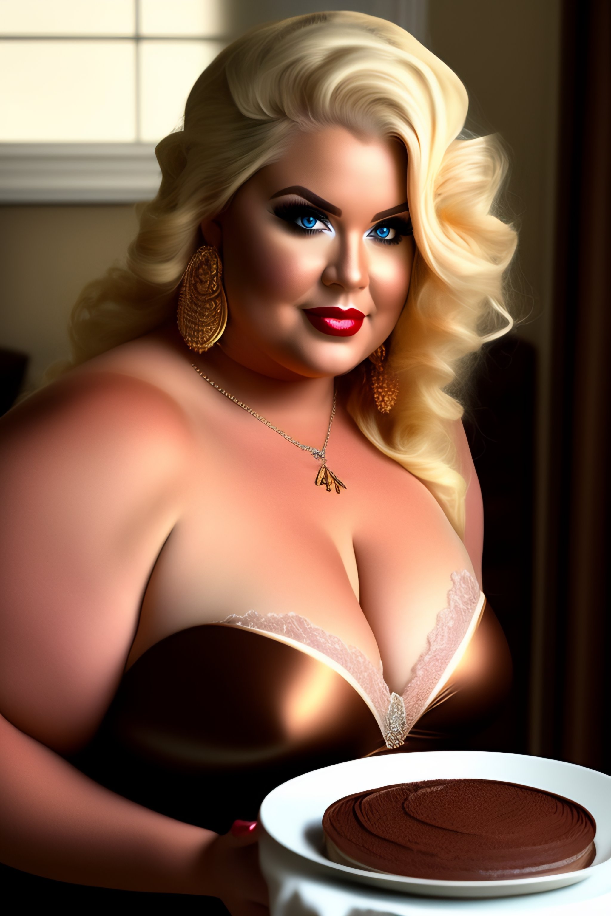 Ssbbw beautiful blonde model perfect face being fed chocolate cake by servants