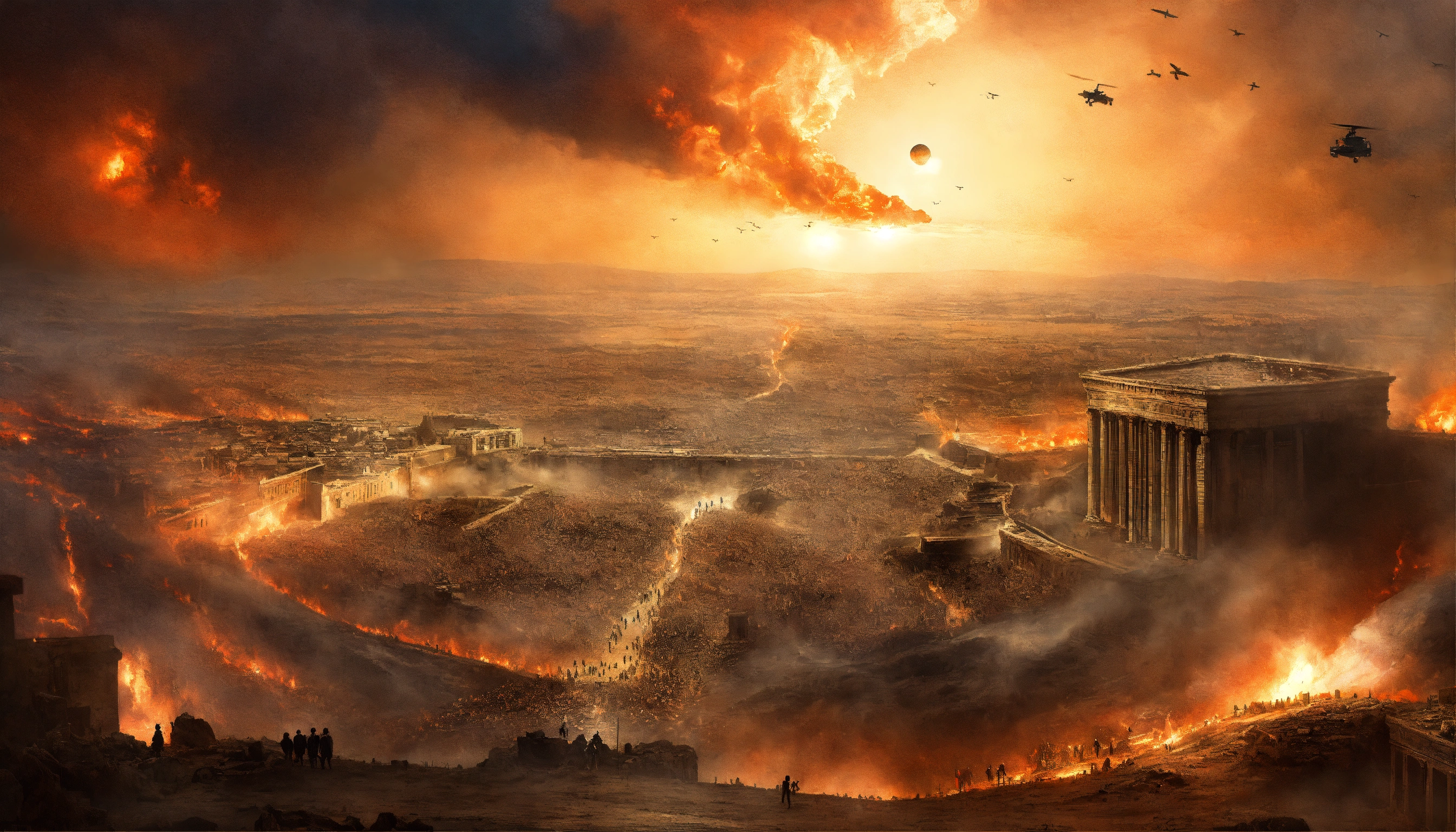 Biblical armageddon of israel, extremely ominous, very creative, divine, highly detailed and realistic, inspired by apollyon