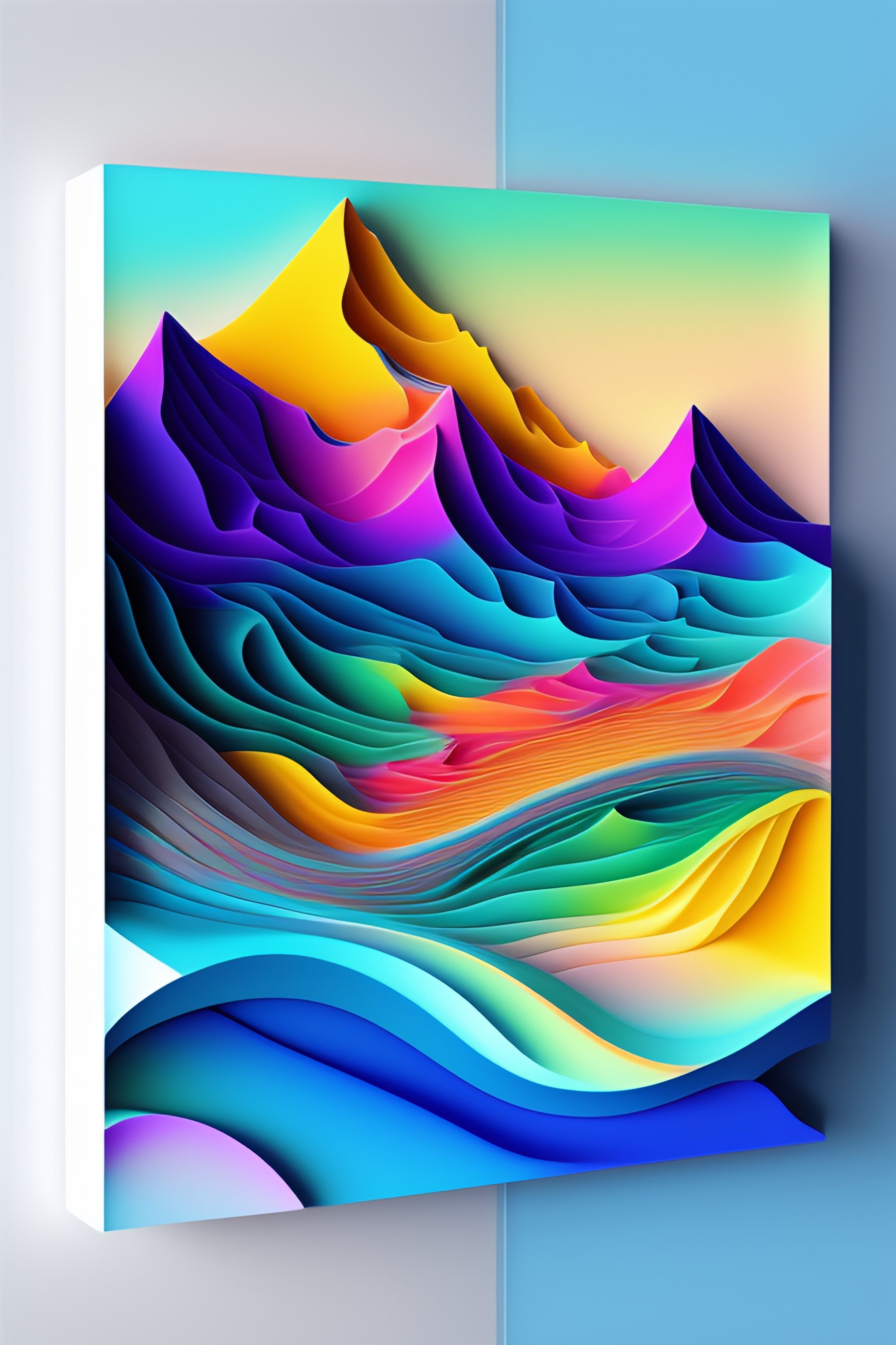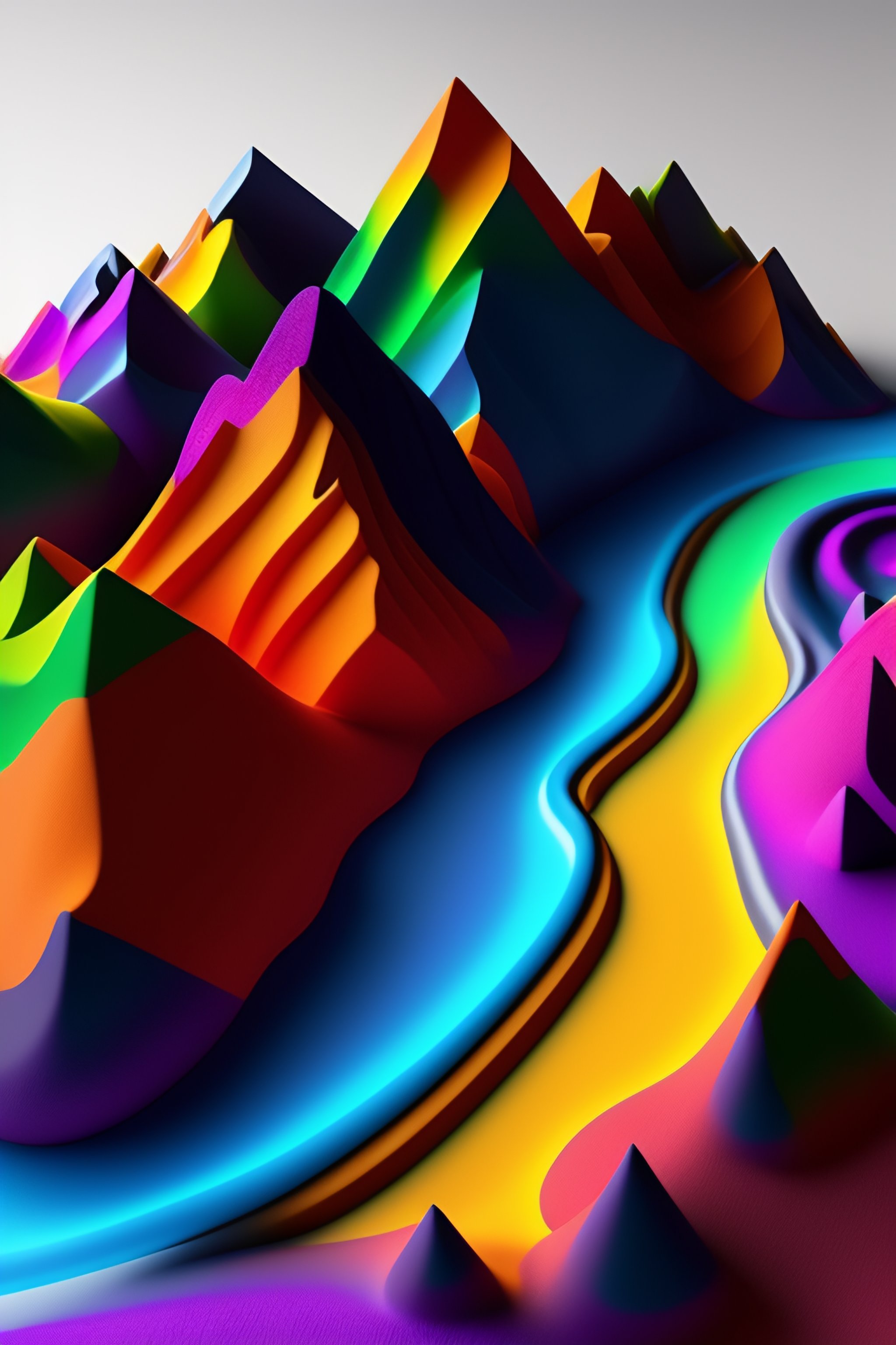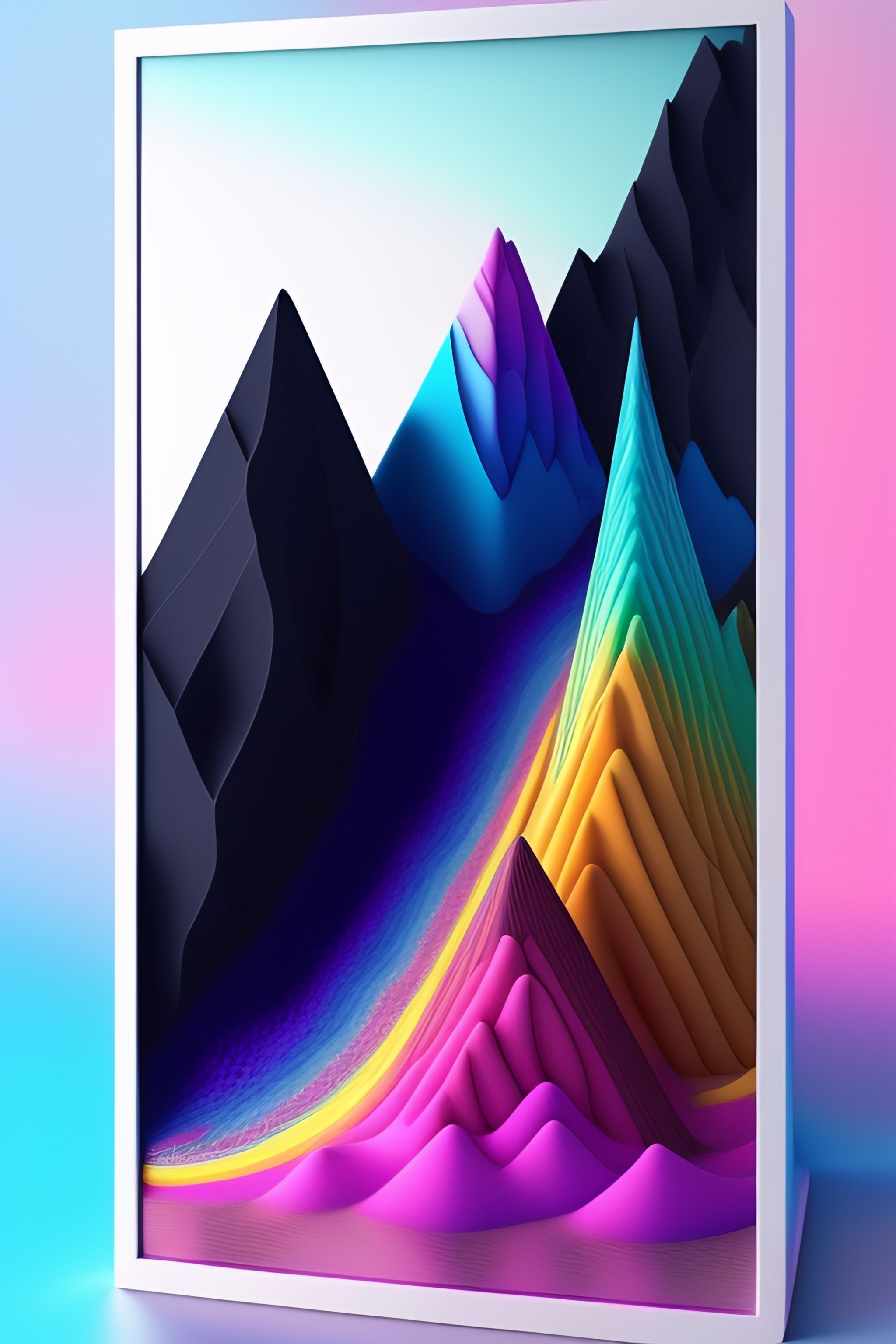 A 3d abstract iridescent topographical terrain with overlayed gridlines and crayon mountains