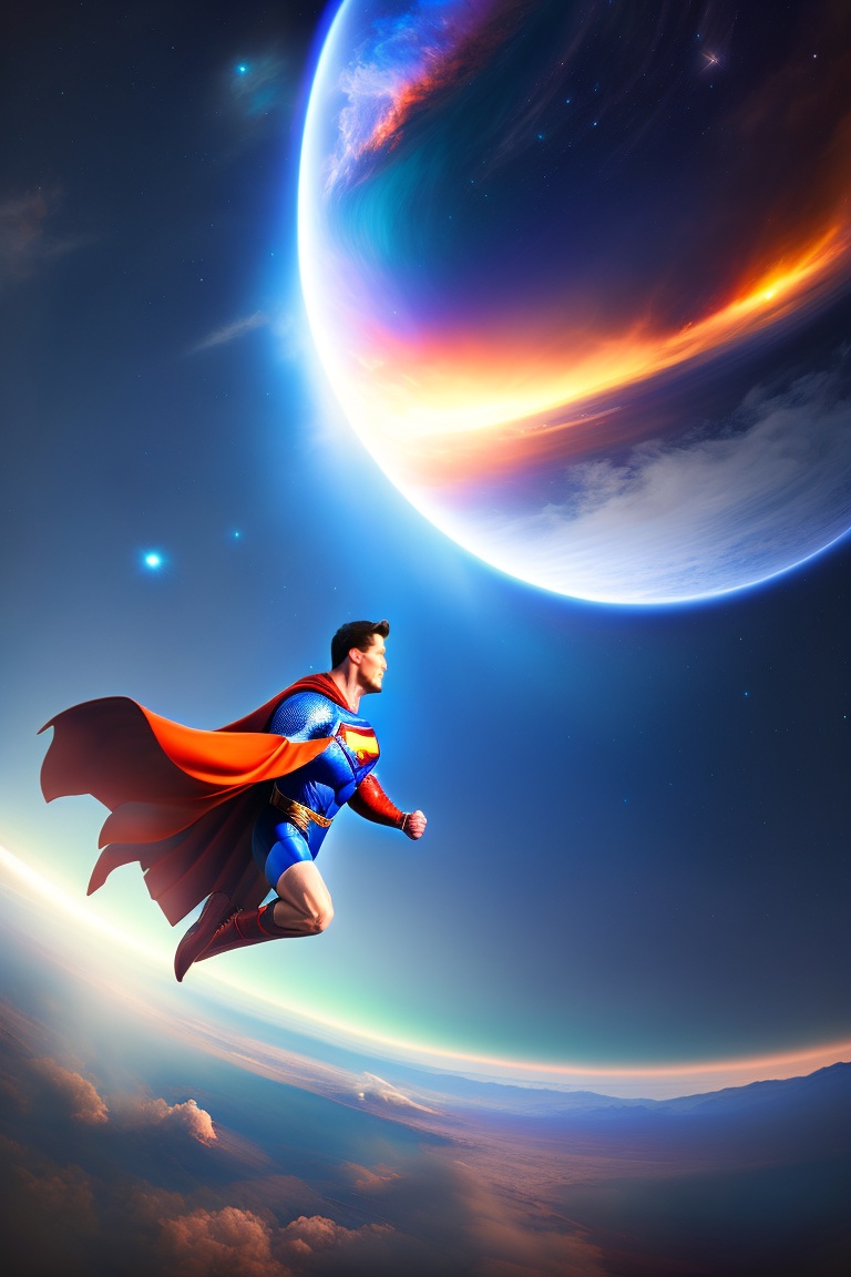 Superman flying in space