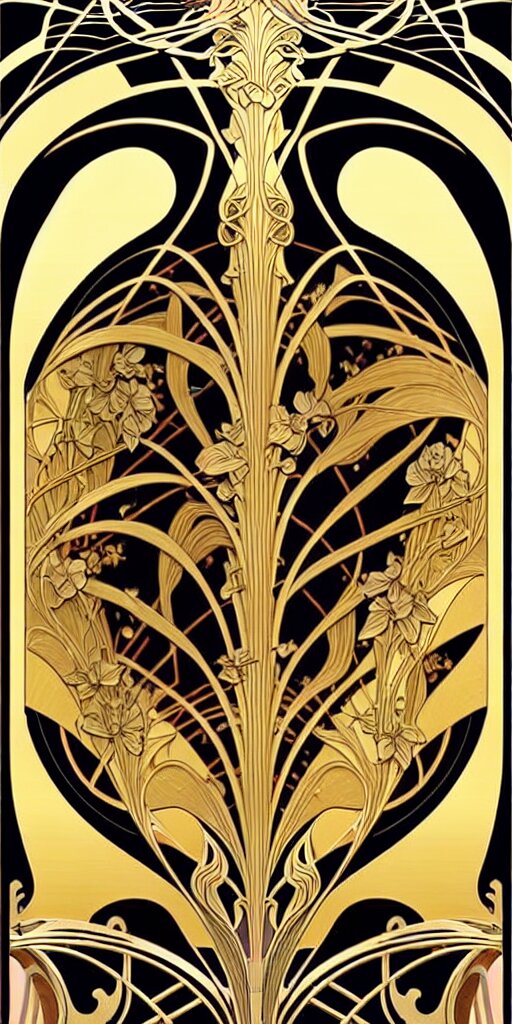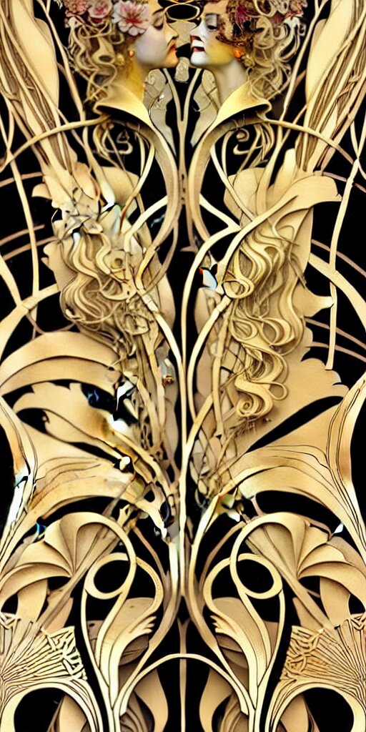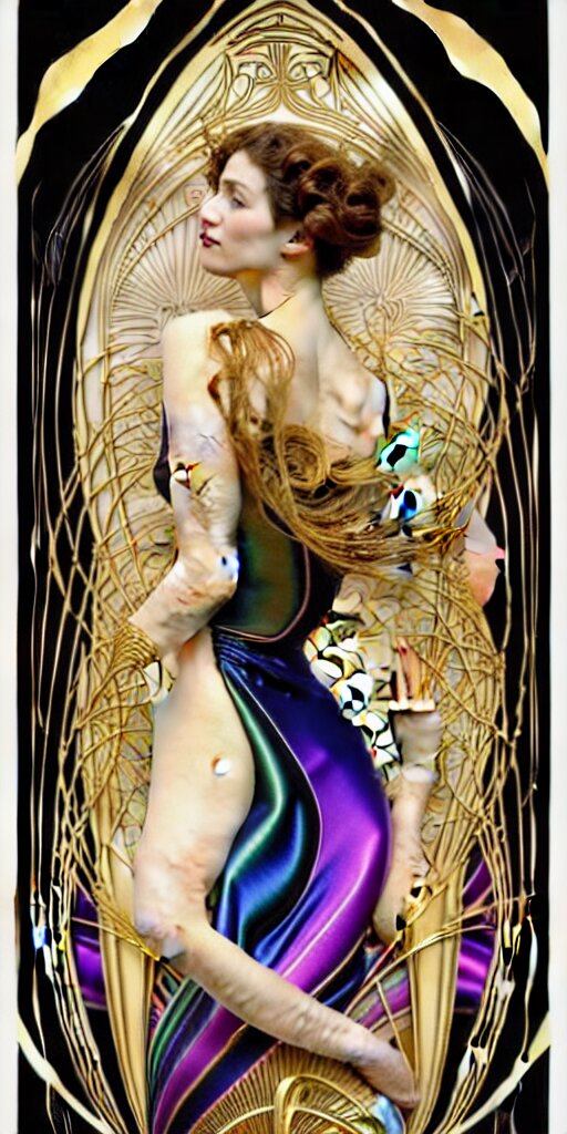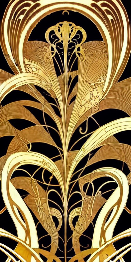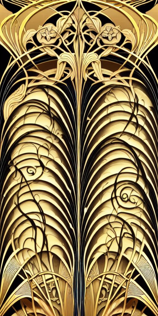 The source of future growth dramatic, elaborate emotive art nouveau styles to emphasise beauty as a transcendental, seamless pattern, symmetrical, large motifs, hyper realistic, 8k image, 3d, supersharp, flowing shiny rainbow satin cloth, art nouveau curves and swirls, glossy iridescent and black and lustrous gold colors, perfect symmetry, iridescent, high definition, sci-fi, octane render in maya and houdini, light, shadows, reflections, photorealistic, masterpiece, smooth gradients, no blur, sharp focus, photorealistic, insanely detailed and intricate, cinematic lighting, octane render, epic scene, 8k