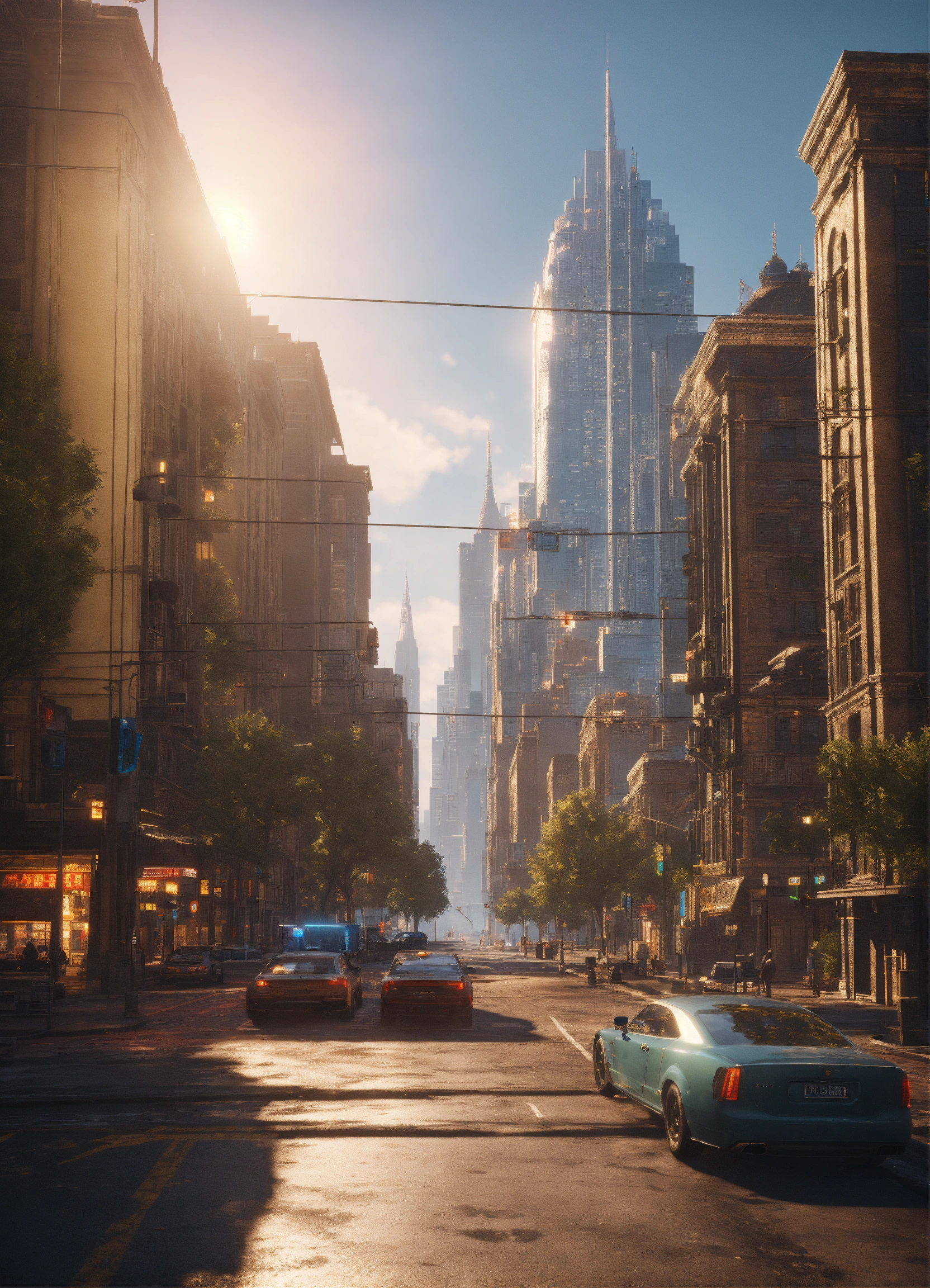 City created by cain, nod, cinematic style, blurred background, high detail, hr, realistic physics, photorealistic, ray tracing, unreal engine, hdr, 8k