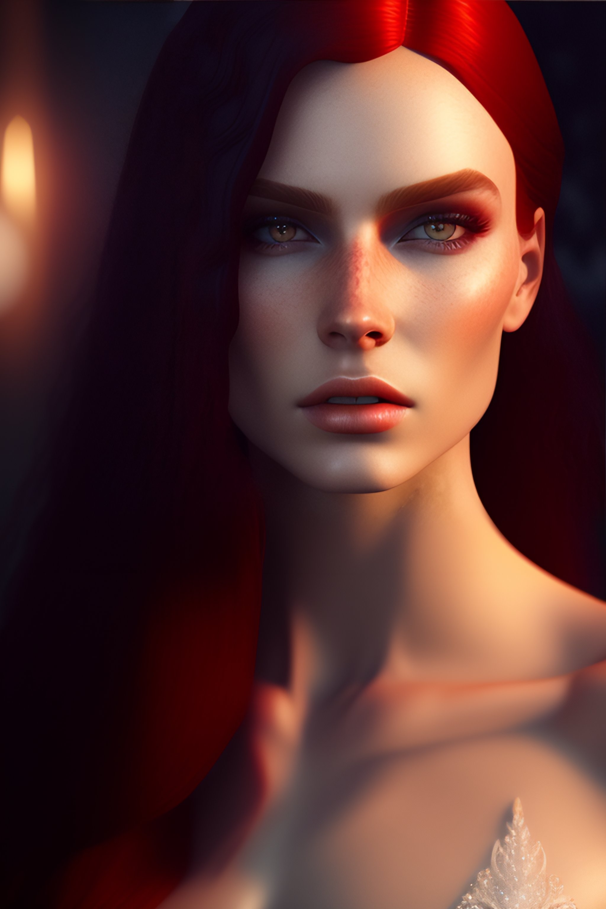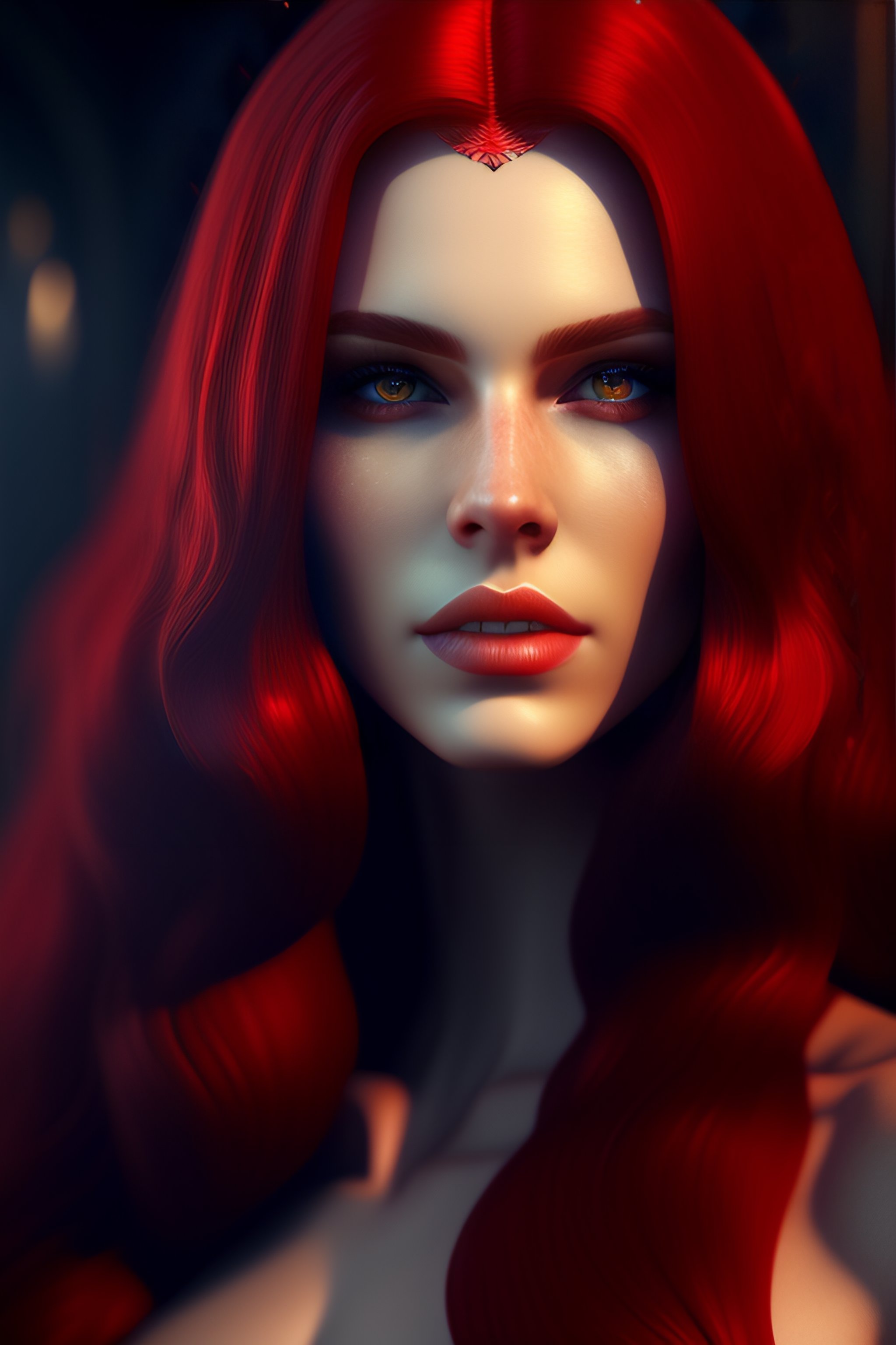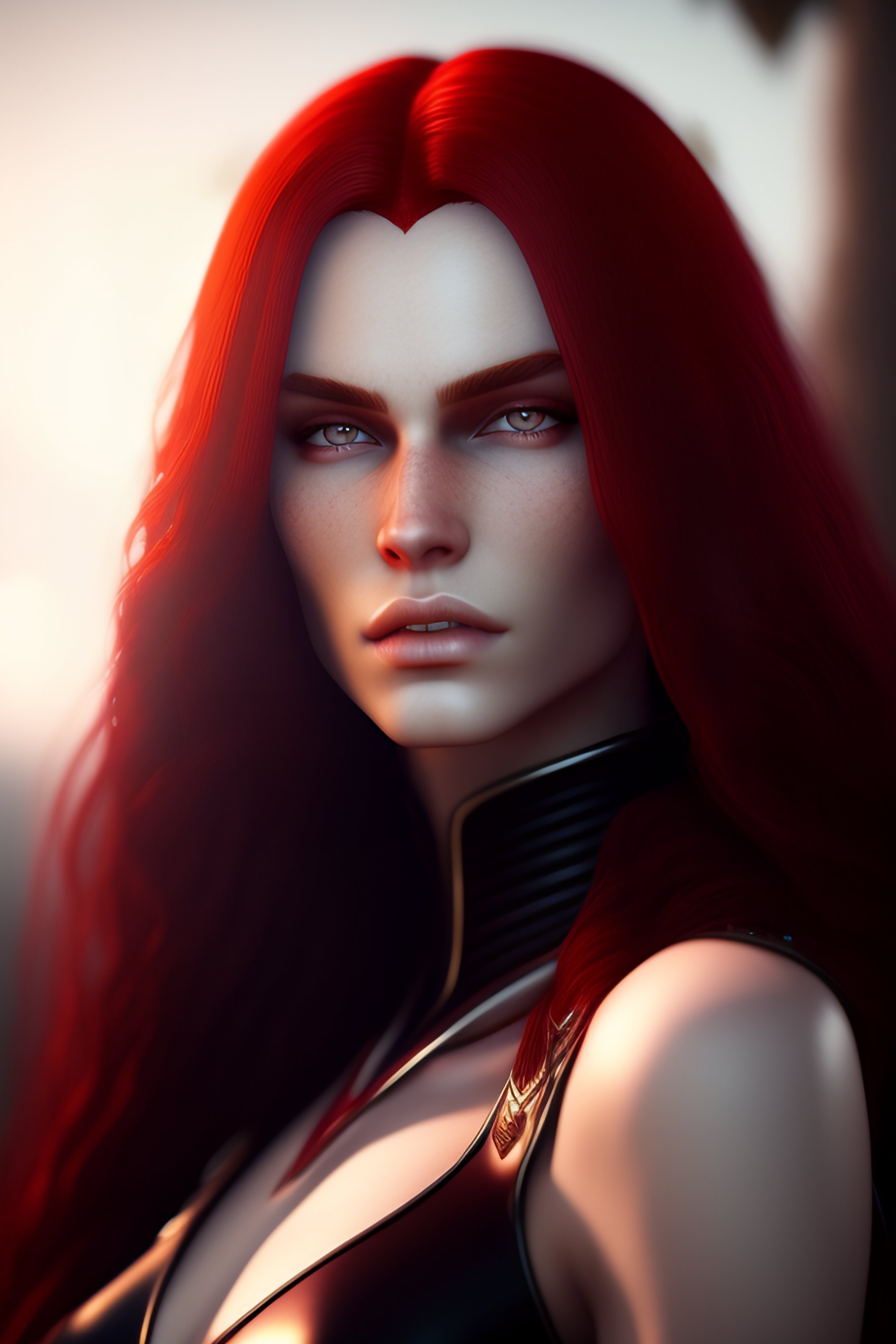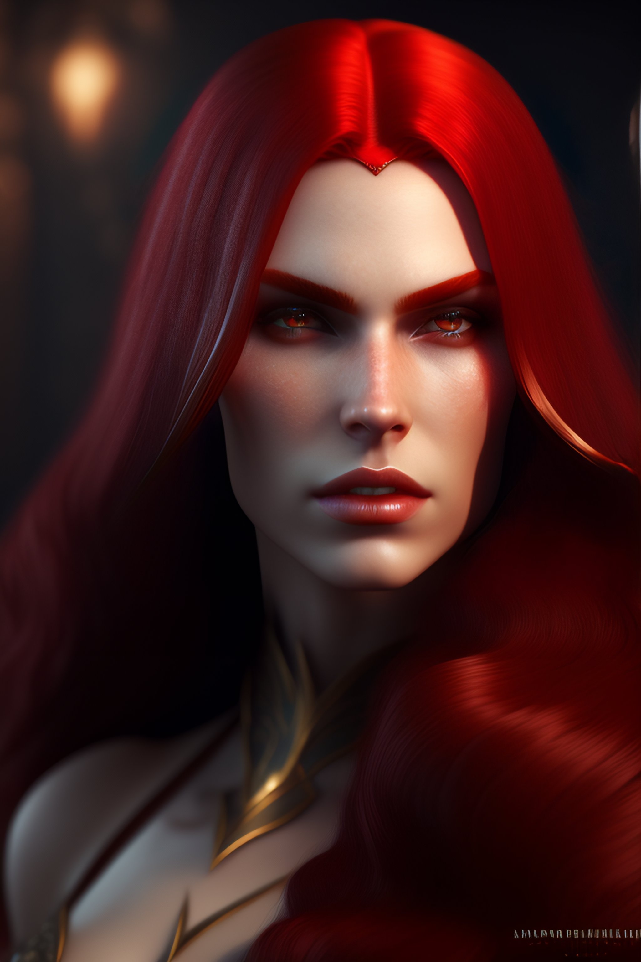 Red long hair, pale skin, white skin vampire, fantasy, sharp focus, digital art, hyper realistic, 8k, unreal engine, highly detailed, hd 4k, dramatic lighting, trending on artstation