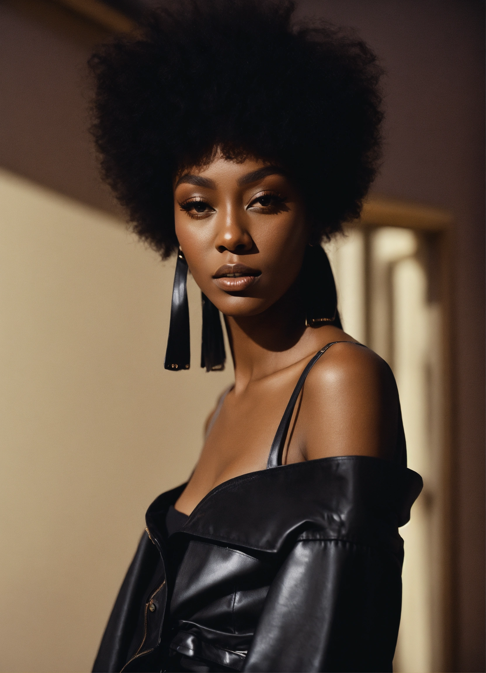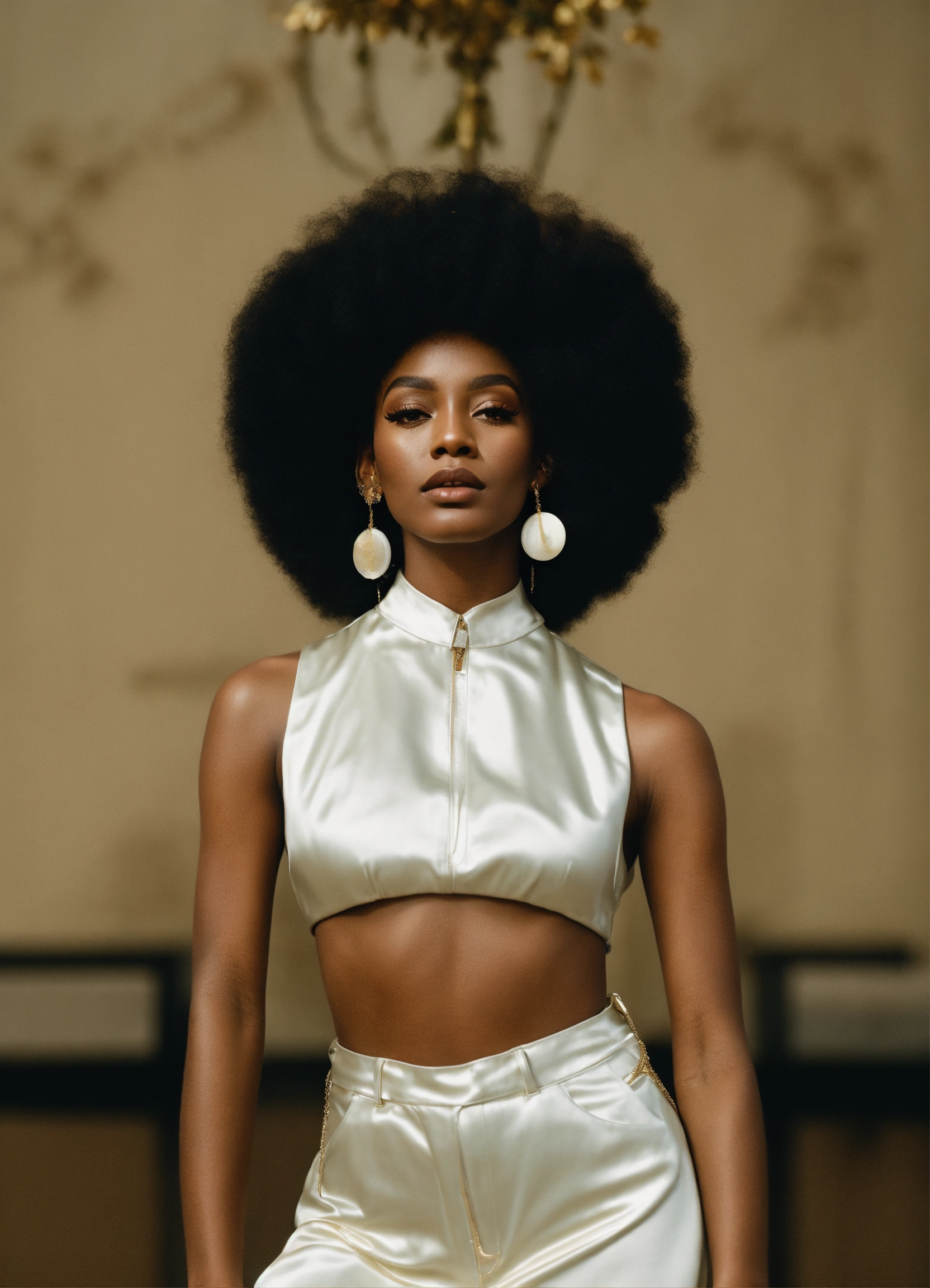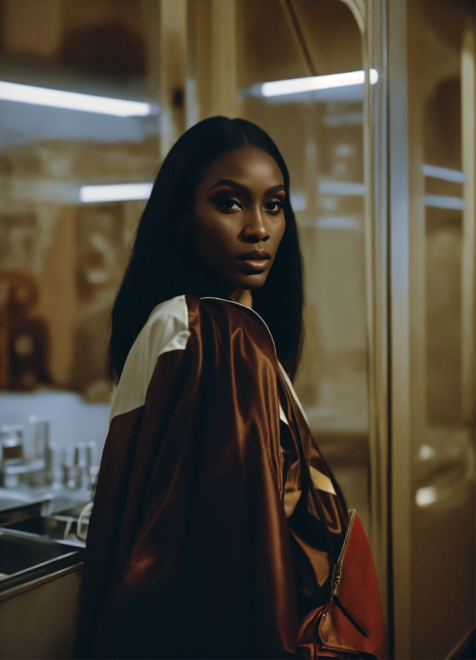 Donyale luna inspired black woman, size 12, 8k resolution, hyper realistic, day, 35mm film, editorial, high fashion, 2023, off white by virgil abloh