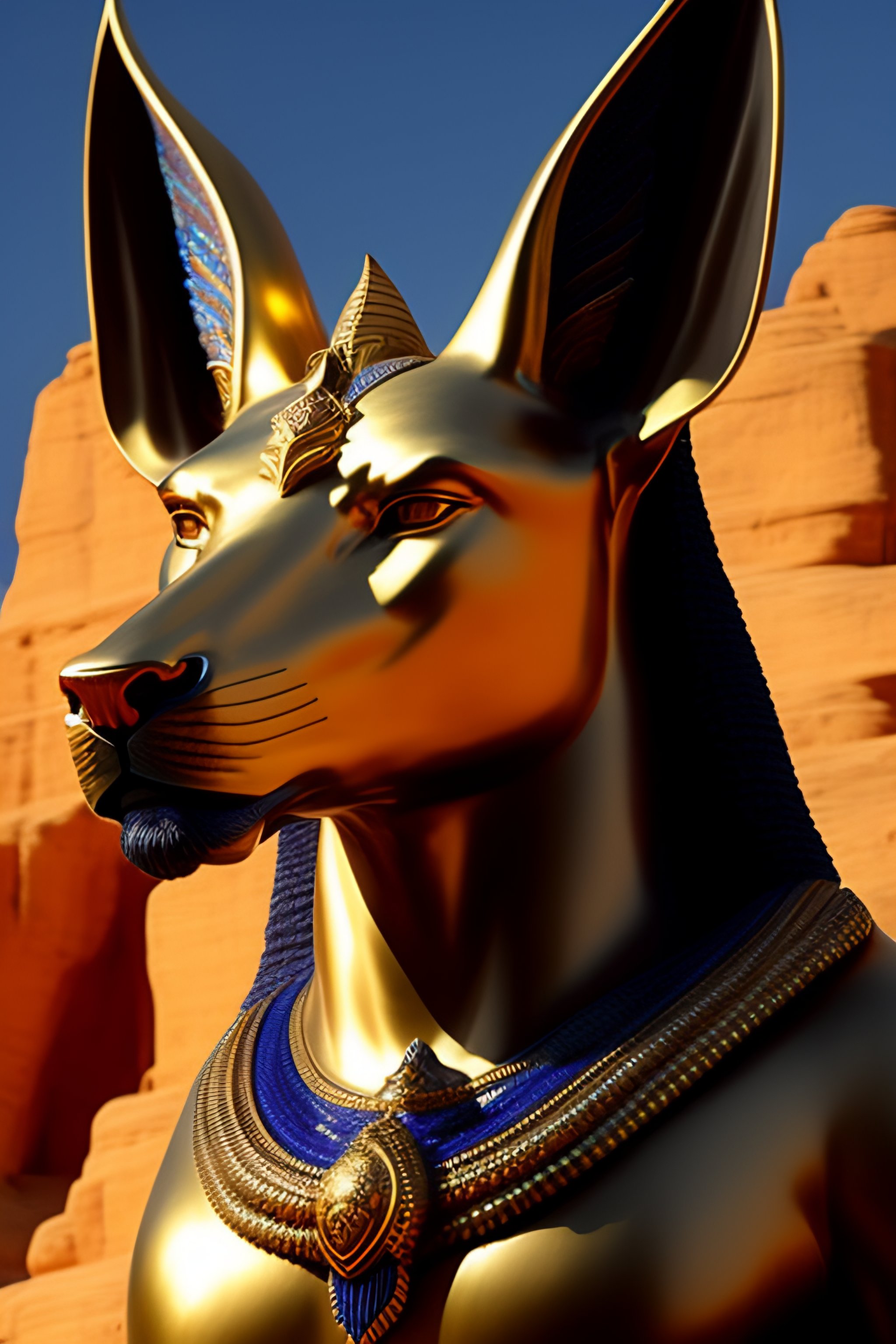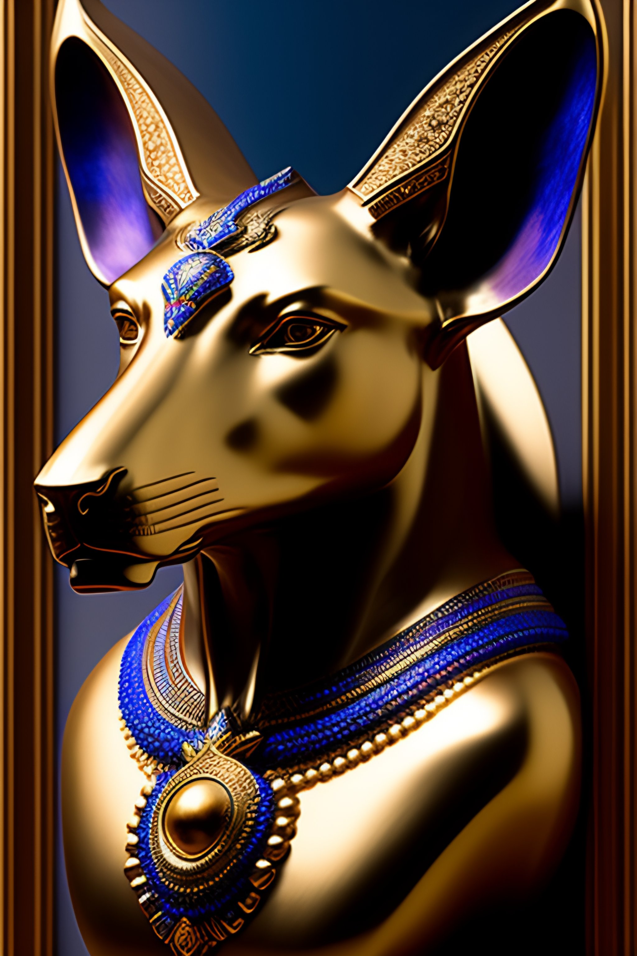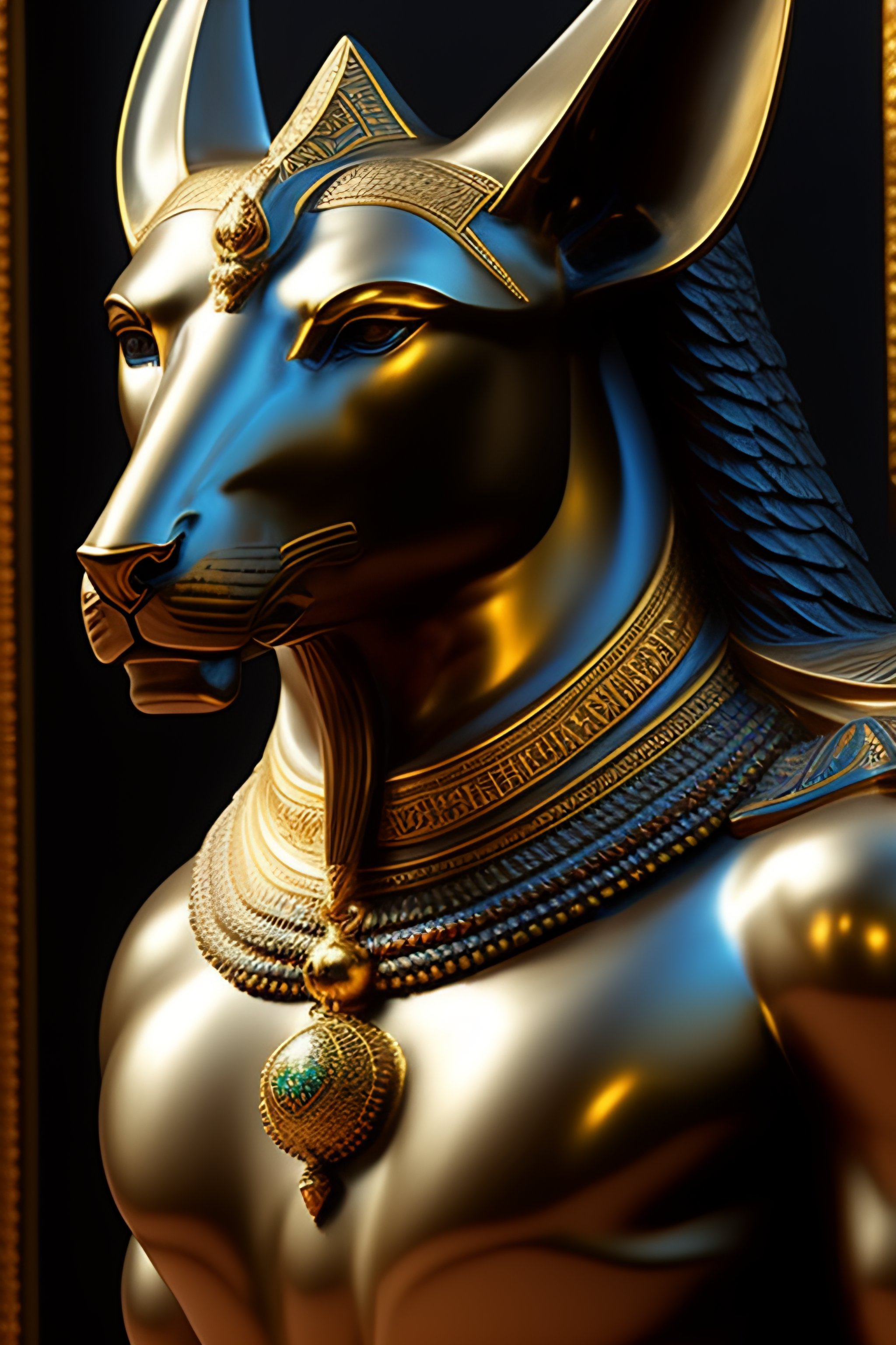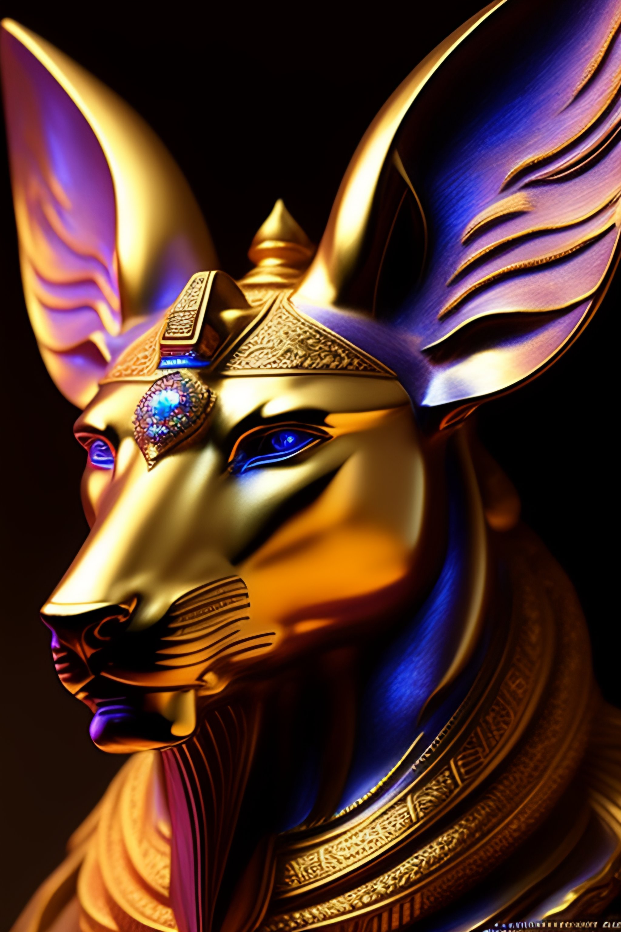 Masterpiece sculpture of an ornate bejeweled anubis head, by annie swynnerton and diego rivera and nicholas roerich and jean delville, symbolist, dramatic lighting, god rays, elaborate geometric ornament, art brut, rich colors, smooth, sharp focus, extremely detailed, adolf wolfli and donato giancola