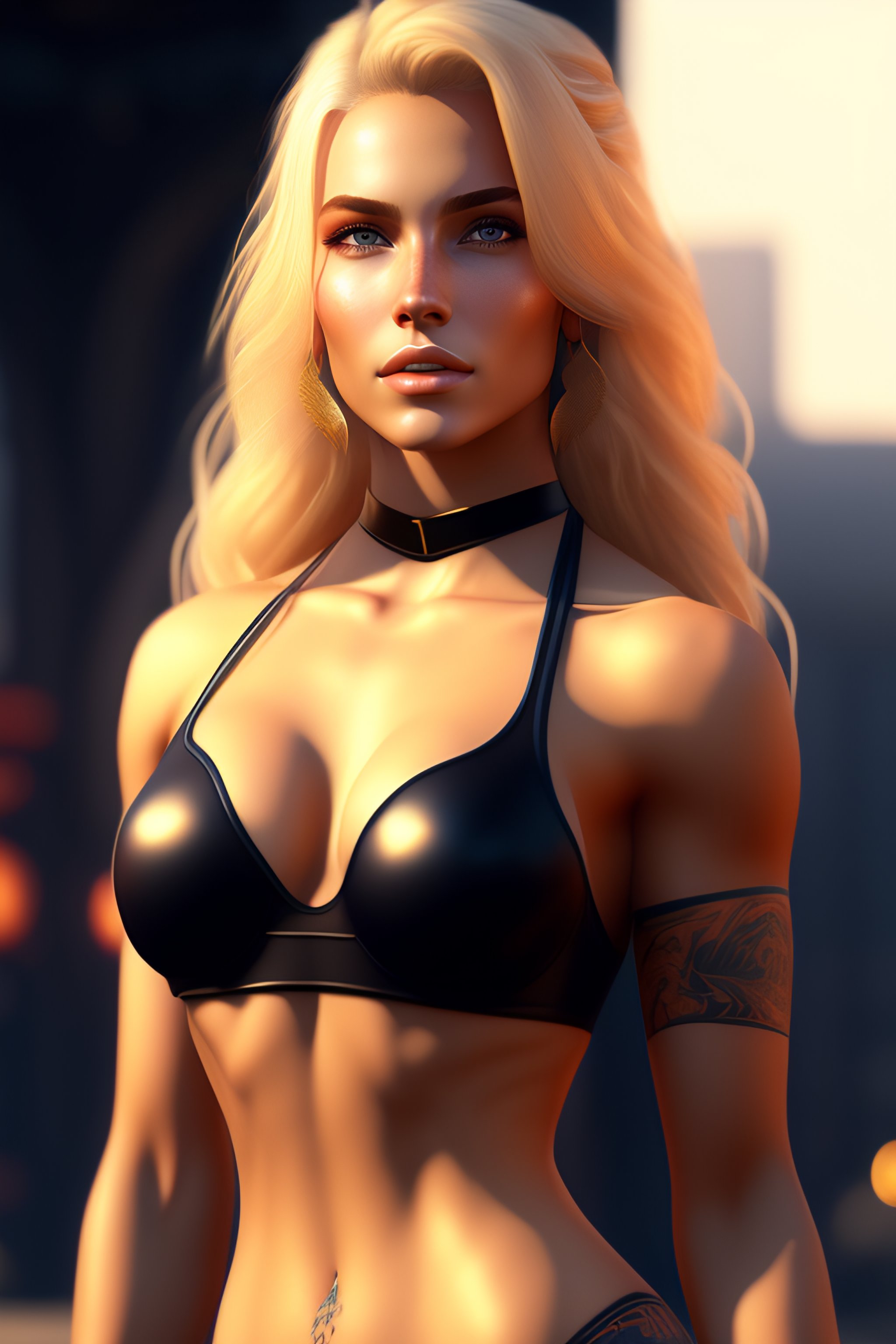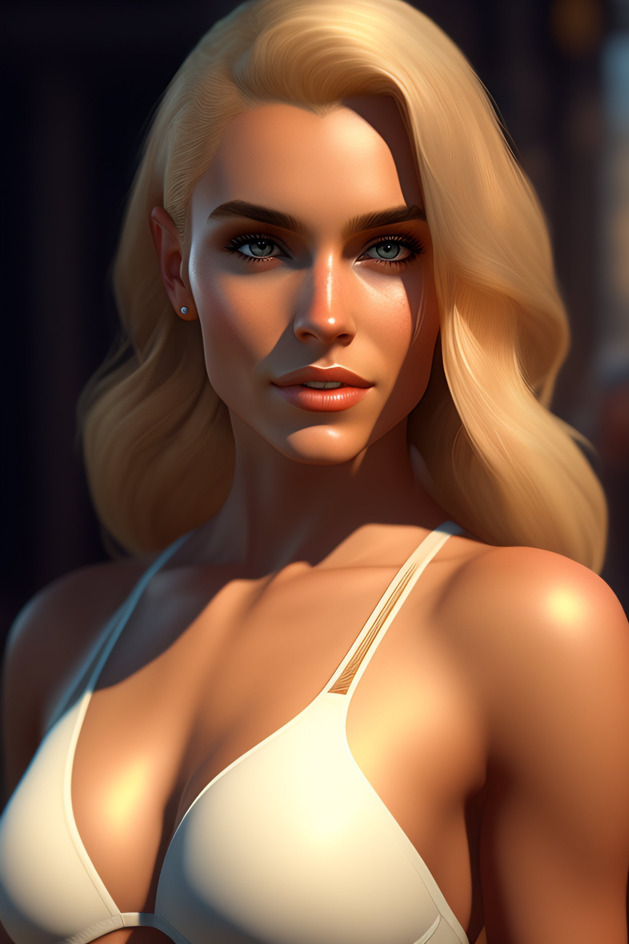 Beautiful girl with blonde hair in hot bra, character portrait, james gurney, character concept style trending on artstation, detailed face, concept art, detailed, octane render cinematic, photo-realistic, 8k, high detailed