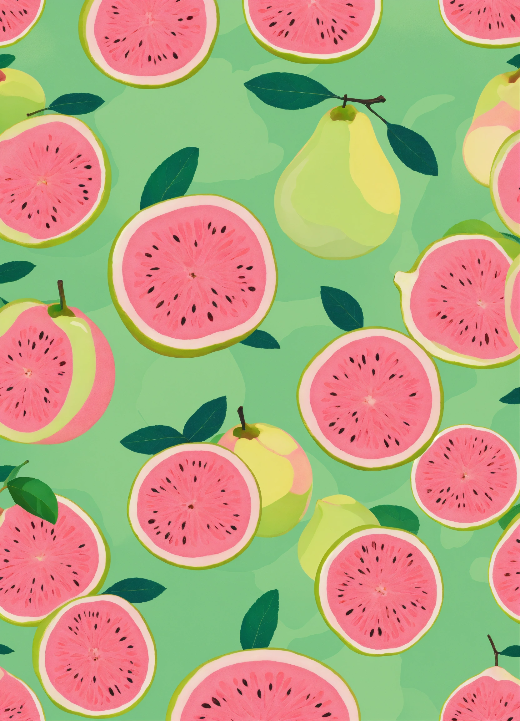 The pastel tones of guava fruit image intertwined seamlessly with waves, creates minimalism enhancing modern graphic design, graphic design pastel tones style