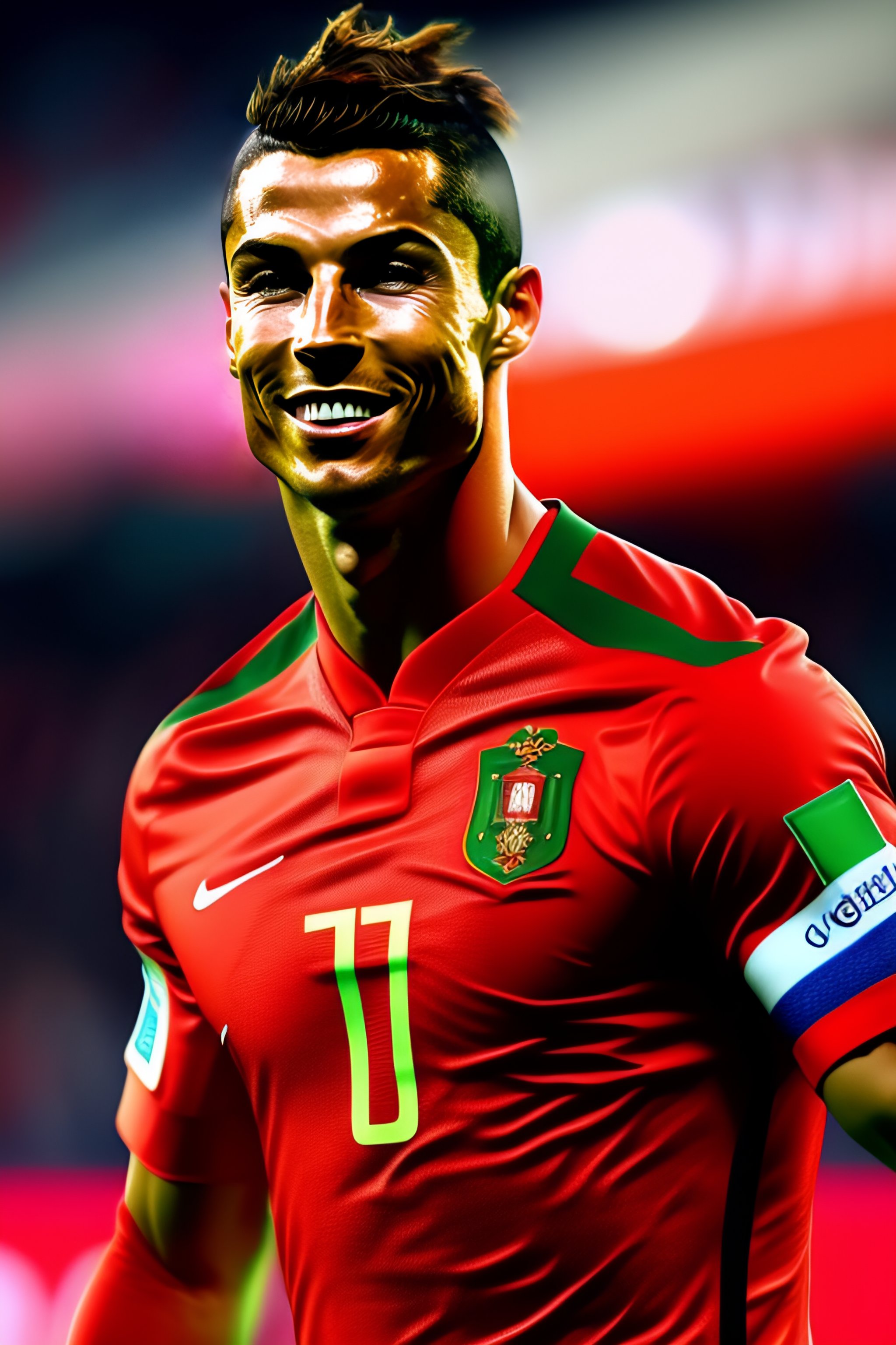 Photorealistic portrait of cristiano ronaldo wearing portugal shirt