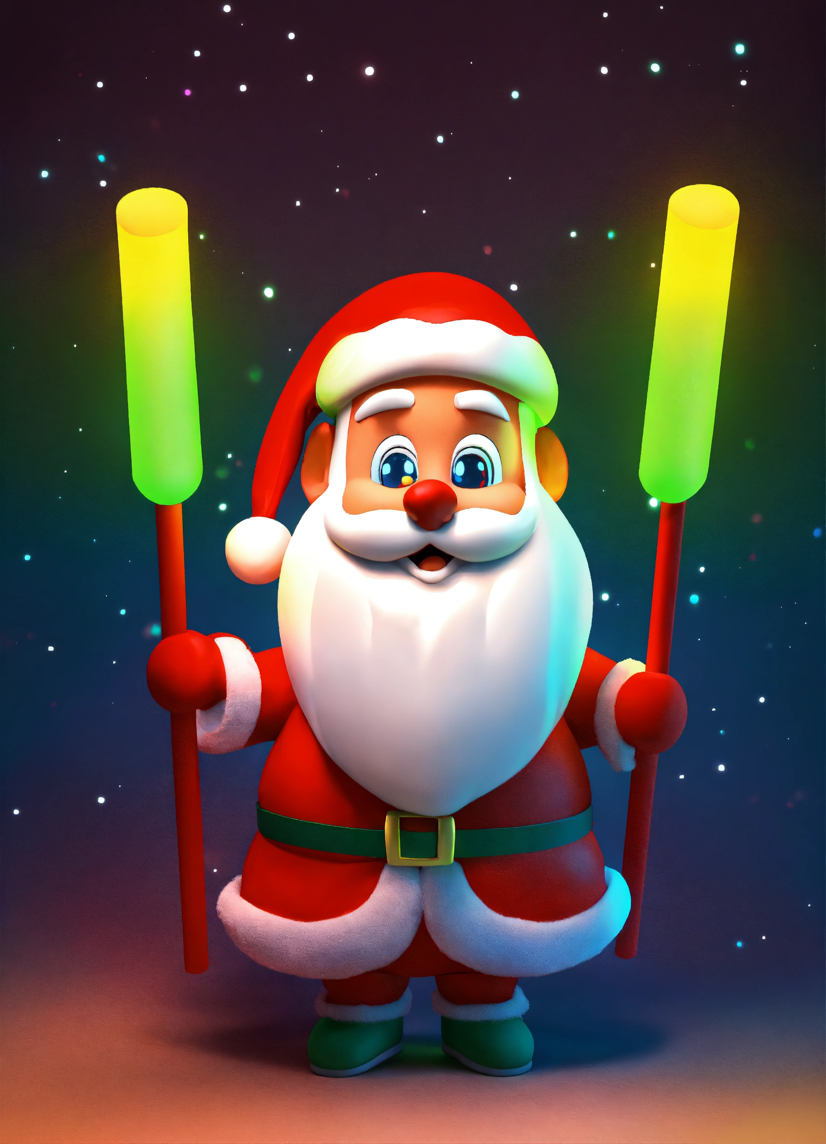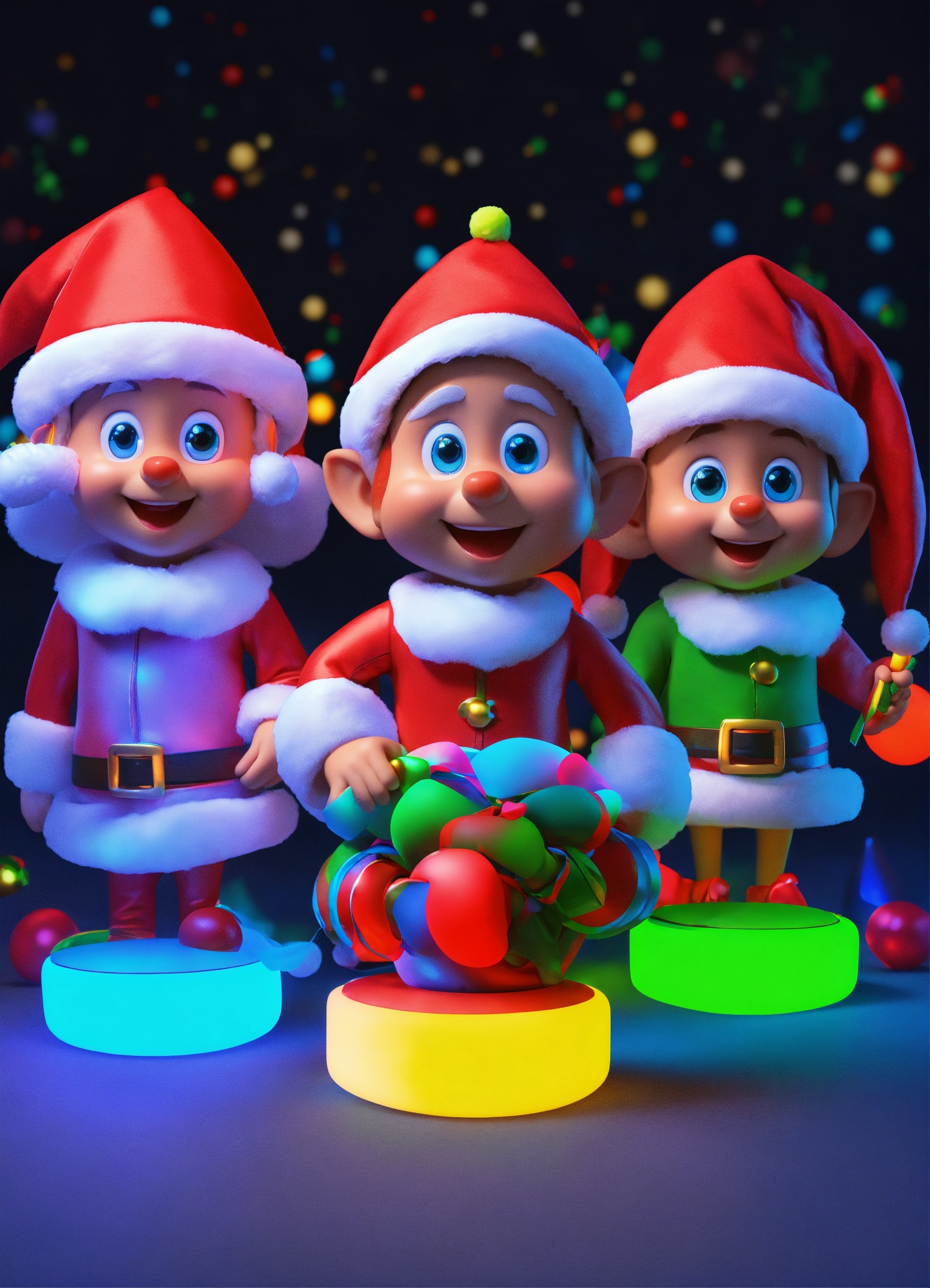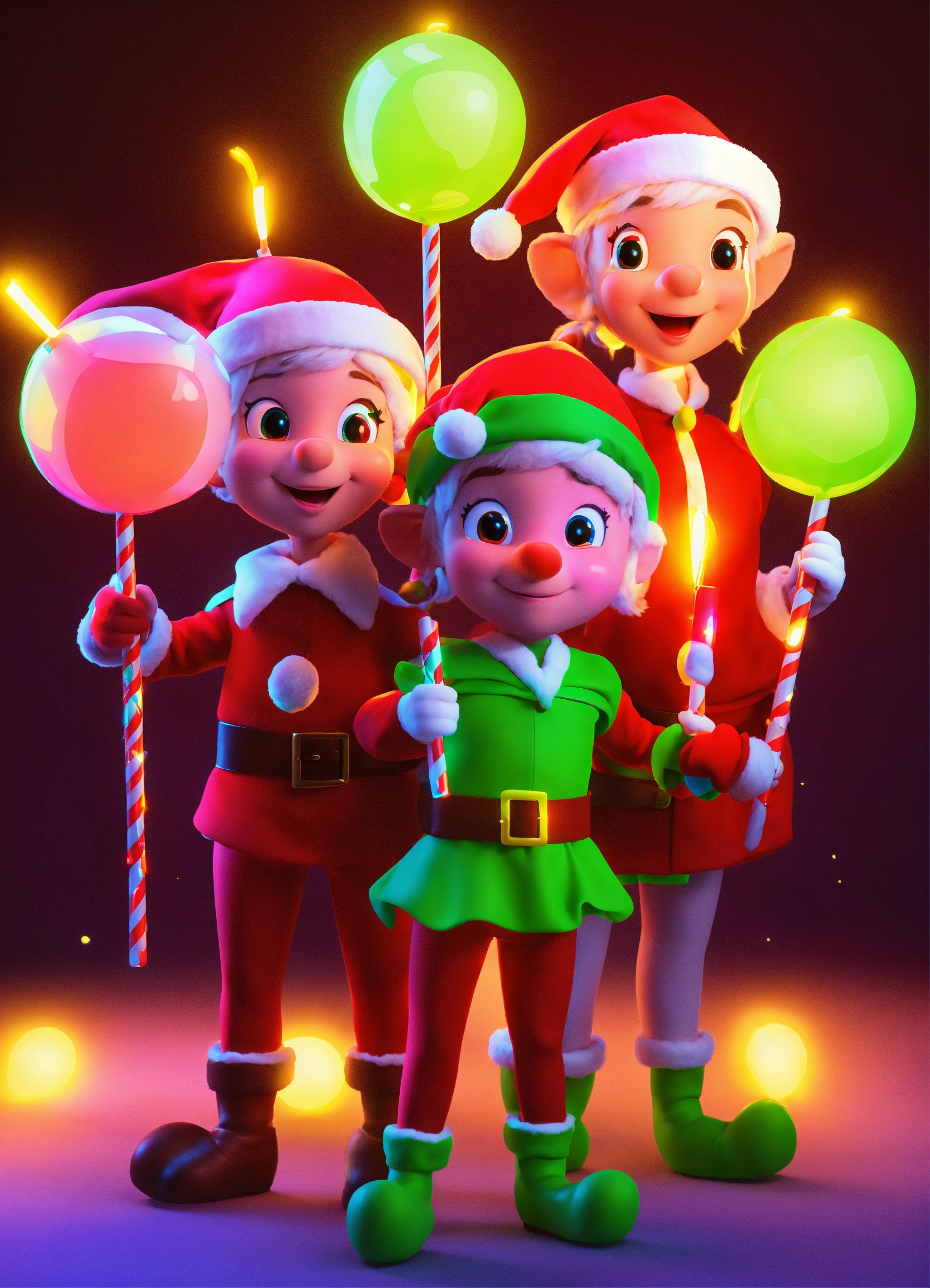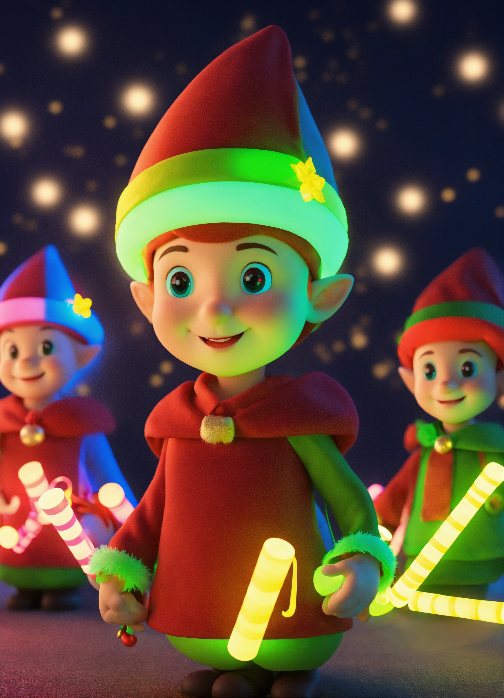Santa elves with glow sticks group 3d cartoon