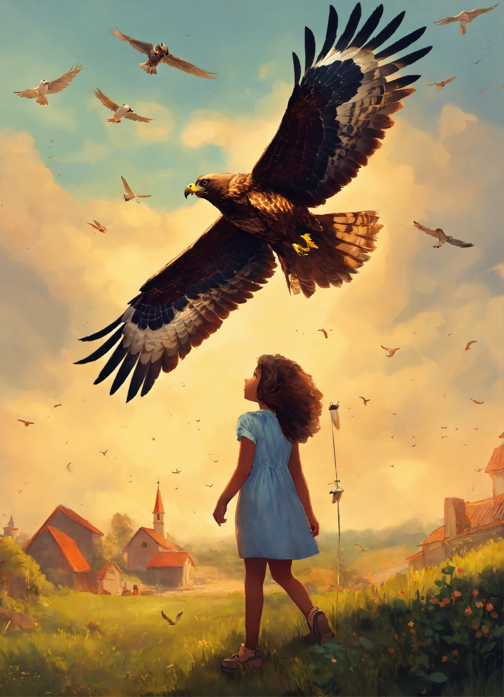 One day alinha clara was sparking in the yard and saw a fierce and scary hawk flying low in the sky