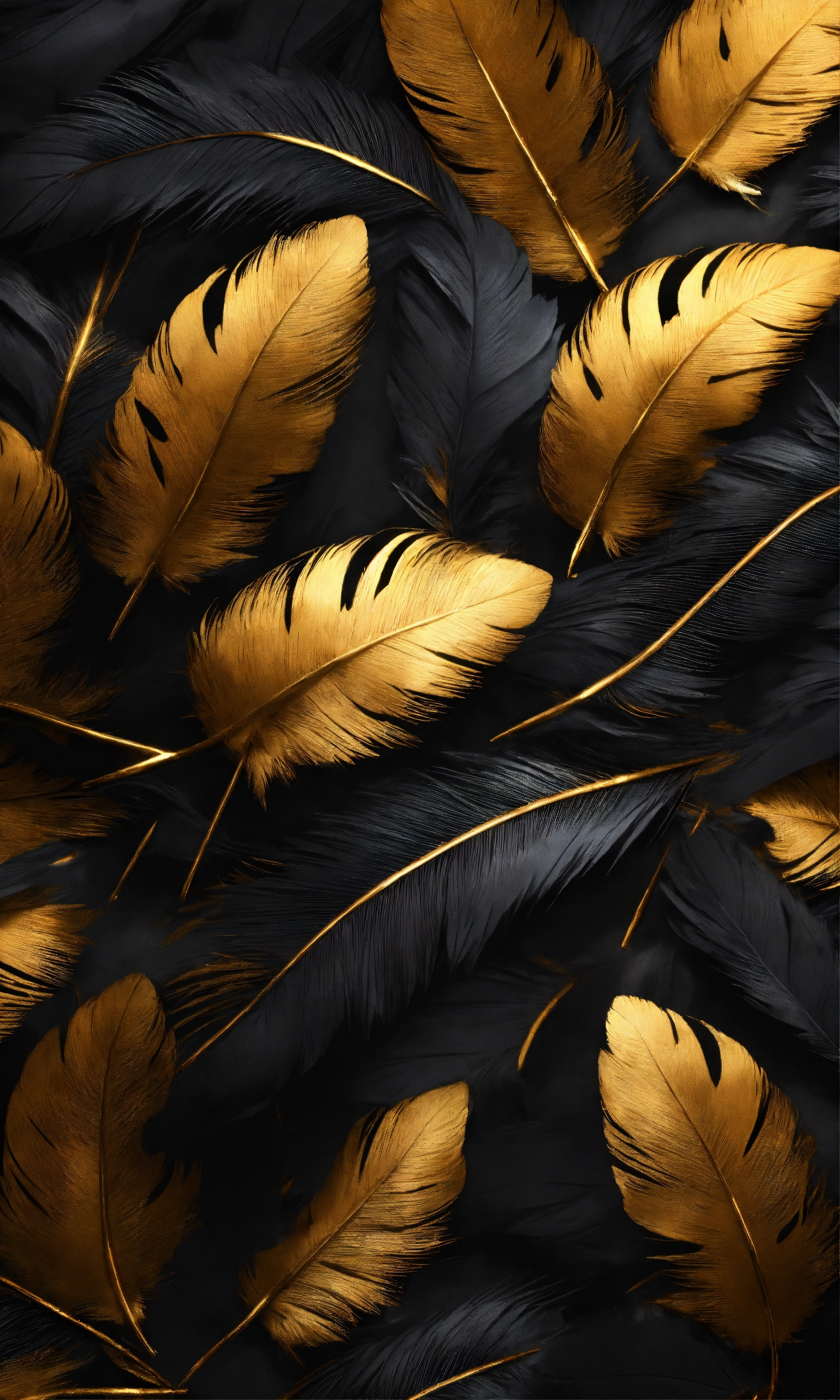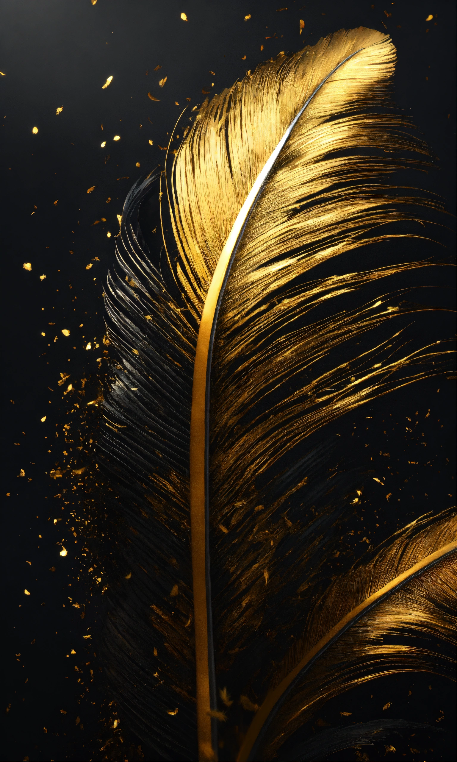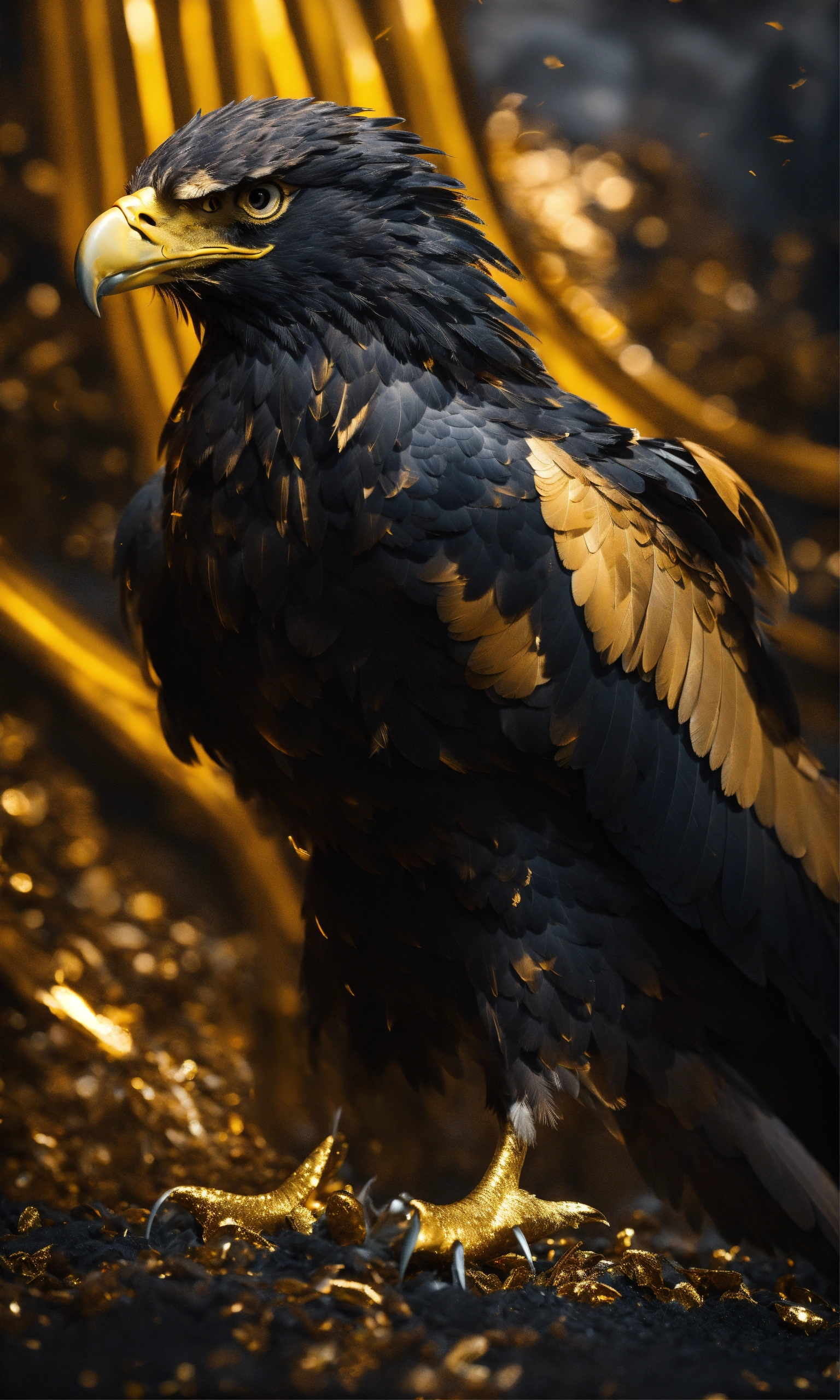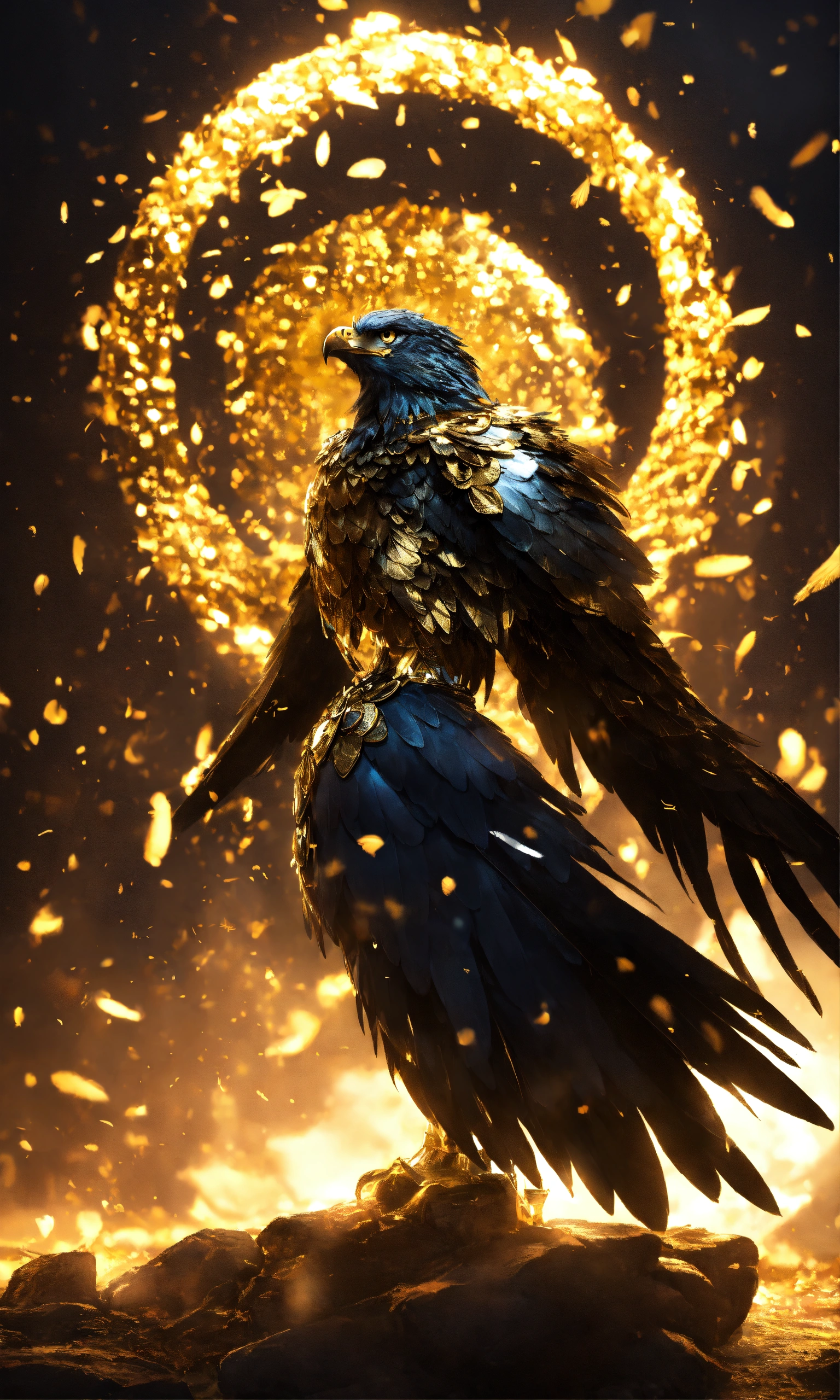 Hurricane of small eagles feathers black and gold theme