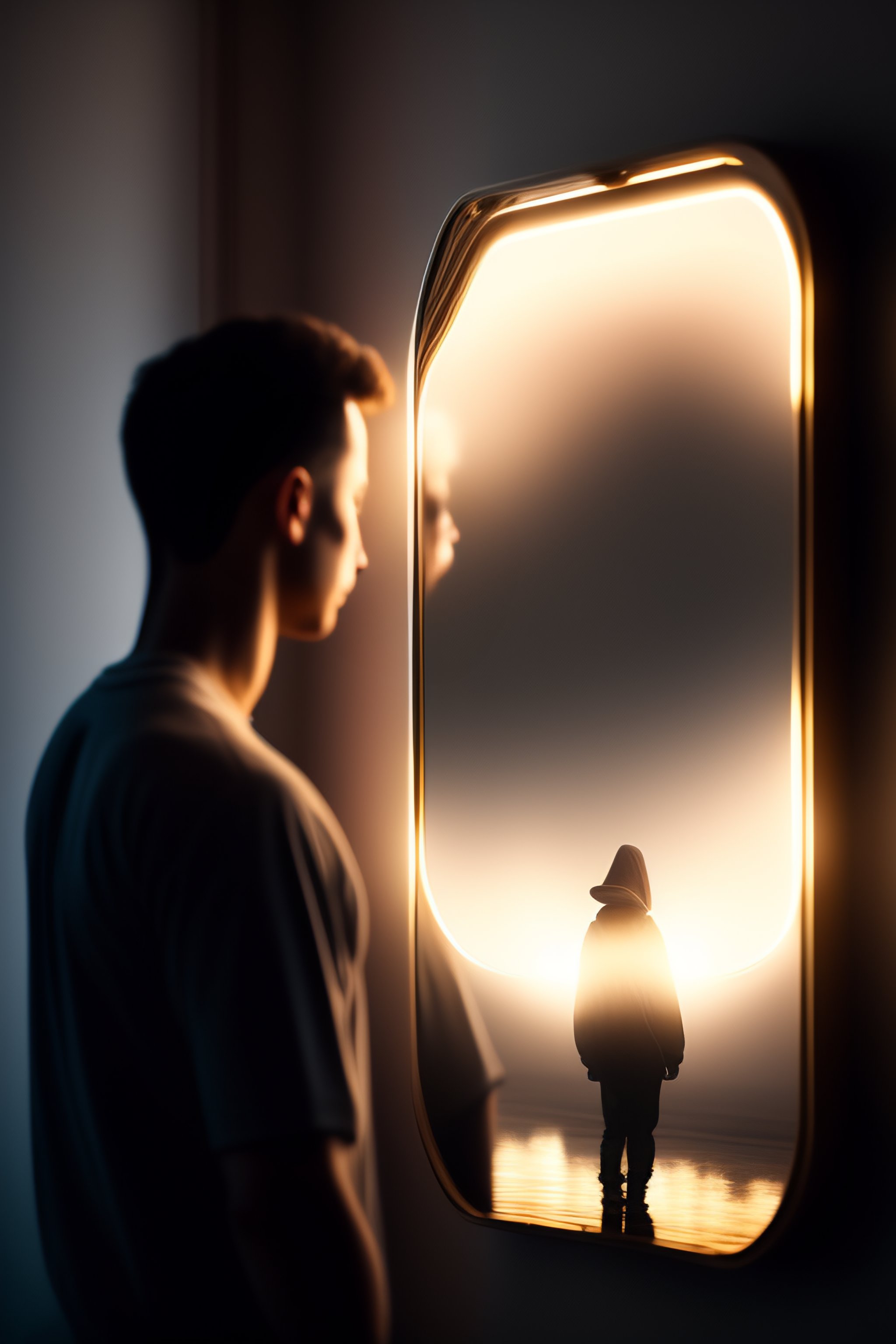 A person with no reflection in the mirror