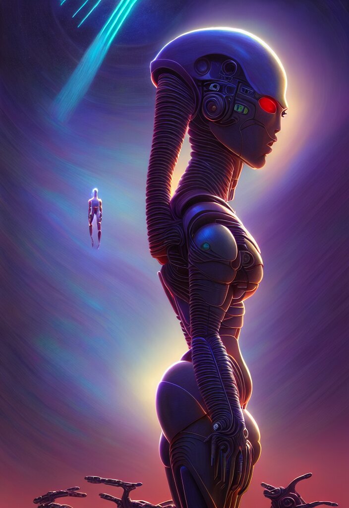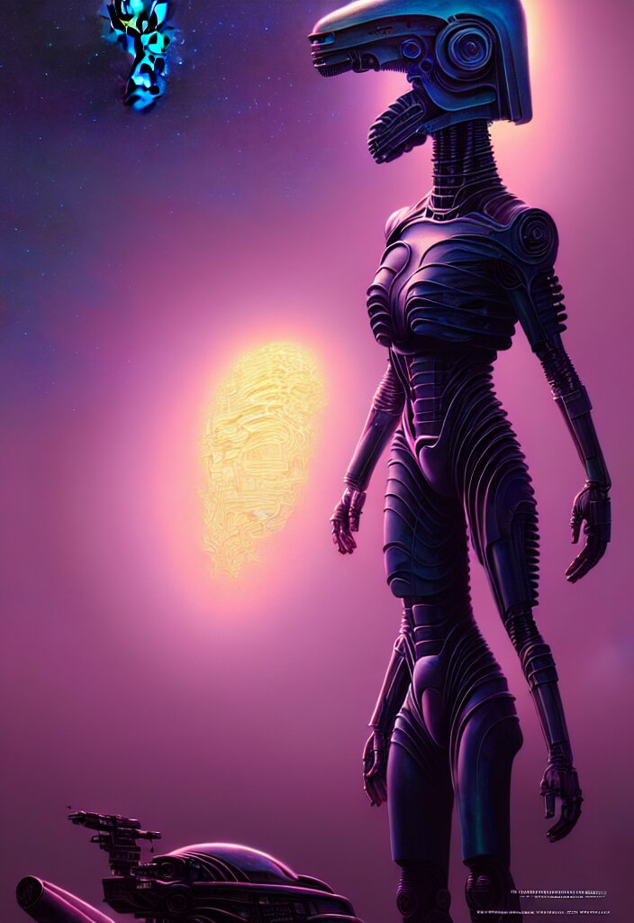 Android female, cinematic, full body, faded colors, exotic alien features, cyber background, tim hildebrandt, wayne barlowe, bruce pennington, donato giancola, larry elmore, masterpiece, trending on artstation, featured on pixiv, zack snyder, cinematic composition, beautiful lighting, sharp, details, hyper - detailed, hd, hdr, 4 k, 8 k