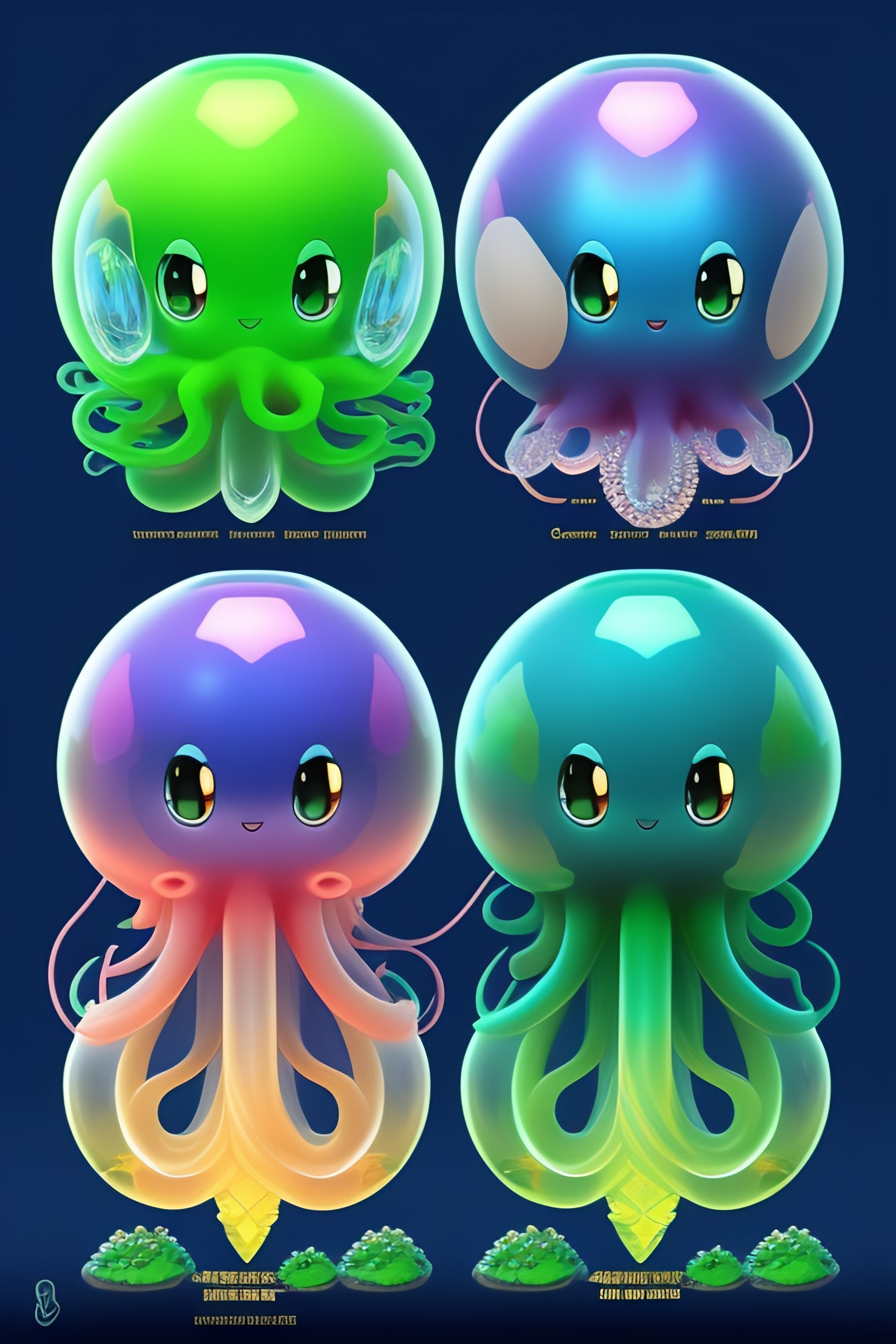 Poison and water type pokemon based on laboratory glassware and a squid or octopus, tentacles are different colors and made of water, second stage pokemon, cute, fakemon, drawn by ken sugimori, concept art