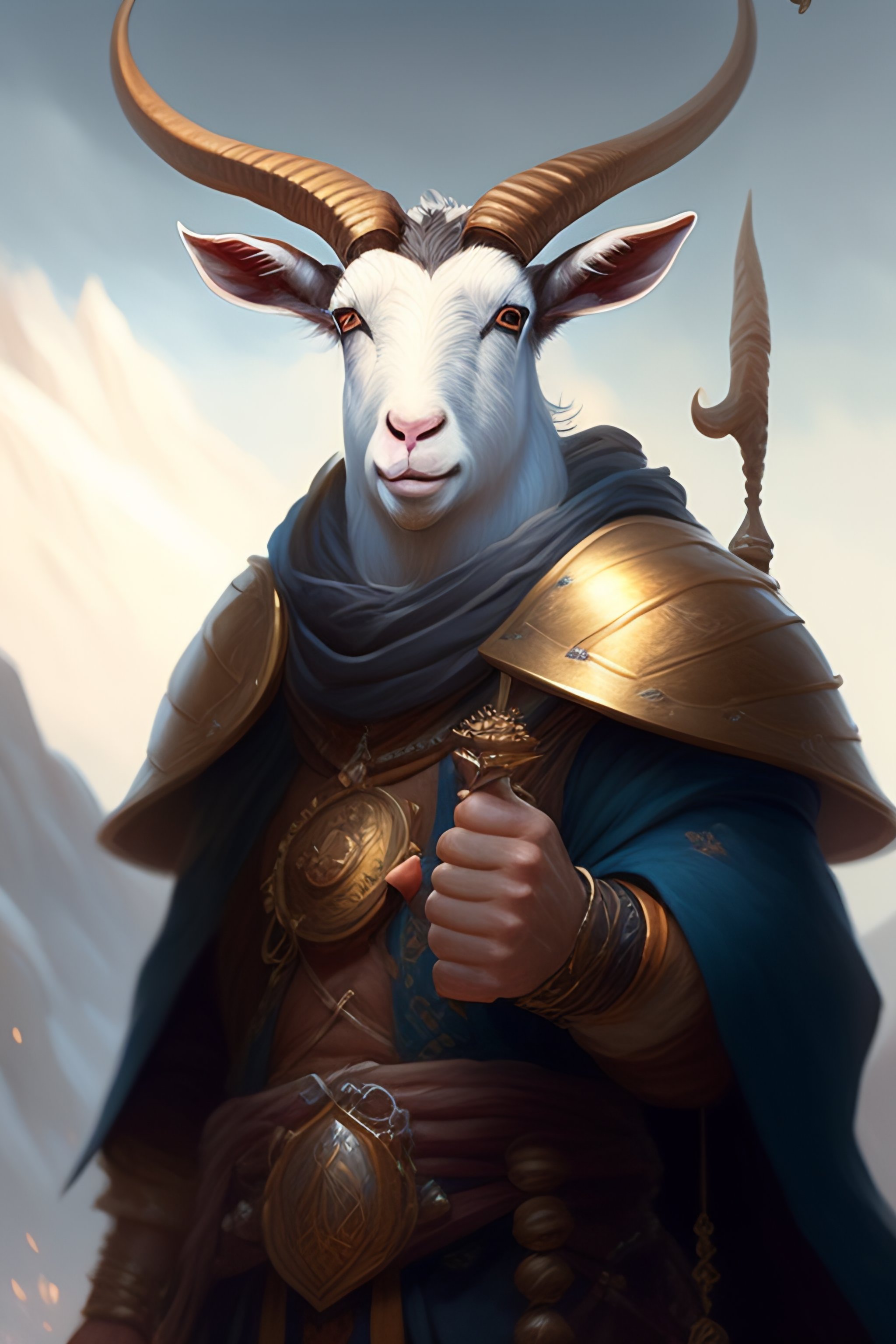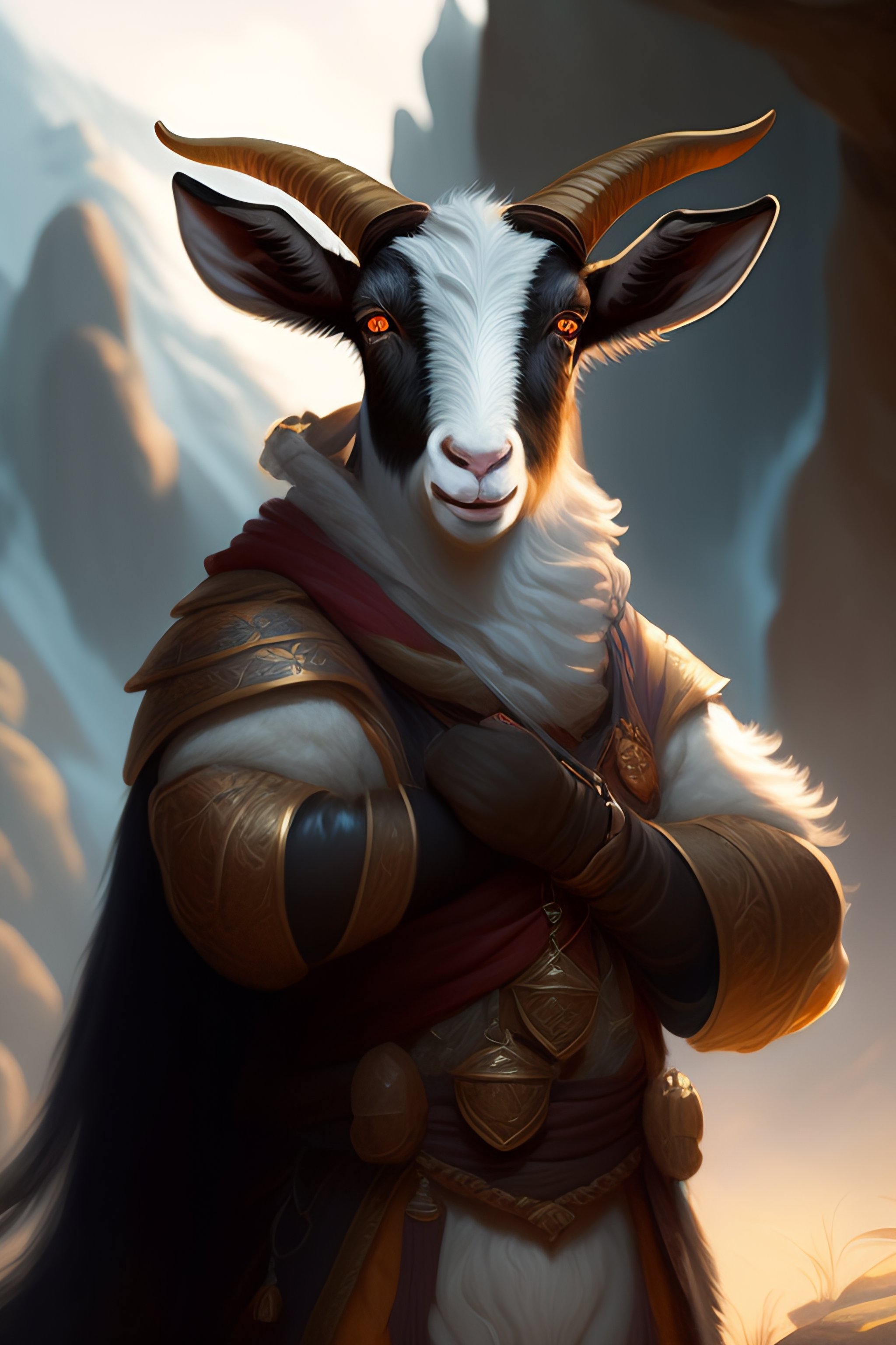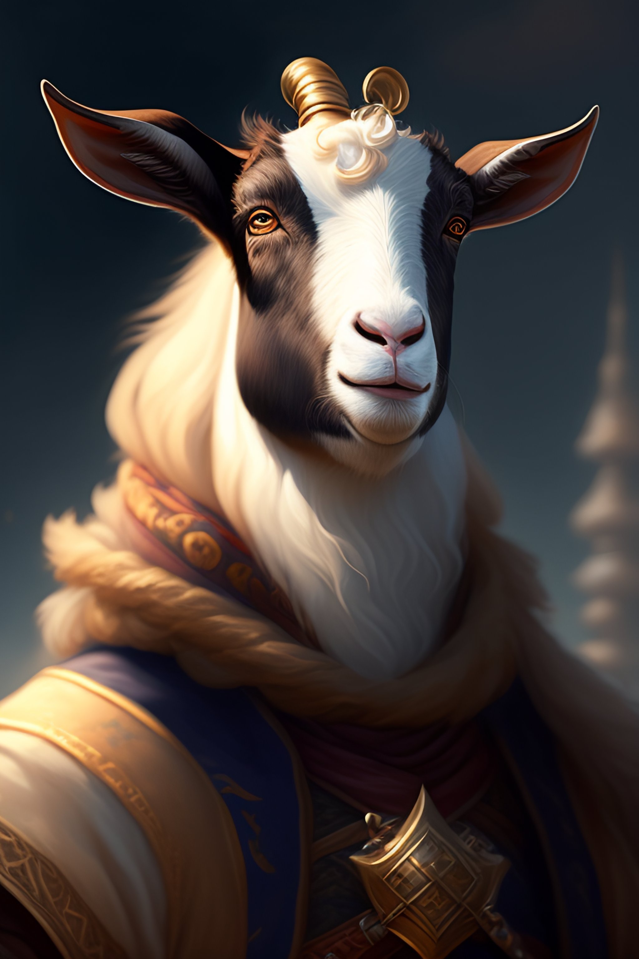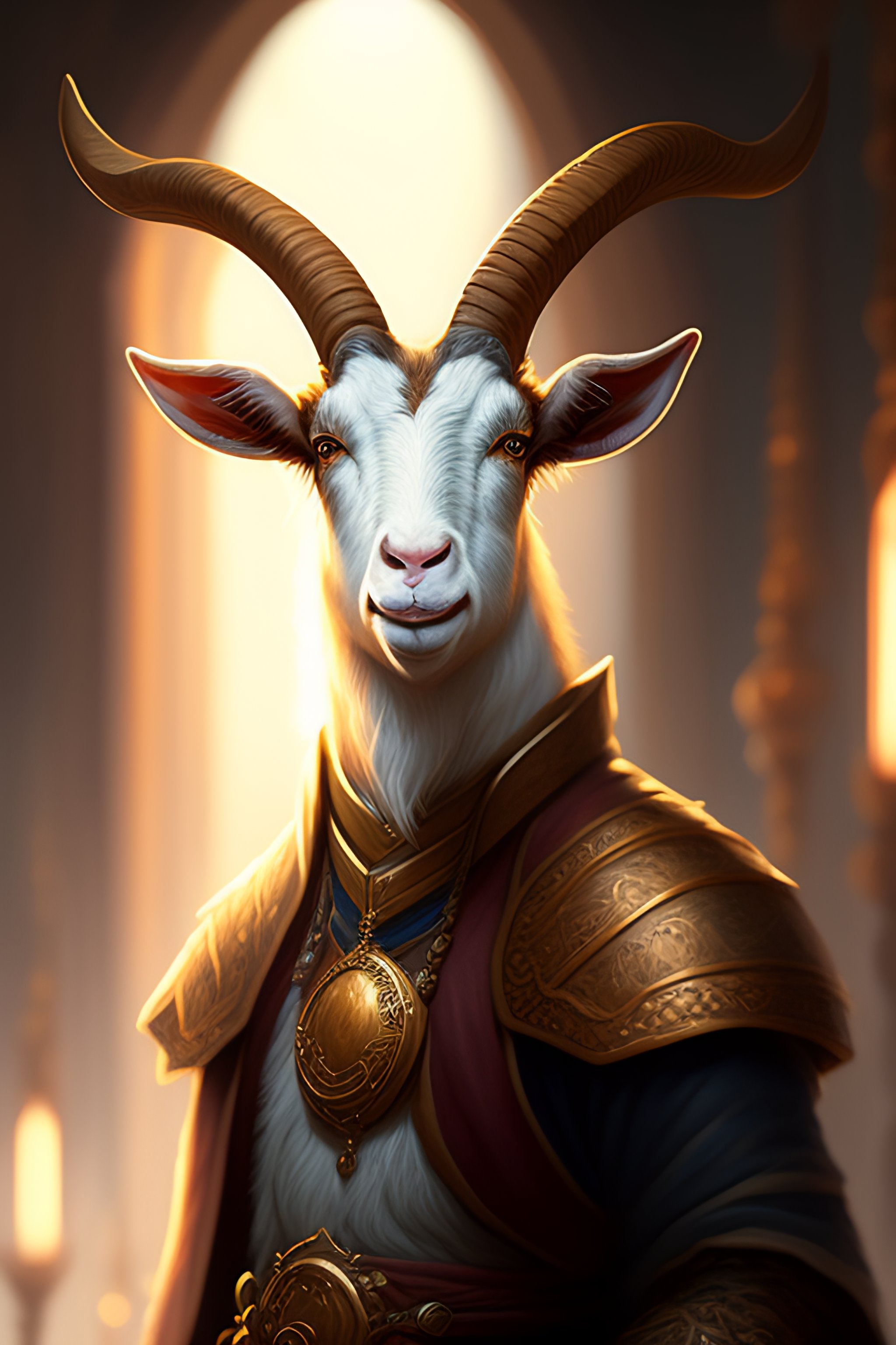 A detailed portrait of goat giving thumbs up illustrator, by justin gerard and greg rutkowski, digital art, realistic painting, dnd, character design, trending on artstation