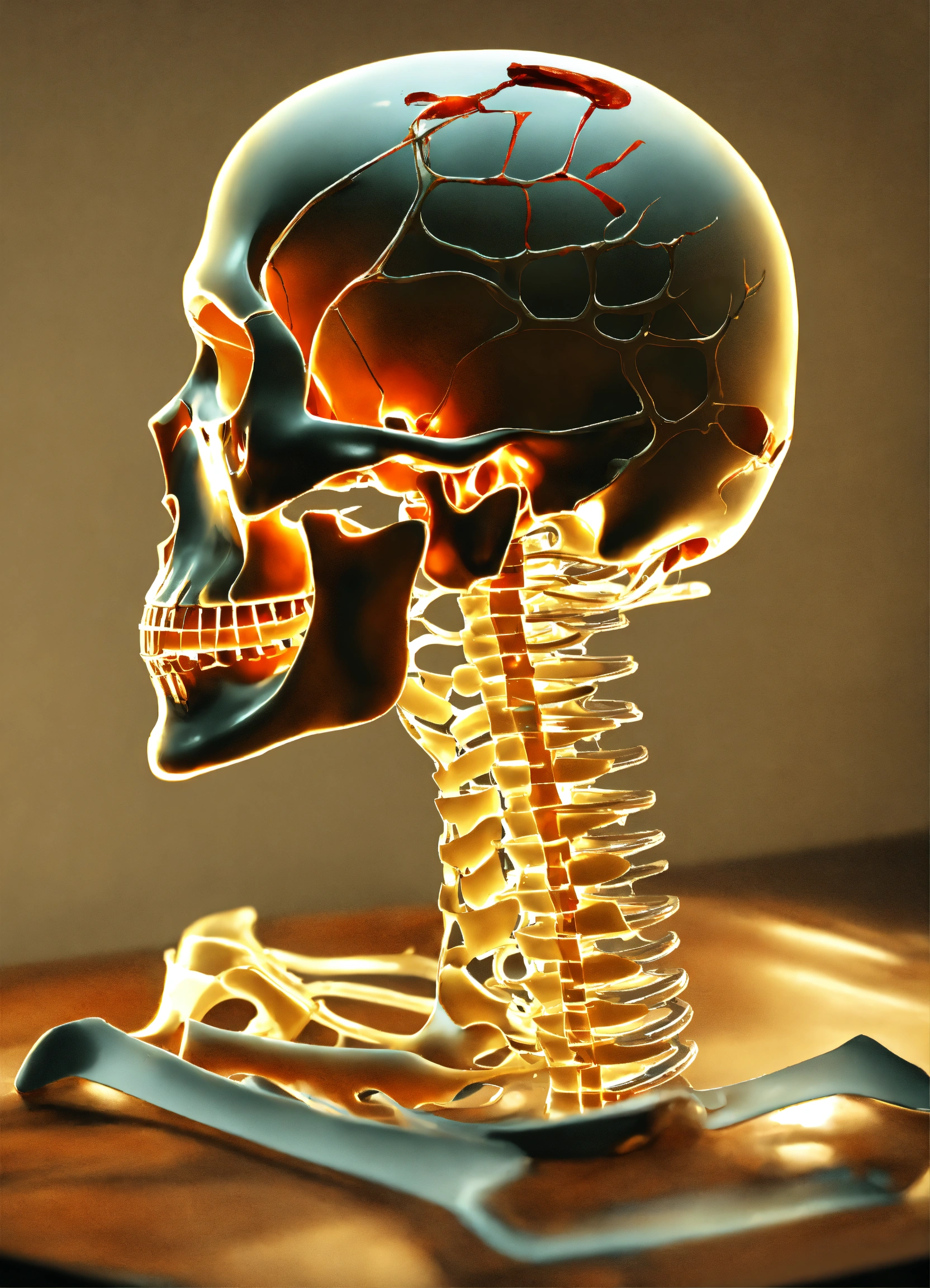 Create a realistic x-ray of human broken vertebrae c6