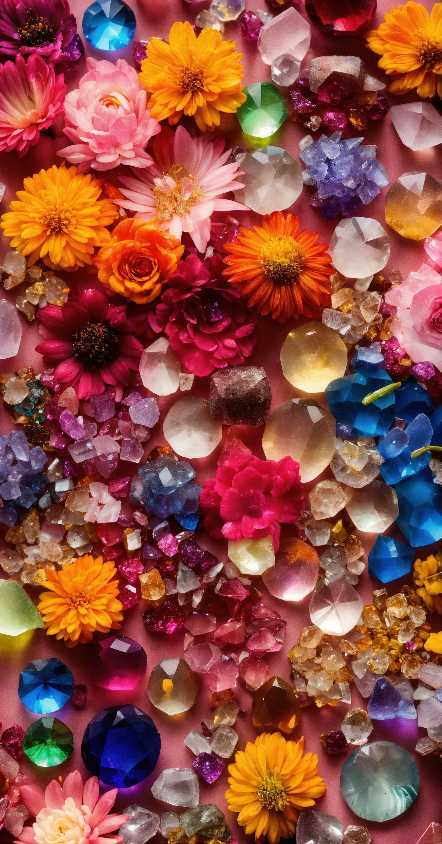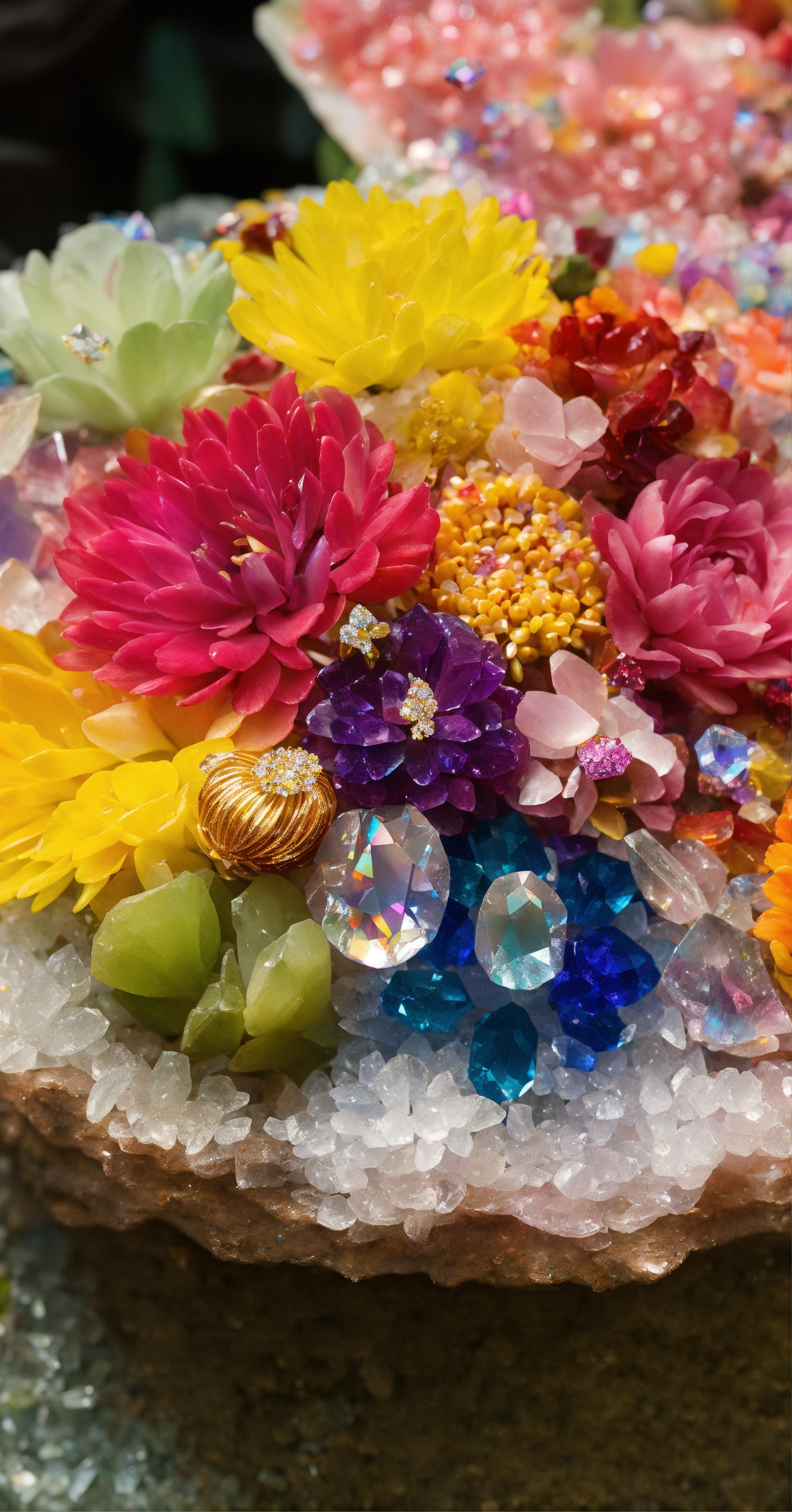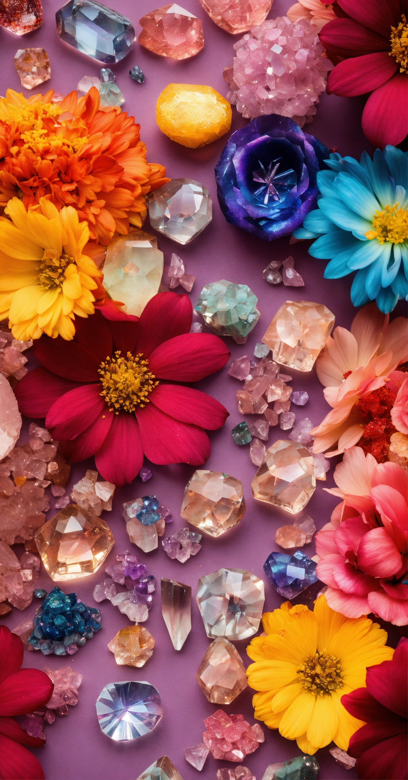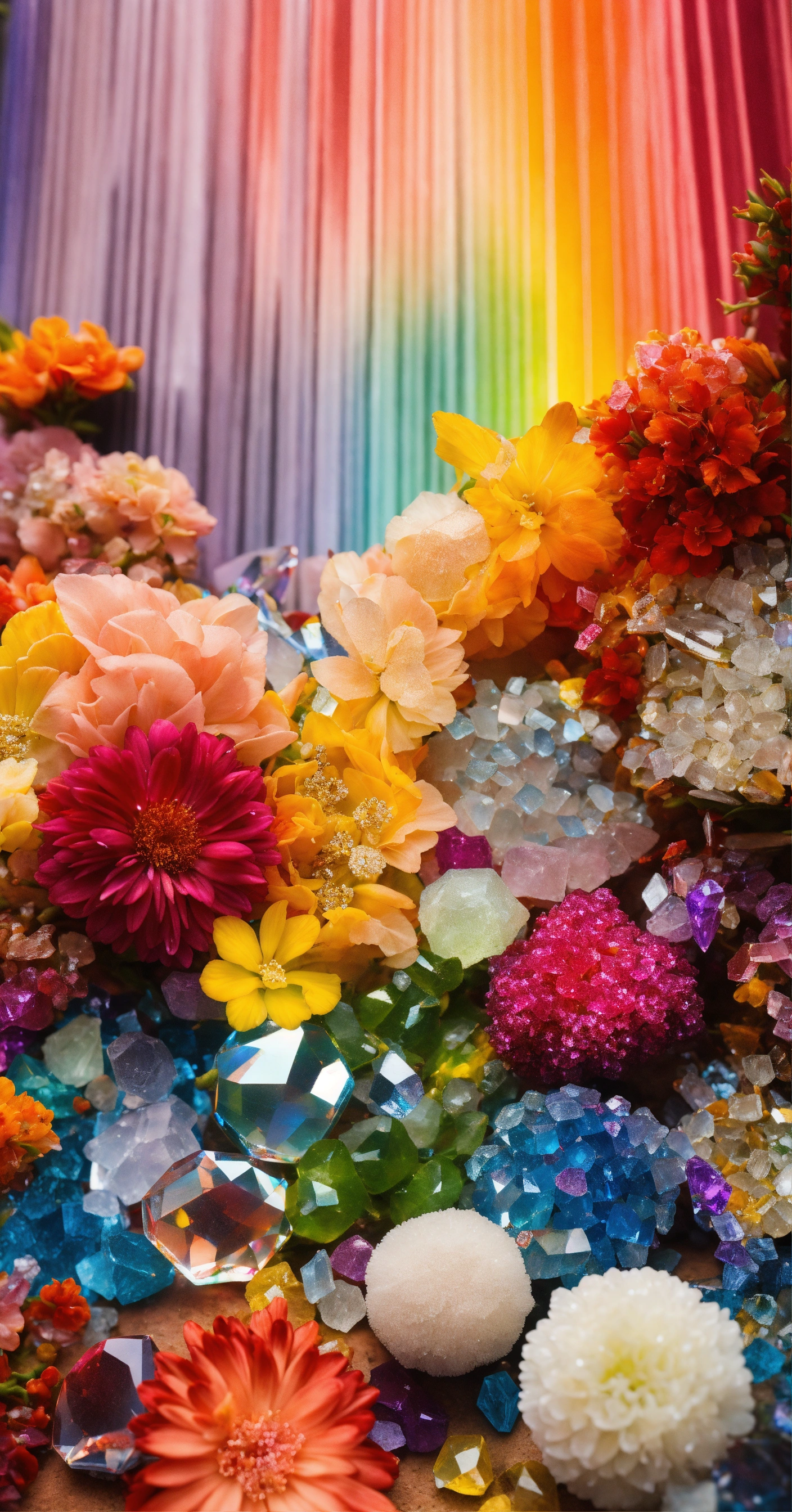 Rainbow of crystals and flowers