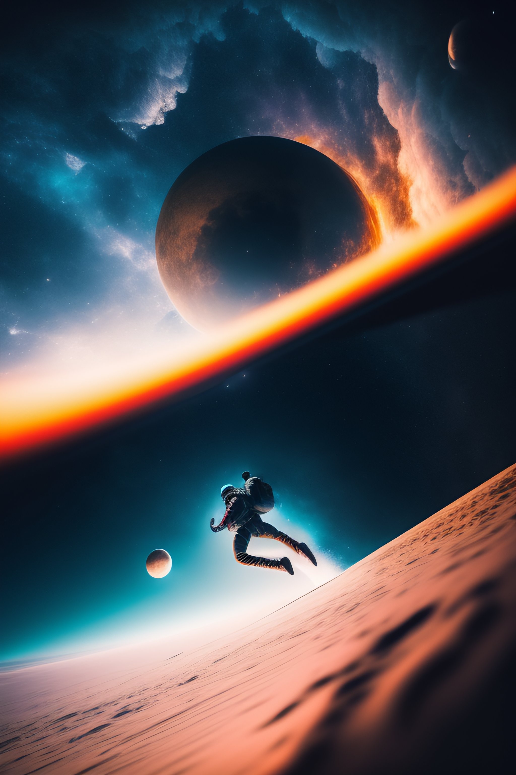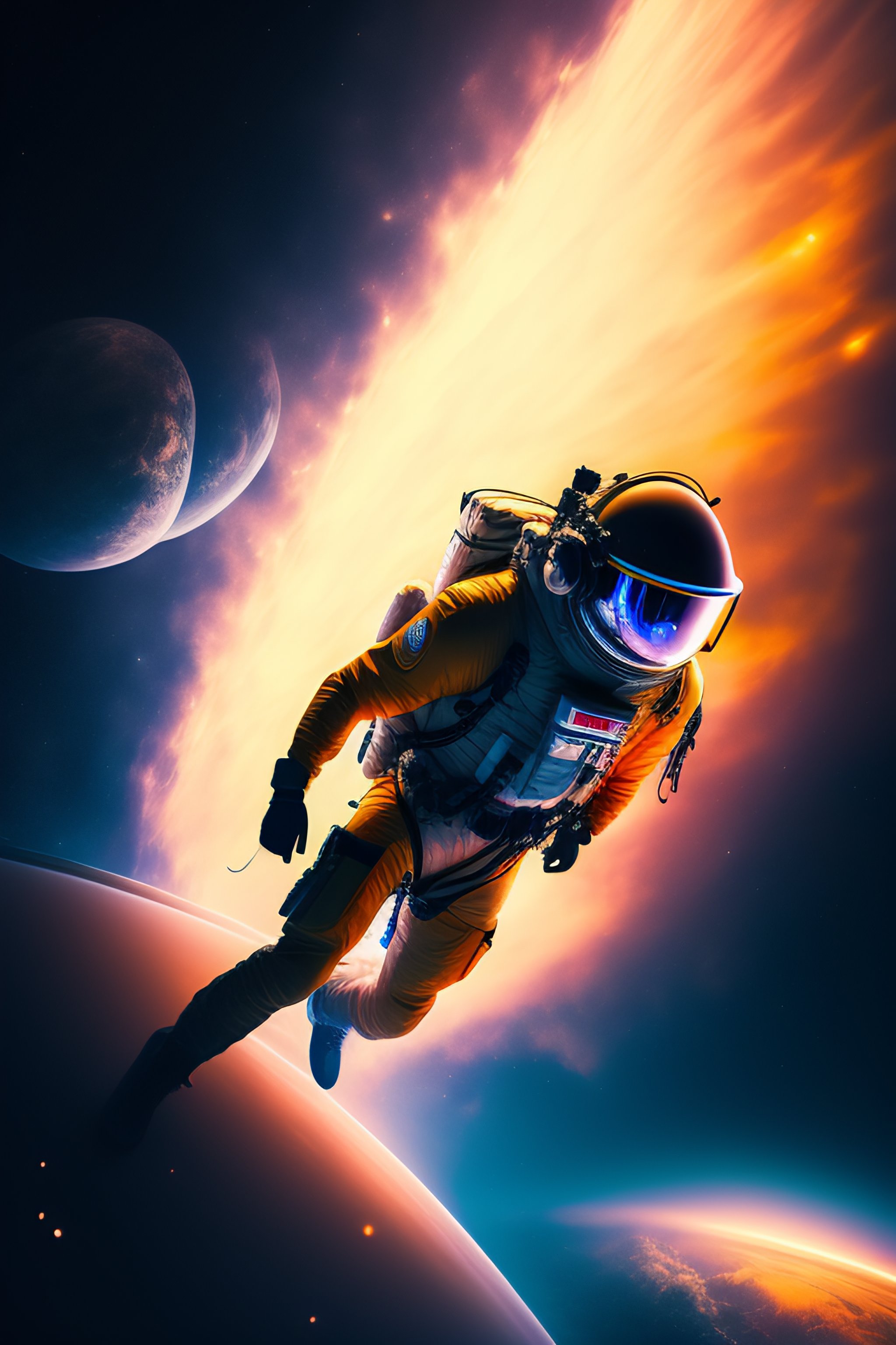 Man falling in space, cinematic composition, dramatic pose, beautiful lighting, sharp, details, hyper-detailed, hd, hdr, 4k, 8k
