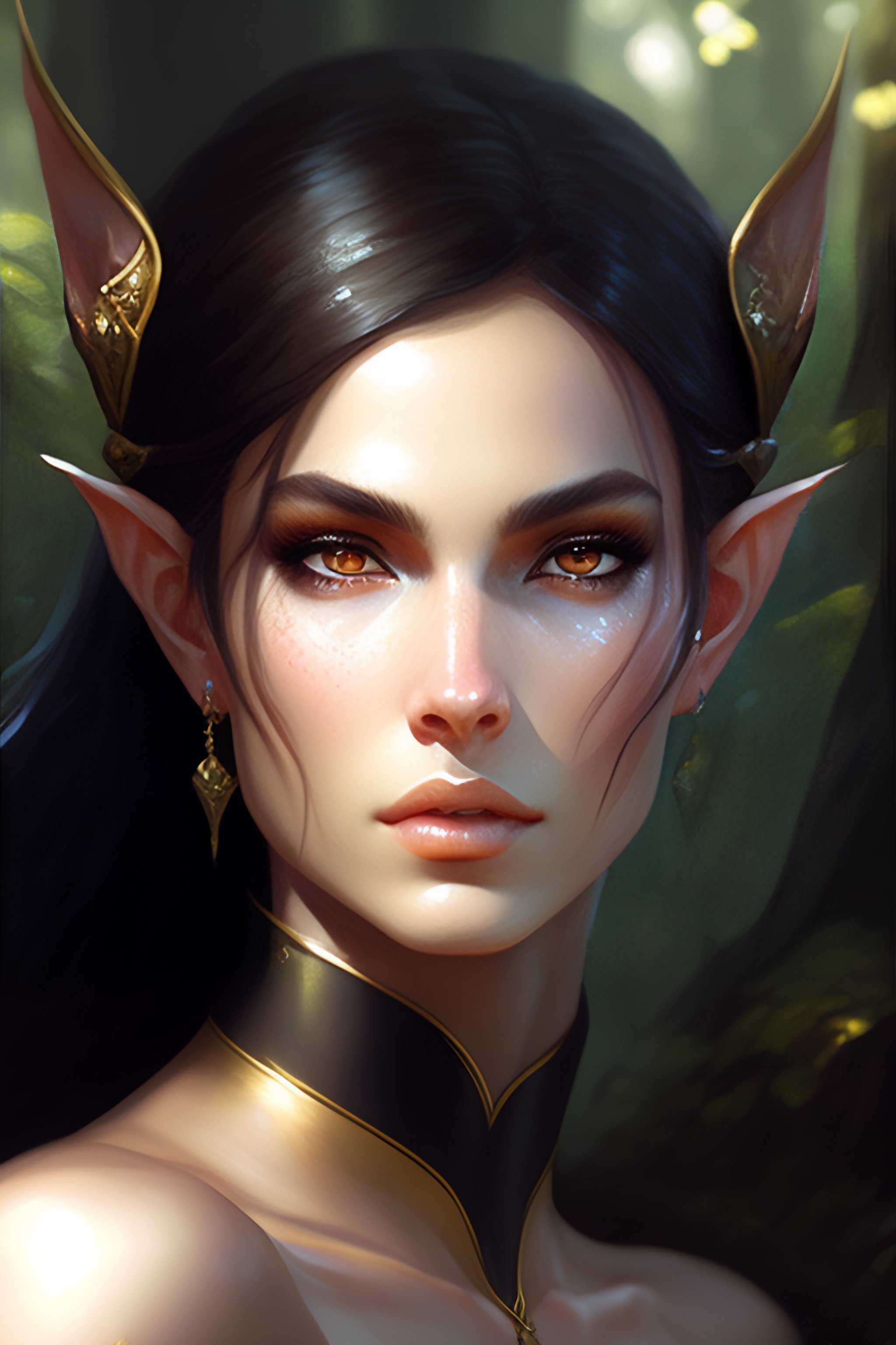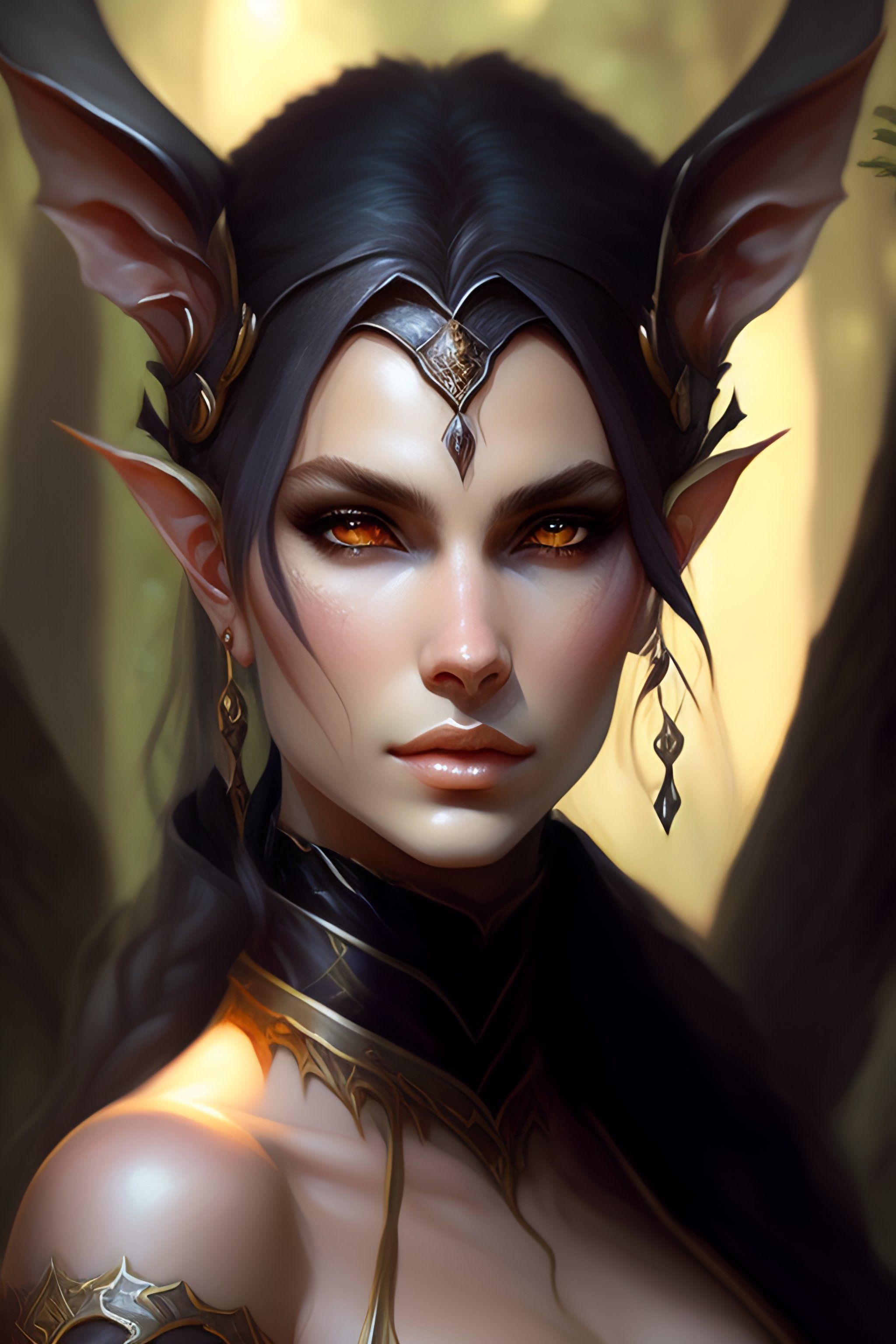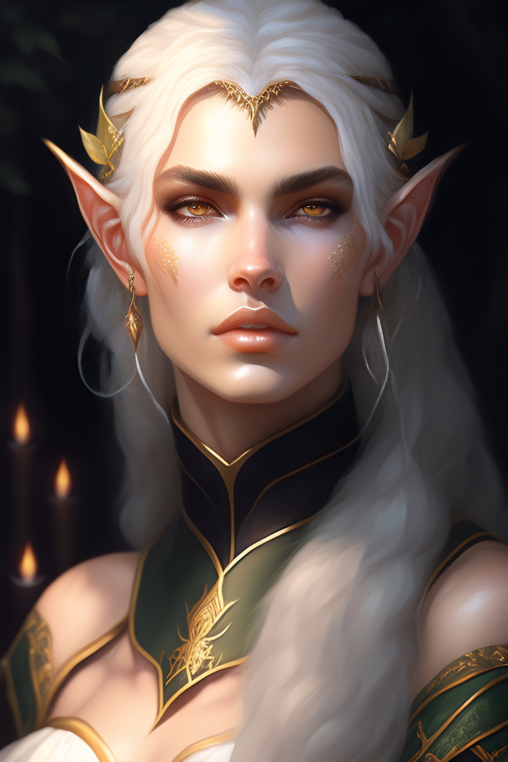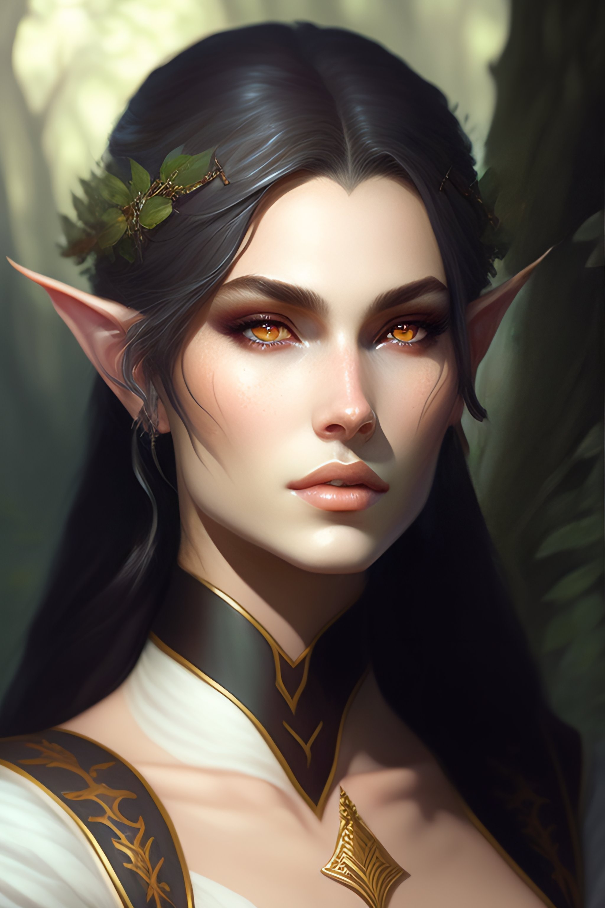 Dungeons and dragons forest elf chieric character closeup portrait, white skin, dark gothic dressing, dramatic light, dungeon background, 2 0 0 mm focal length, painted by stanley lau, painted by greg rutkowski, painted by stanley artgerm, brom, digital art, trending on artstation