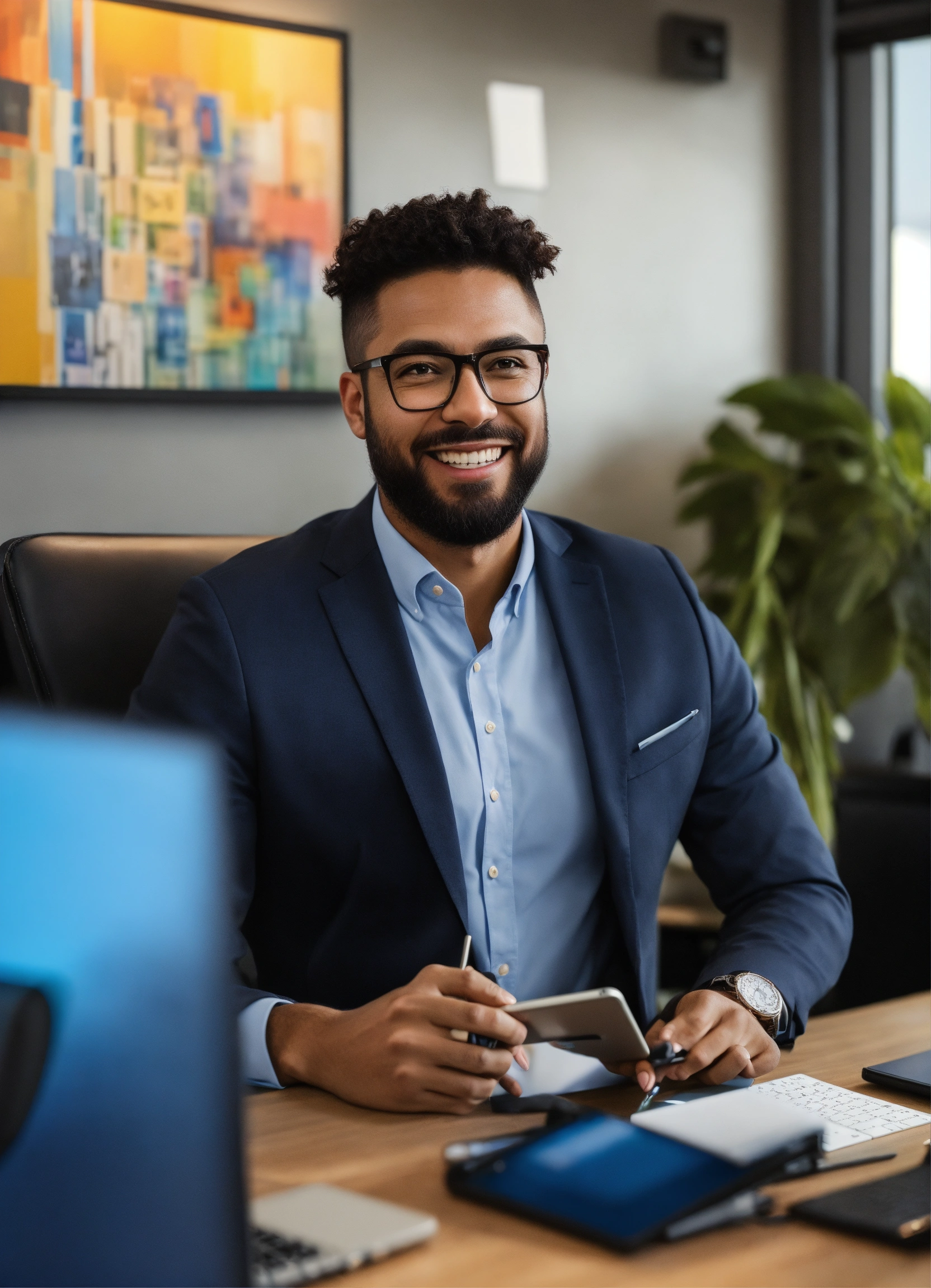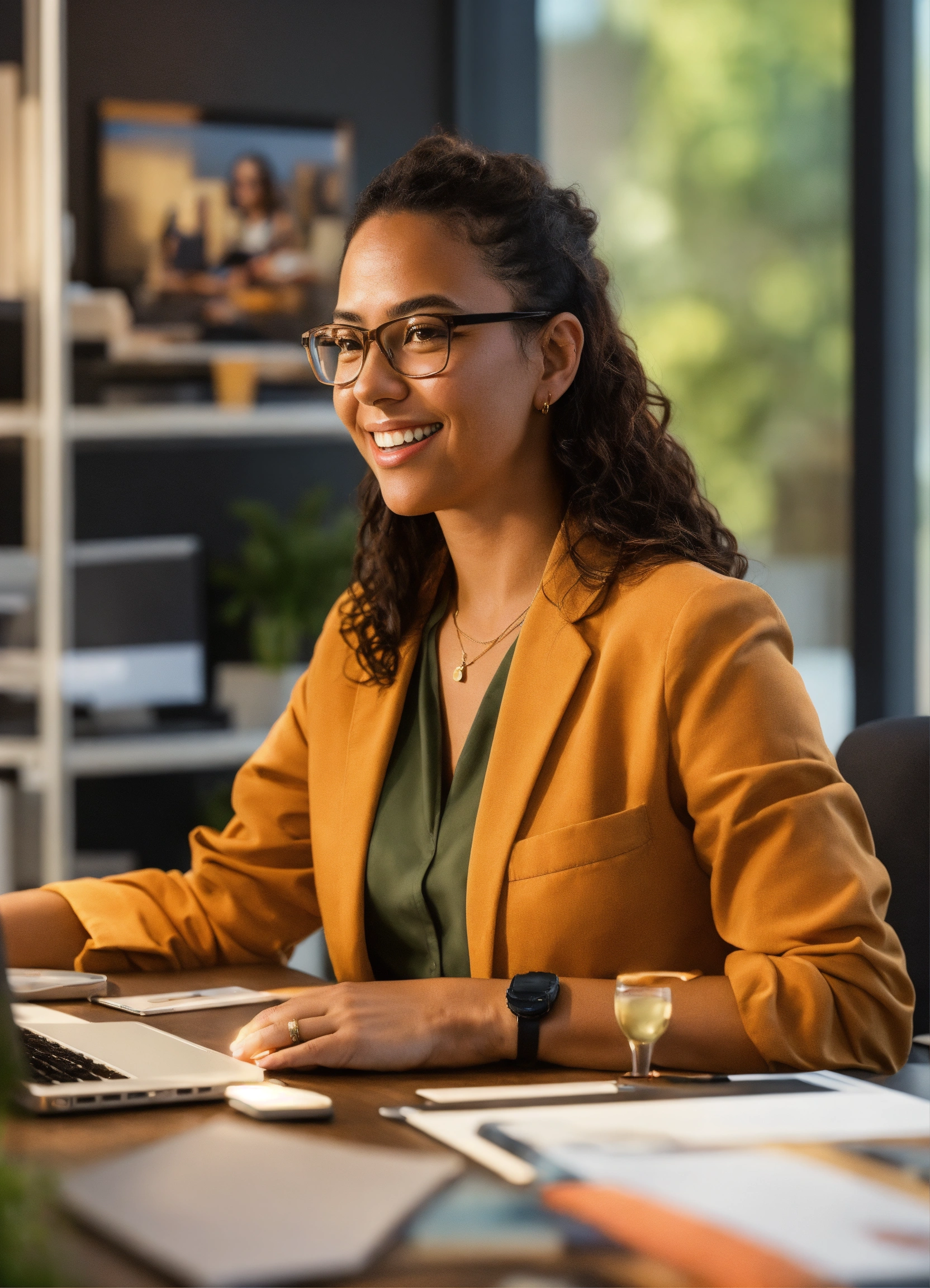 Portrait of an office worker living a great employee experience, empowered and appreciated. the artwork should highlight themes of remote work, efficiency, talent retention, and personalization - photographic style - realistic image