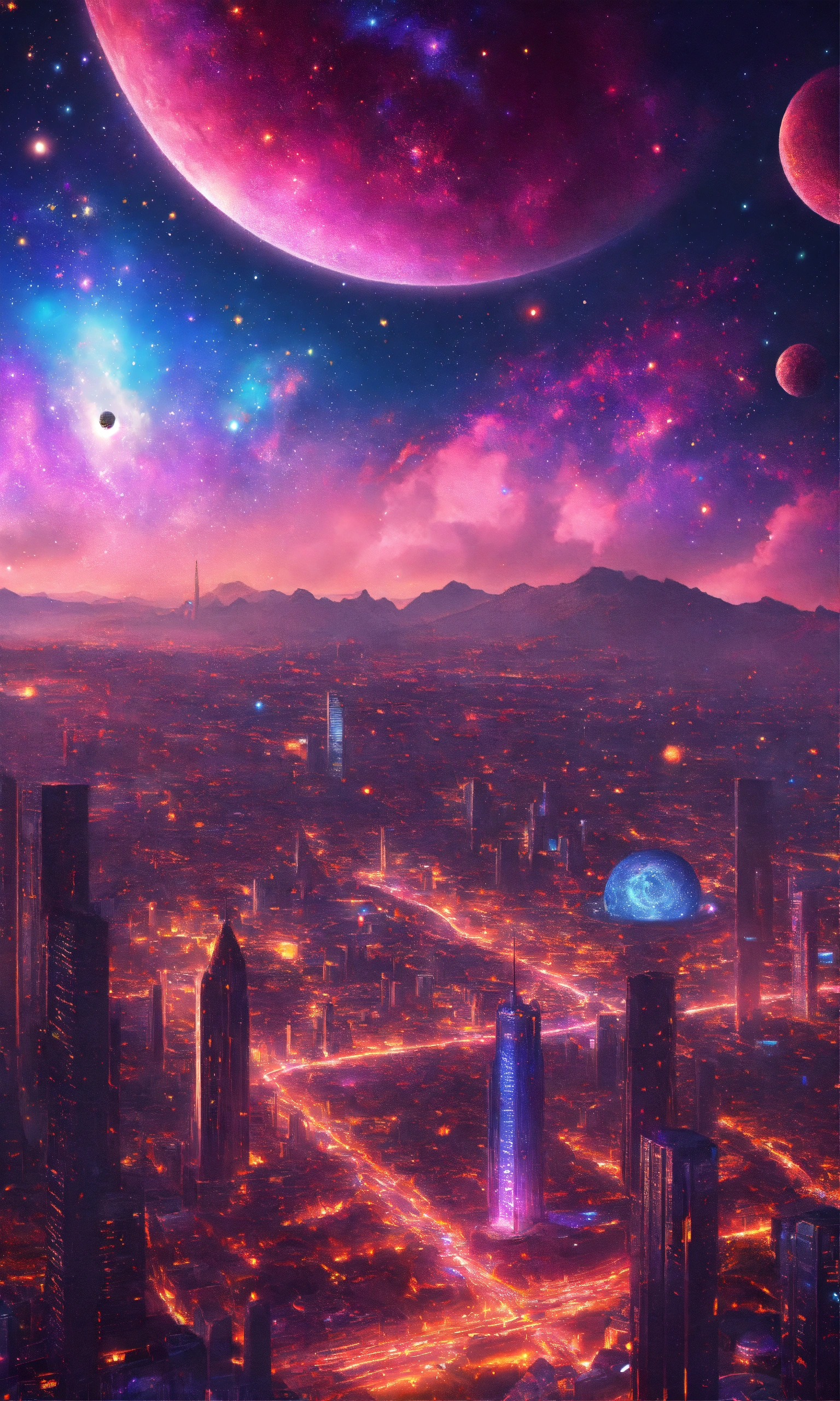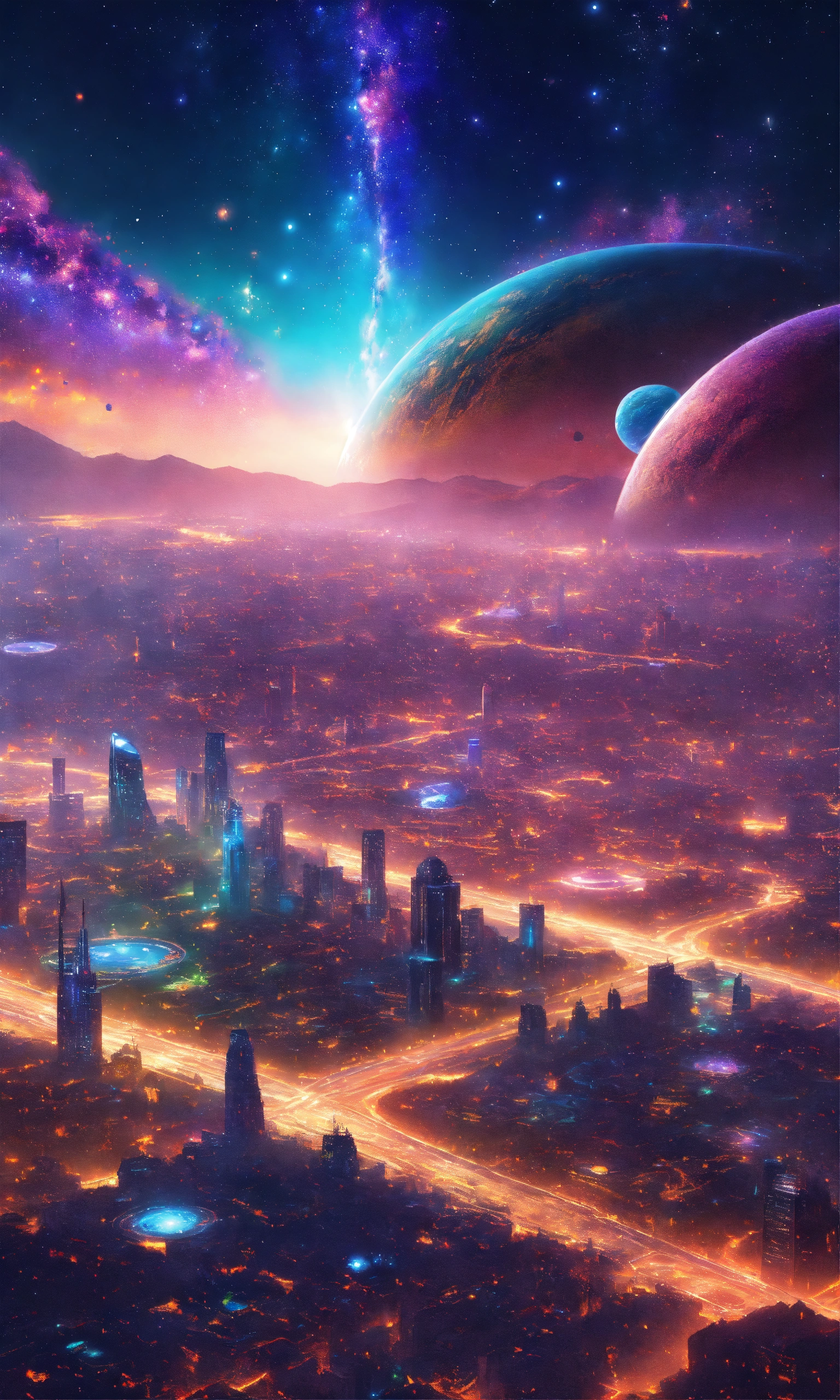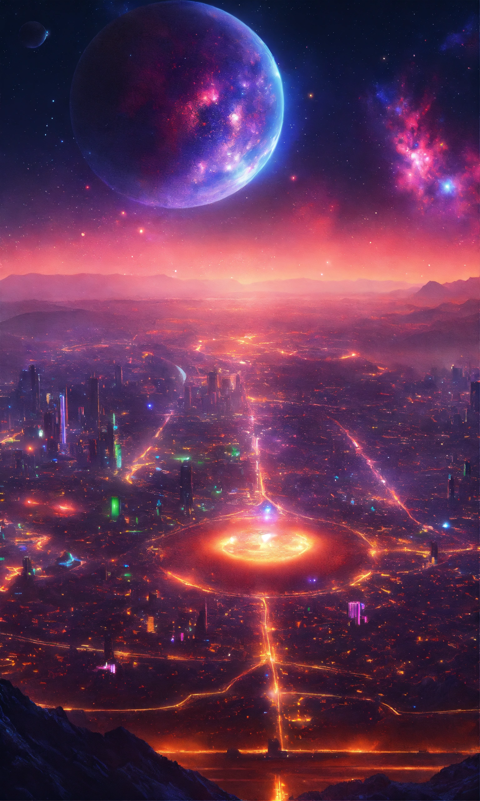 Galaxy landscape city, starry details, starseed, celestial esoterica, neon colors, realistic, ultra 8k resolution