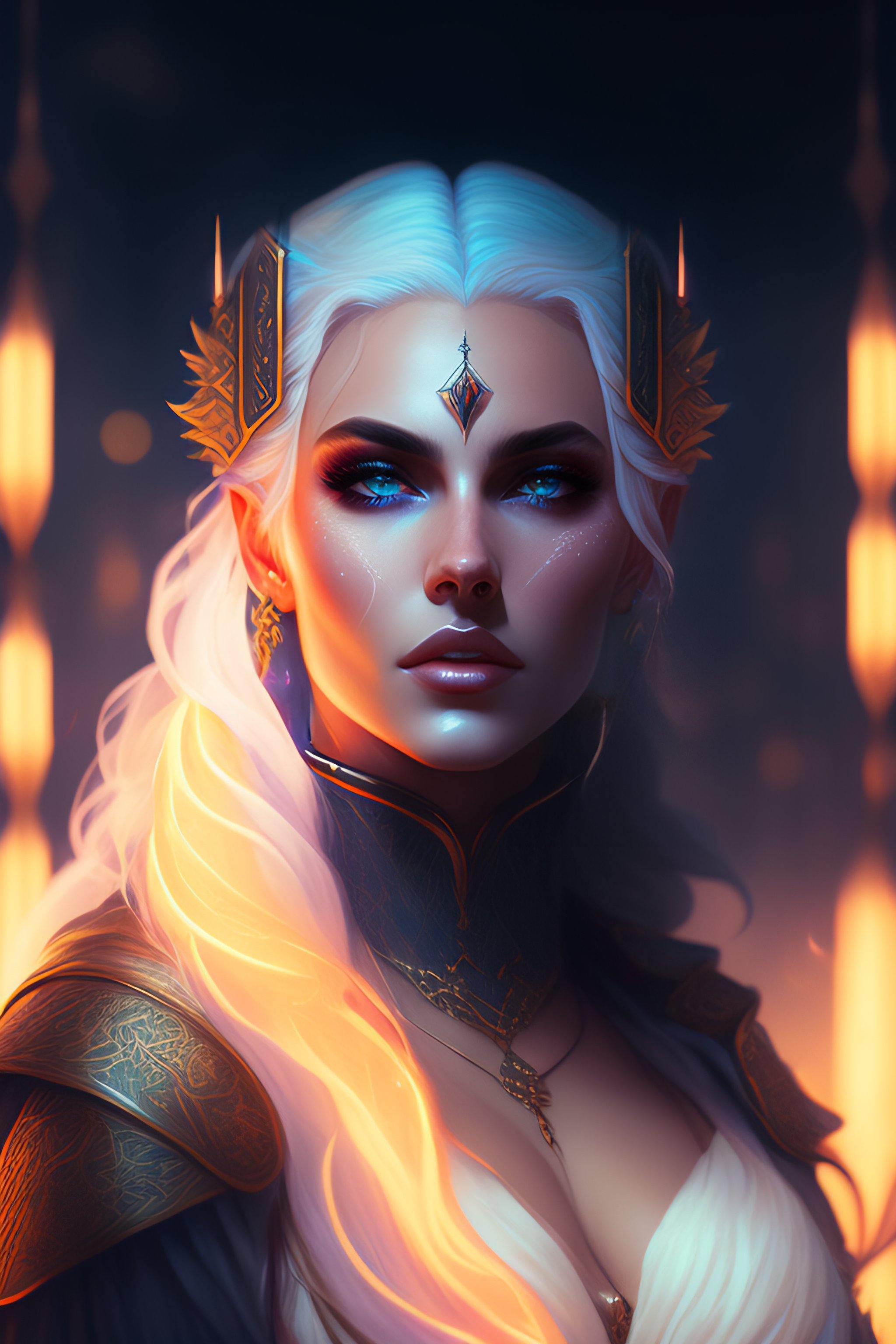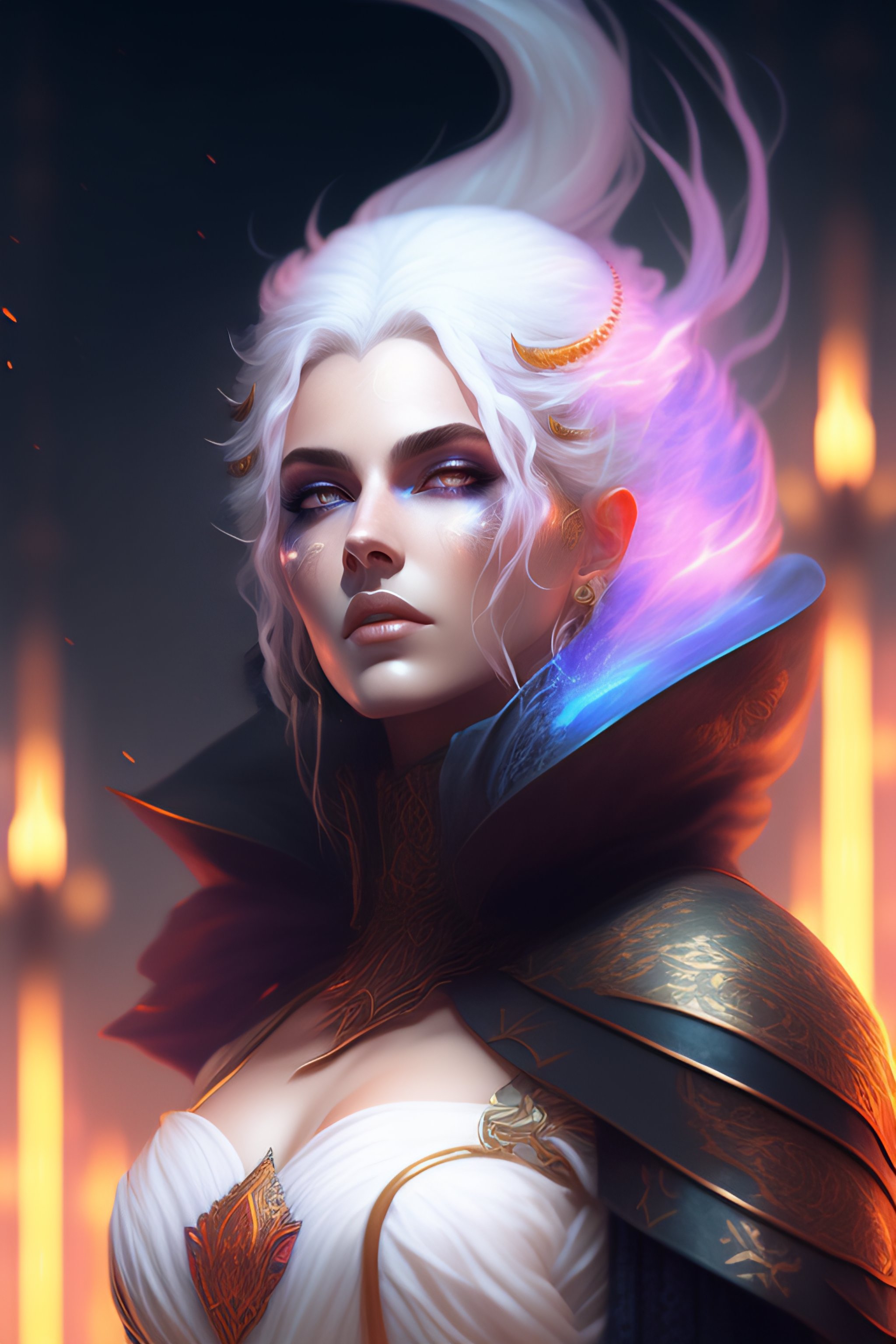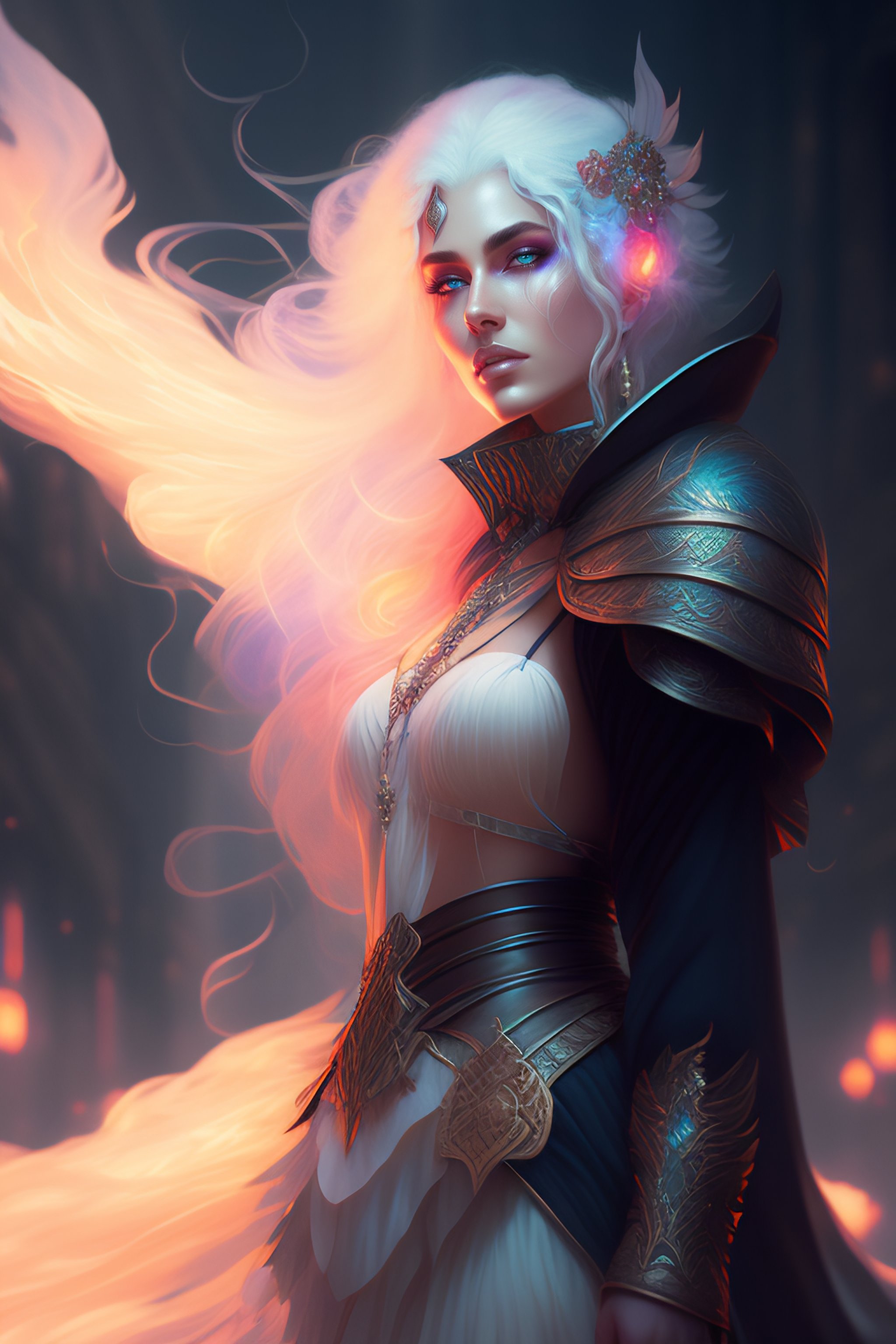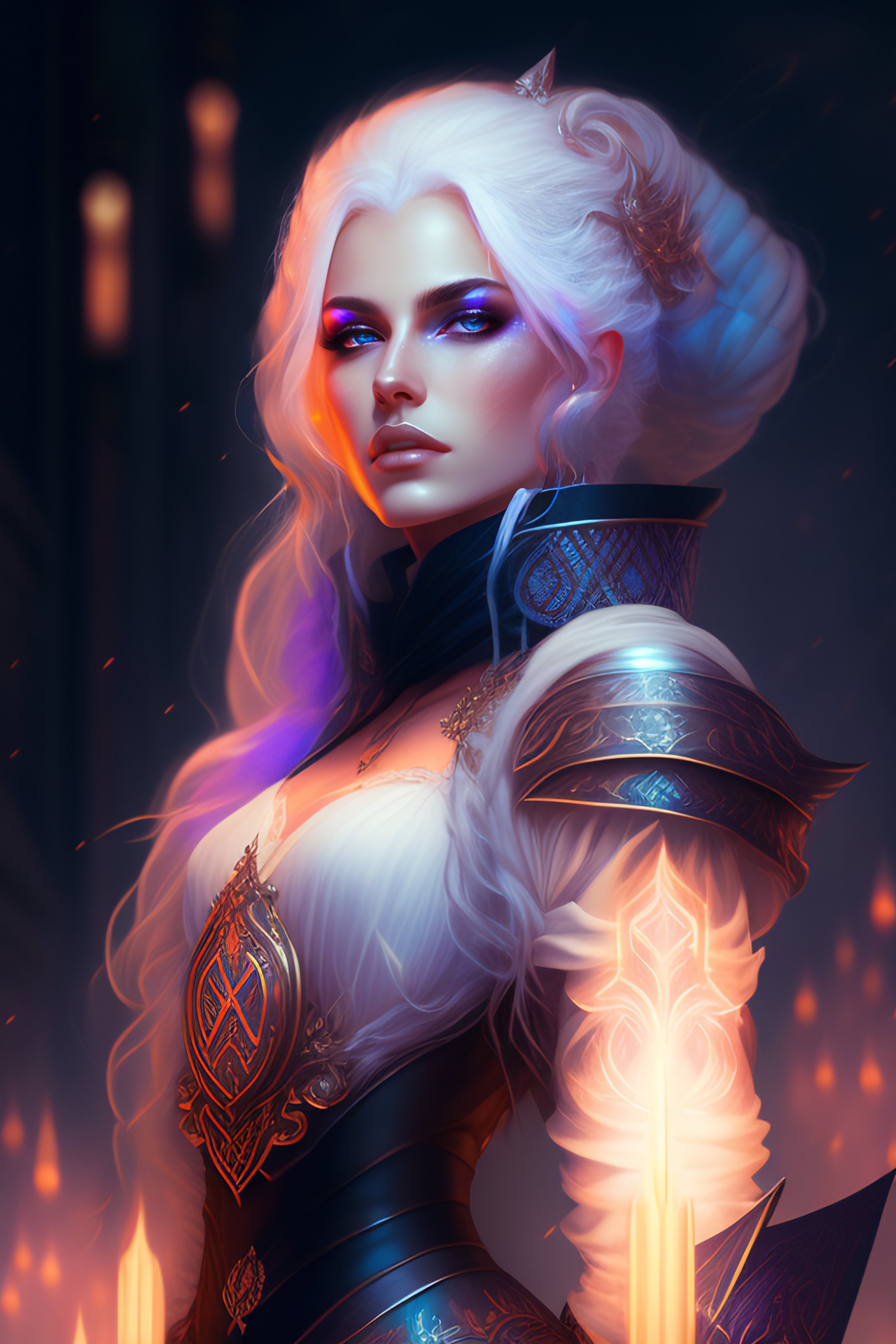 A beautiful white haired pyromancer princess, intricate concept art, ethereal, ominous, mysterious, enchanted, magic, dramatic lighting, illuminated lines, outrun, vaporware, illuminated runes, cyberpunk darksynth, dark background, 8 k, by ruan jia and krenz cushart and alphonse mucha