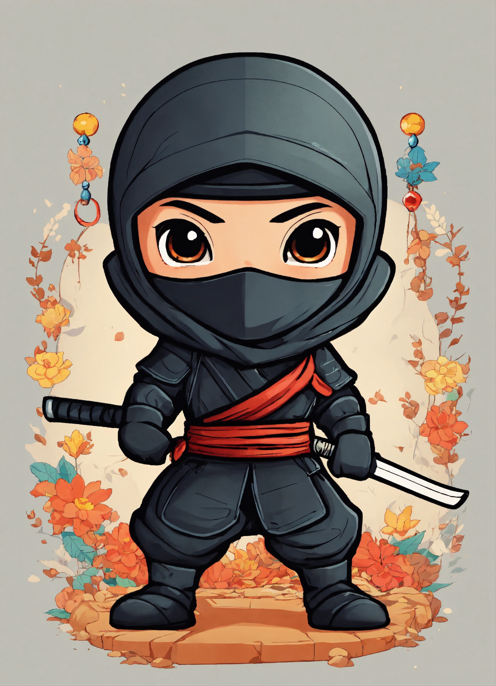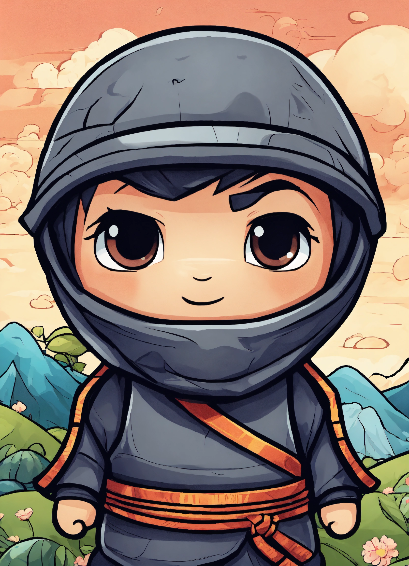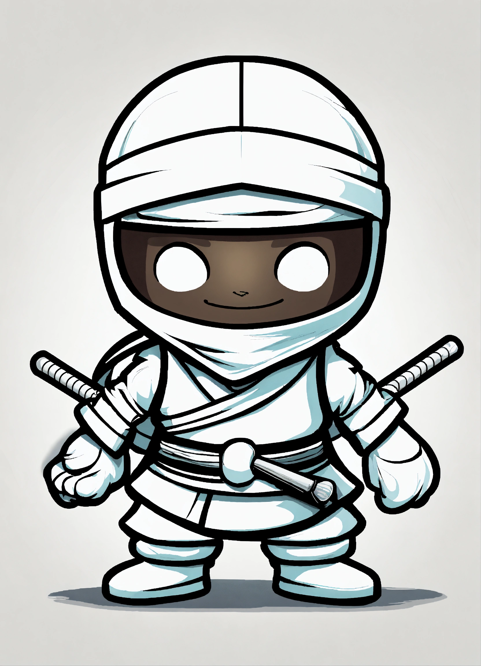 Generate a cute little ninja cover stunning illustration, 4k resolution, cartoon-sticker style with clear lines on a pure white background suitable for a children's coloring book.